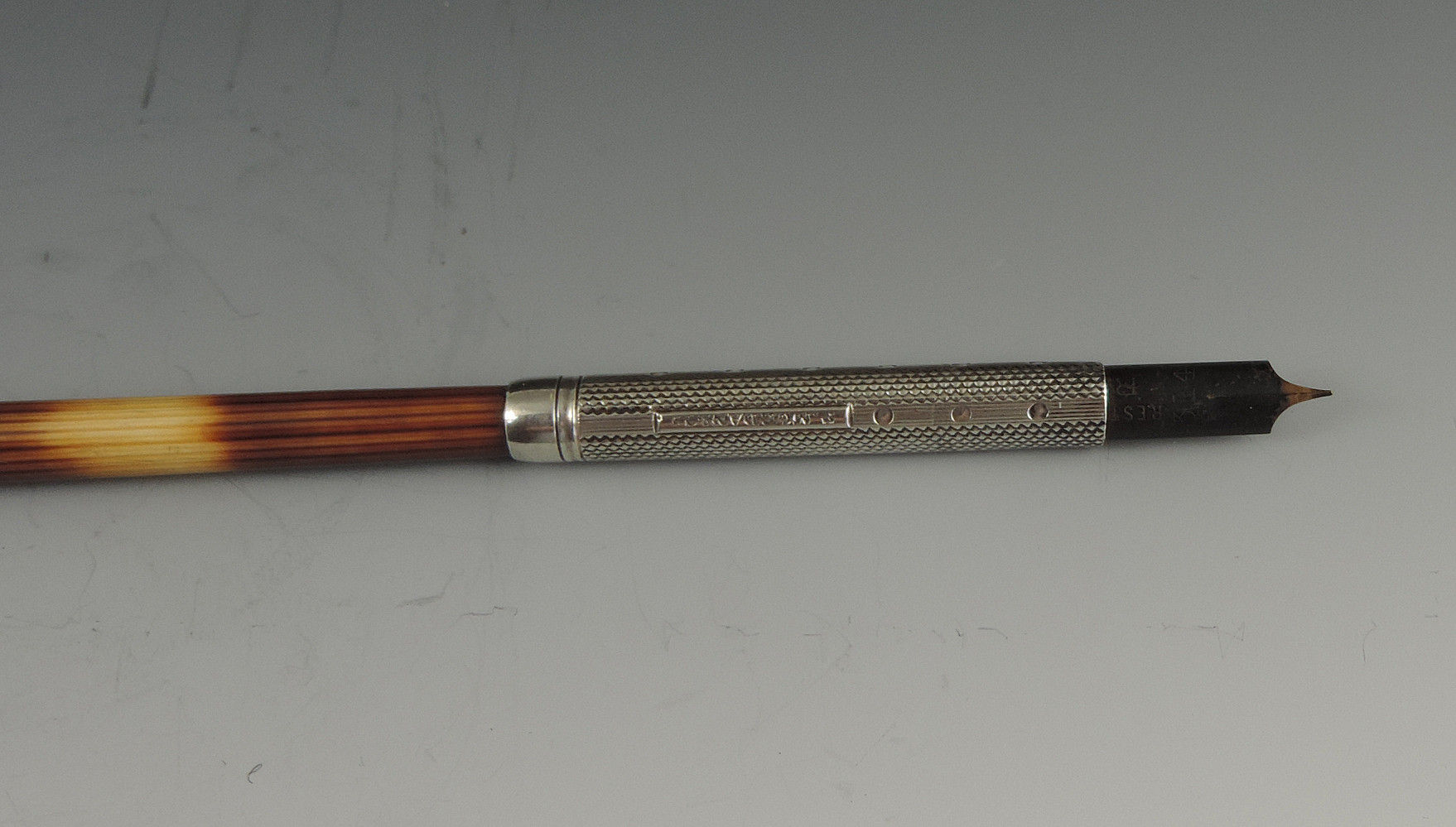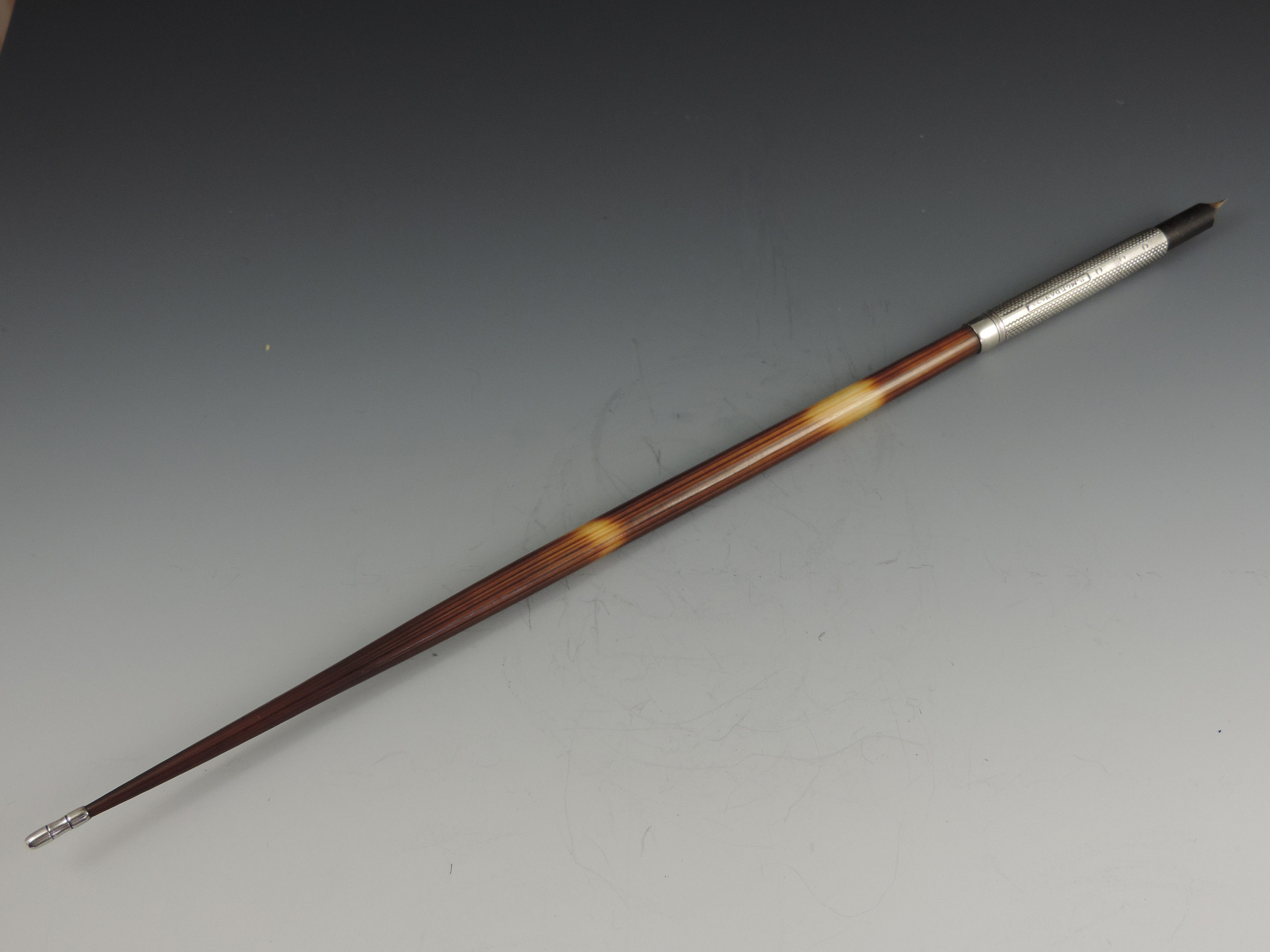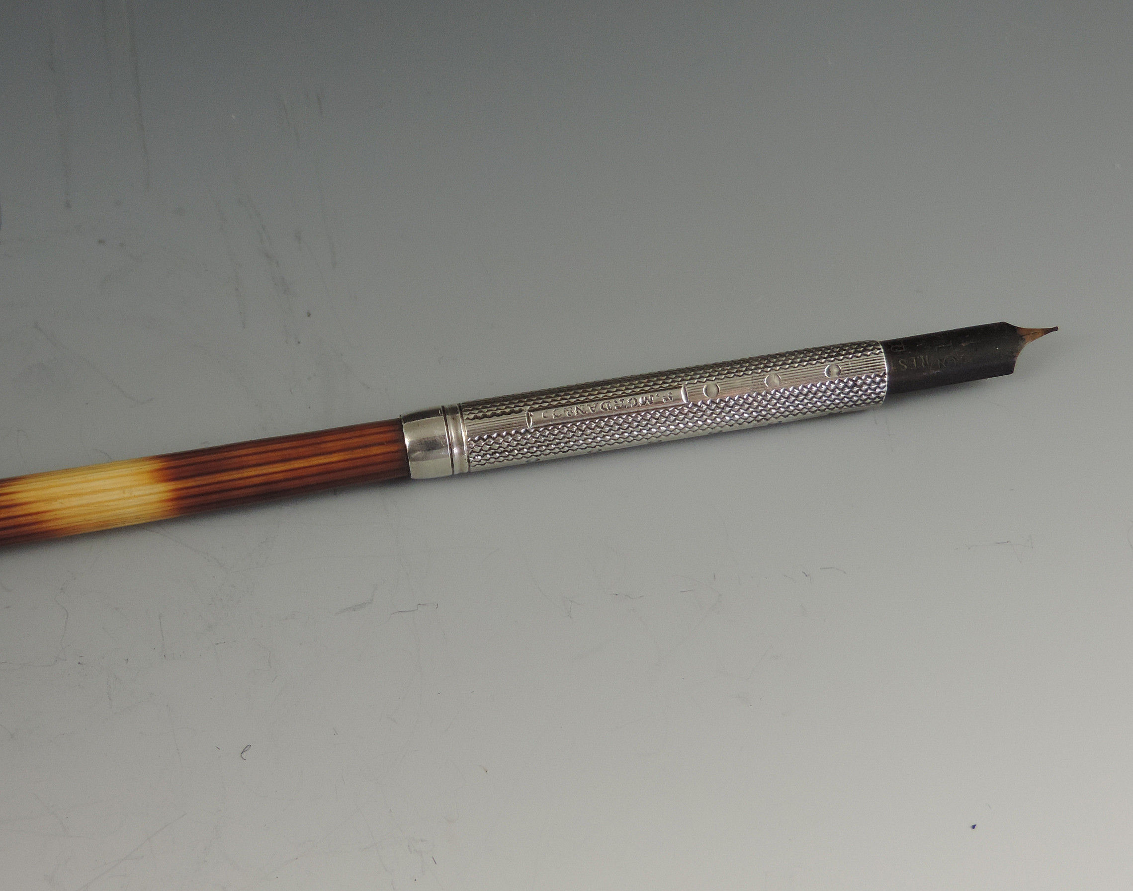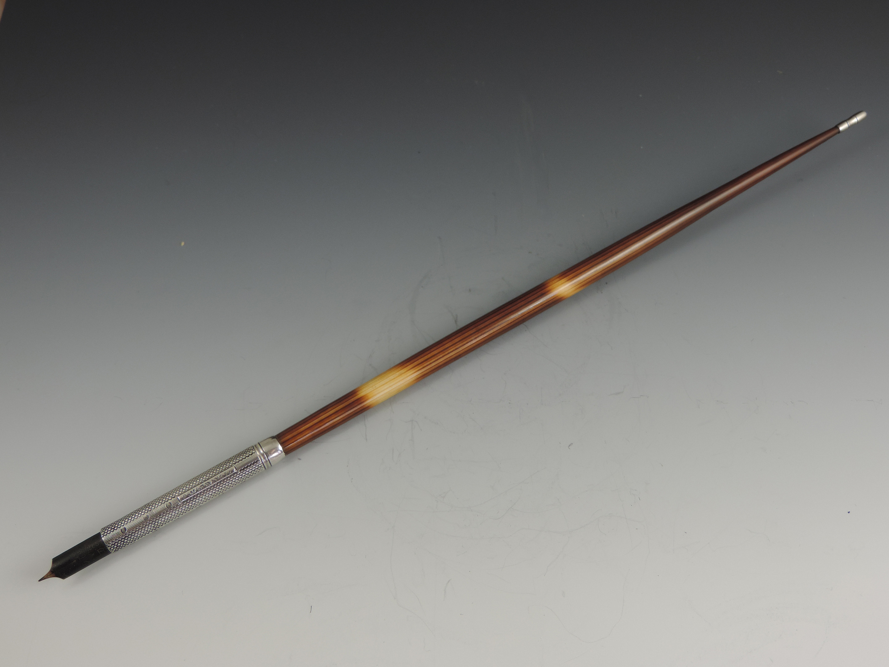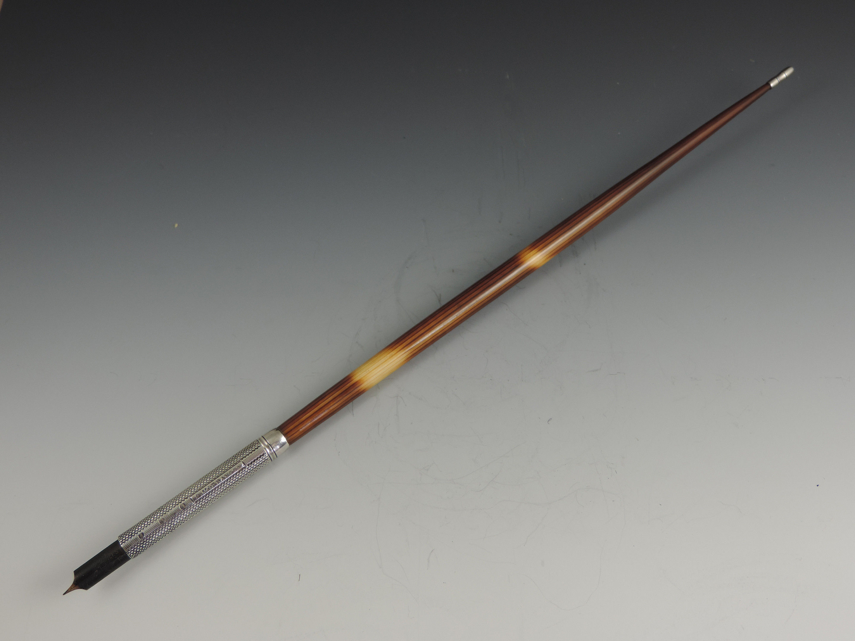 A large Victorian silver mounted Porcupine Quill Pen Holder with engine turned and line & dot silver ferrule stamped: S Mordan & Co.
