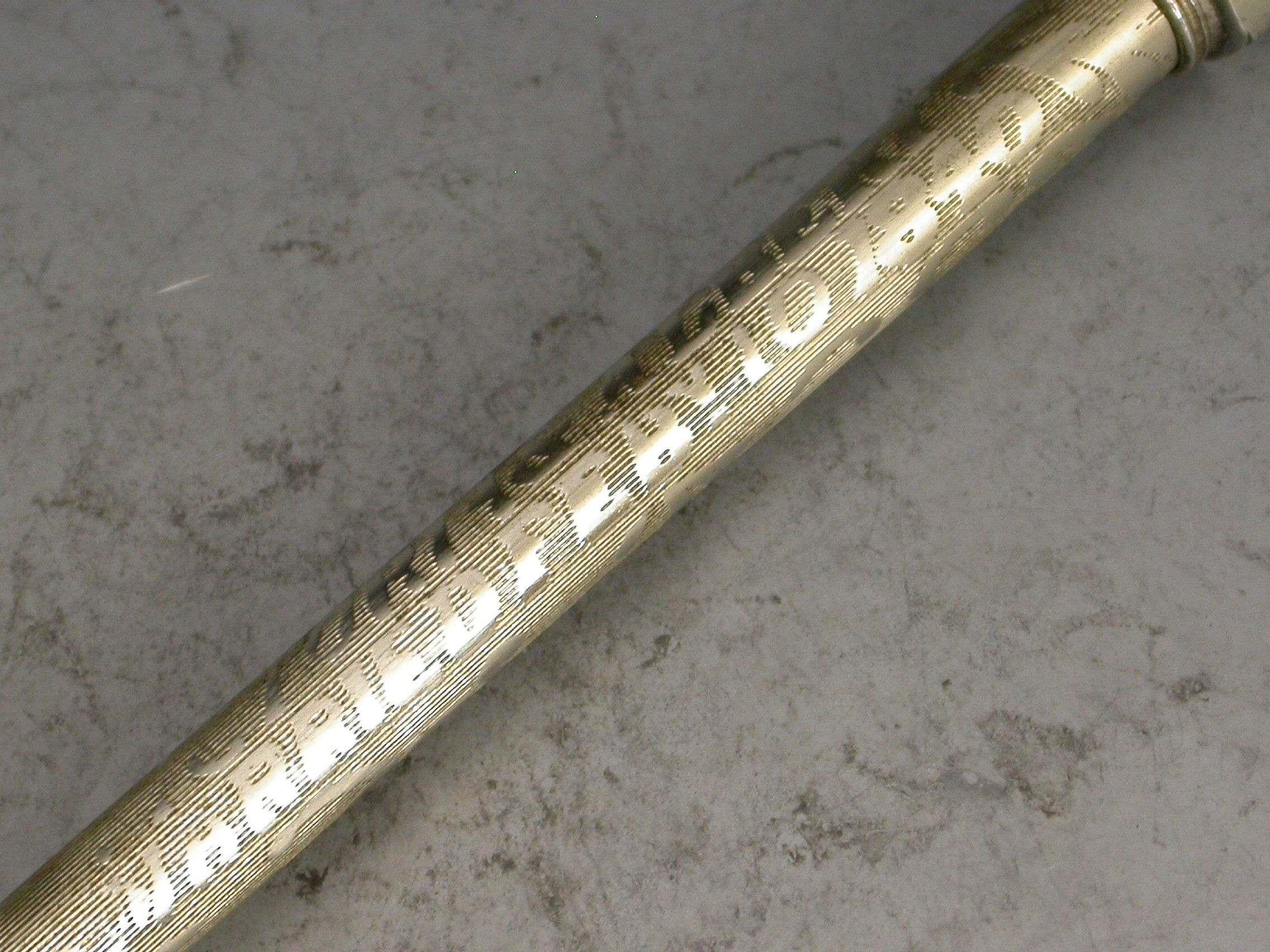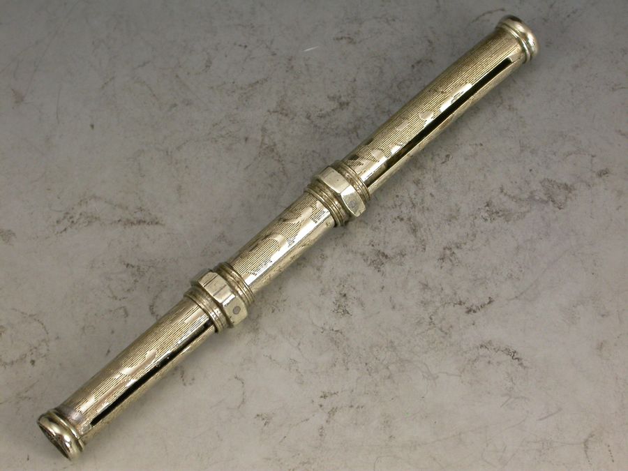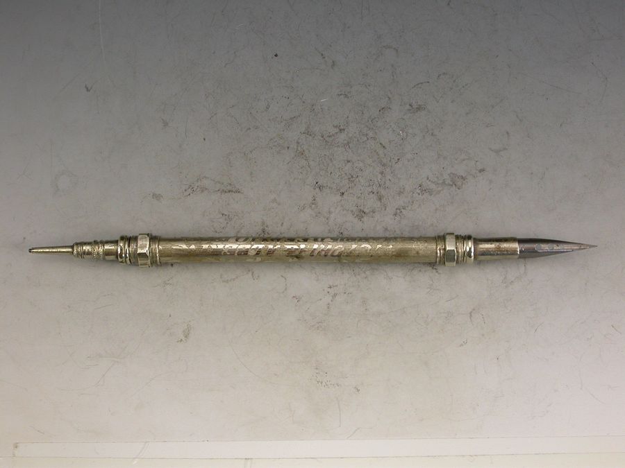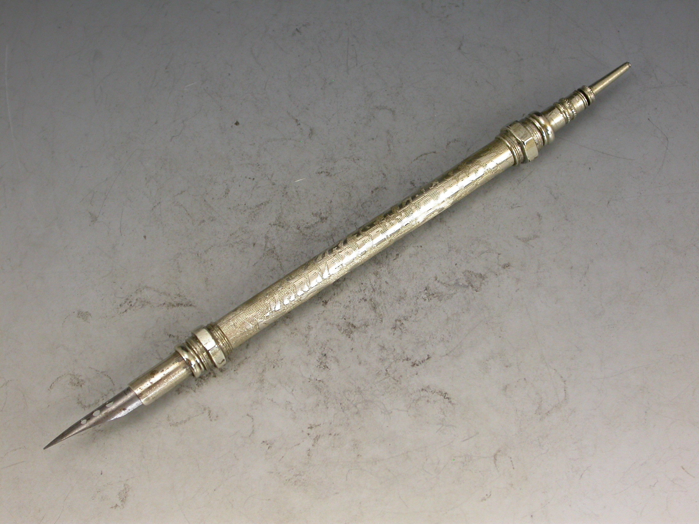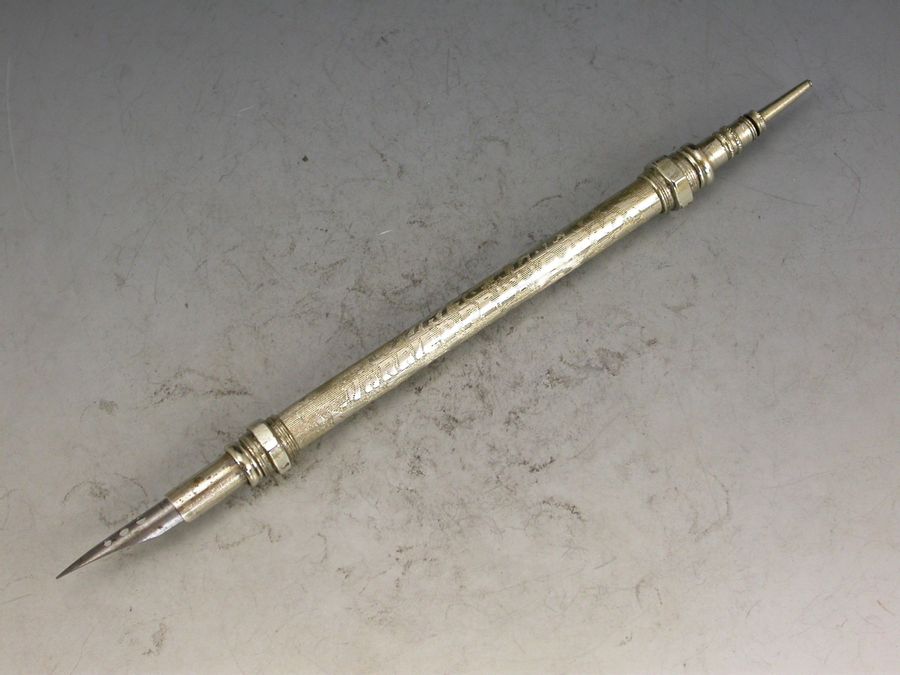 A rare Victorian nickel silver combined sliding Pen and Pencil, commemorating the marriage of Queen Victoria to Prince Albert. Embossed ""Victoria & Albert Married Feb 10, 1840"".
