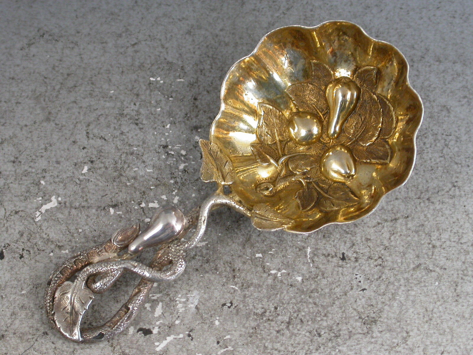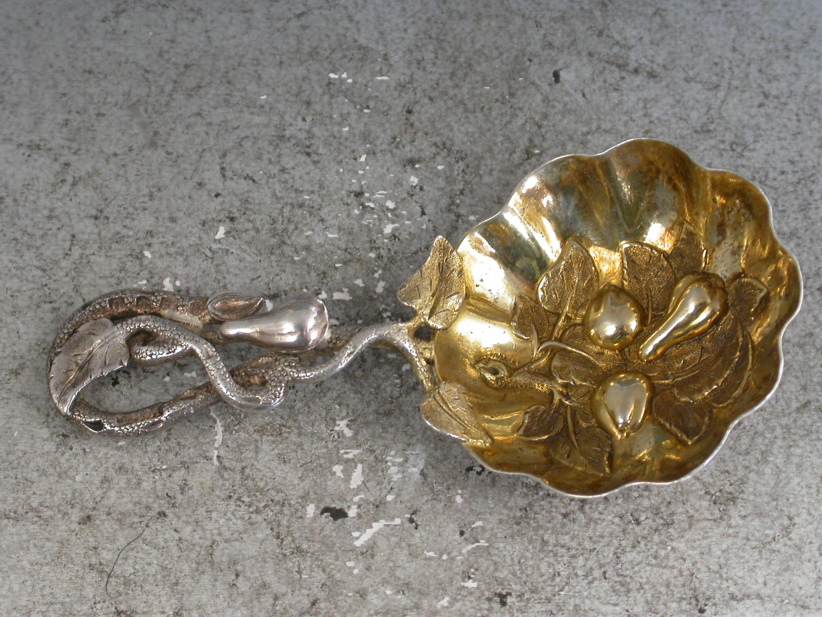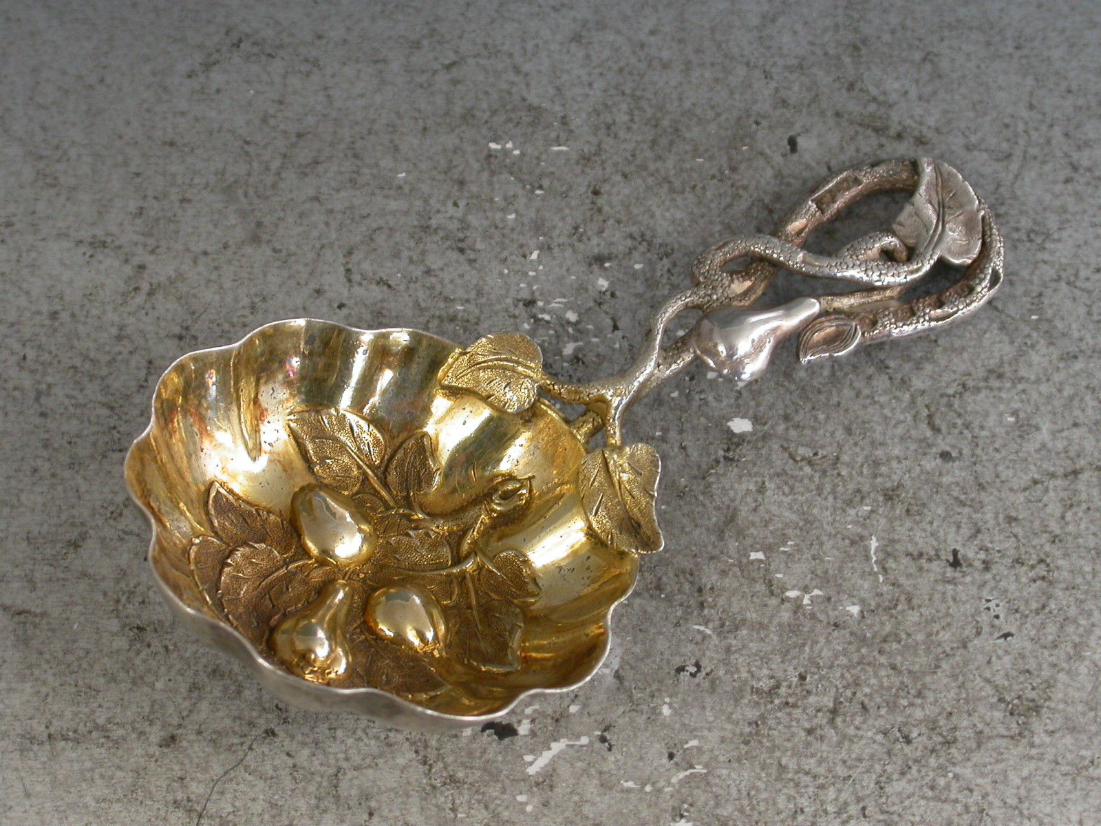 Victorian Naturalistic Silver Caddy Spoon - Embossed Fruit
