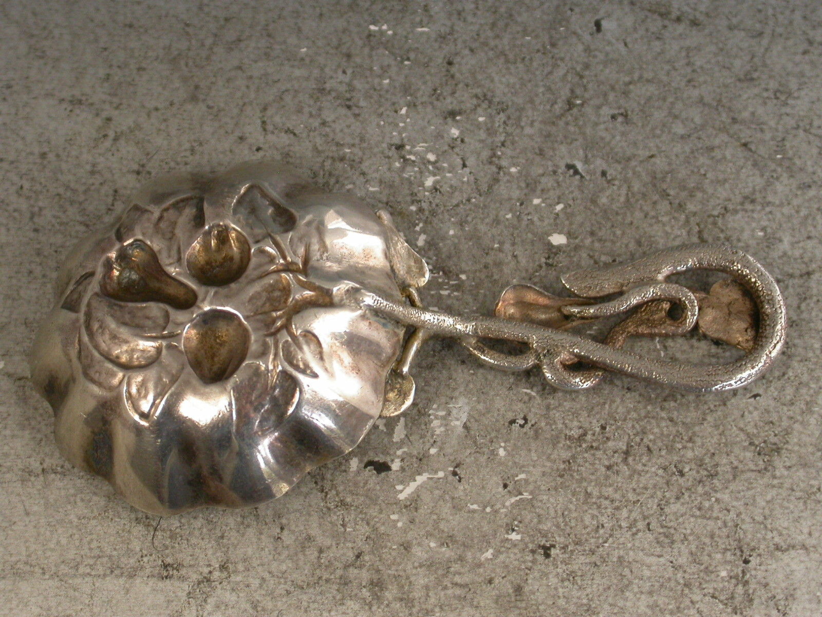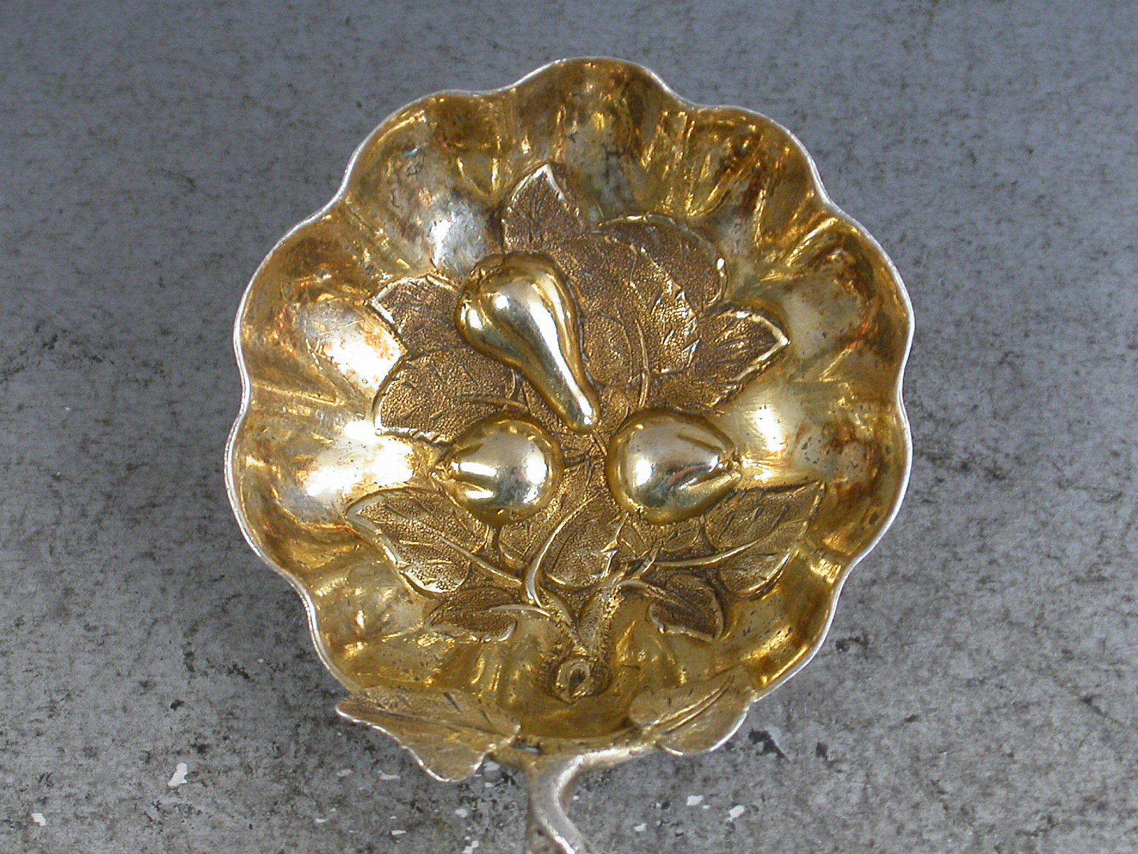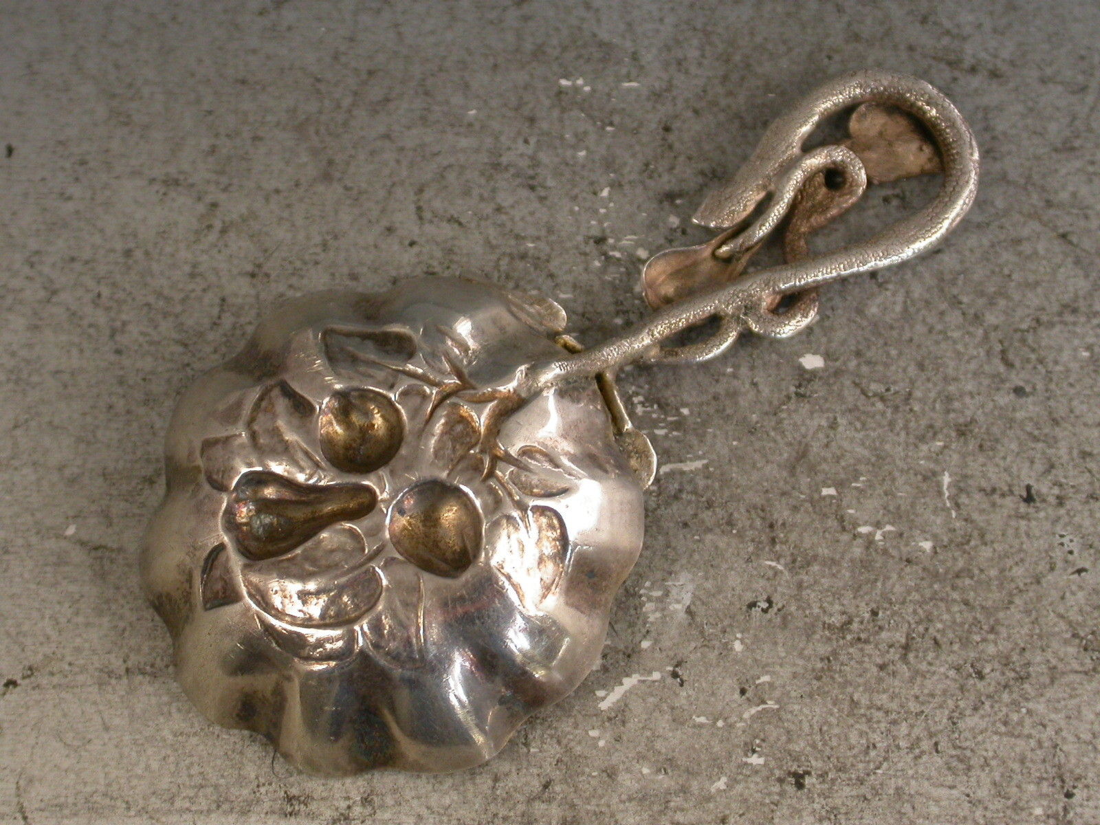 Victorian Naturalistic Silver Caddy Spoon - Embossed Fruit