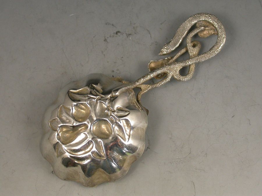 Victorian Naturalistic Silver Caddy Spoon - Embossed Fruit