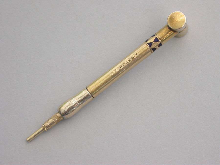 Victorian Novelty 16 Carat Gold & Enamel Croquet Mallet Propelling Pencil