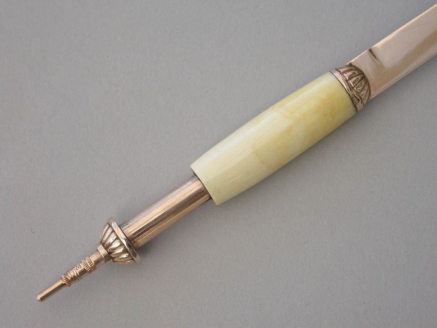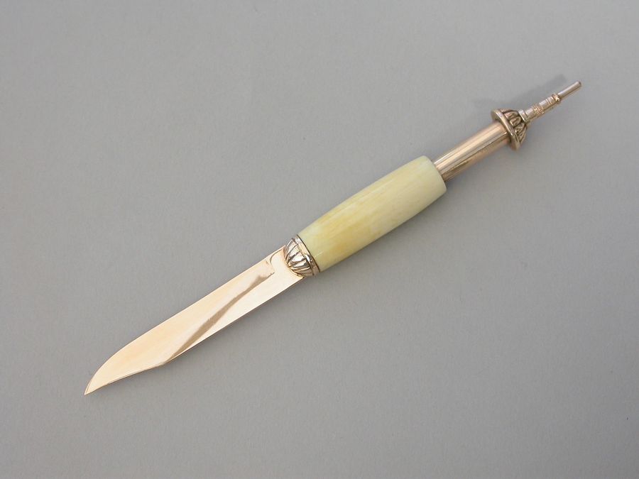 Victorian Novelty 9 crt Gold & Ivory Bowie Knife Propelling Pencil