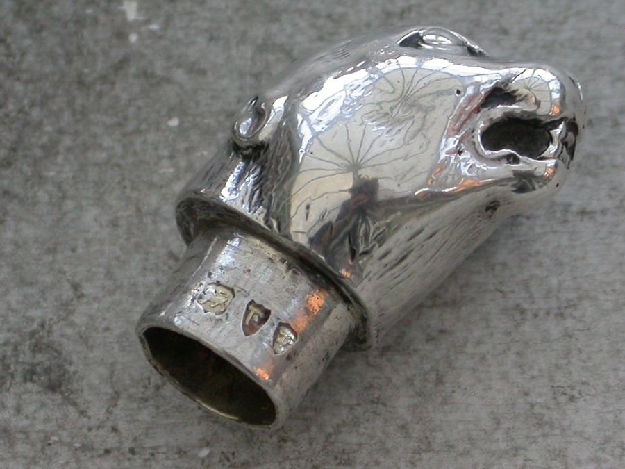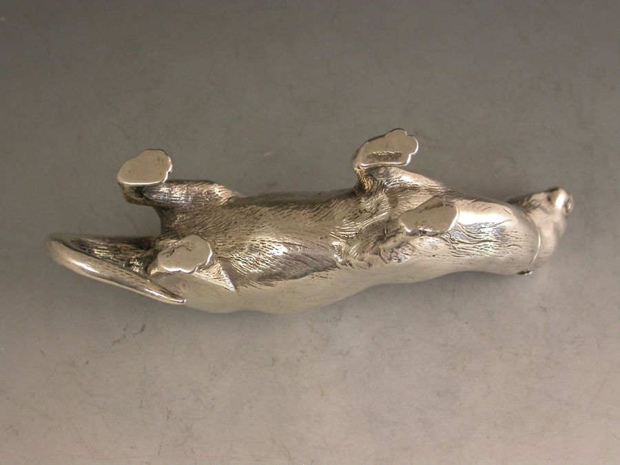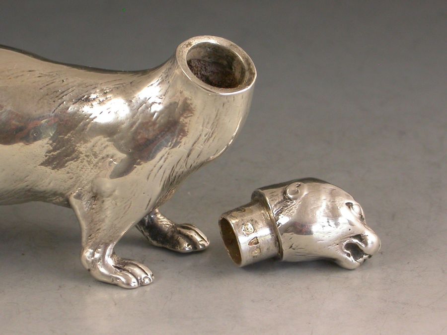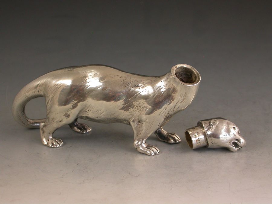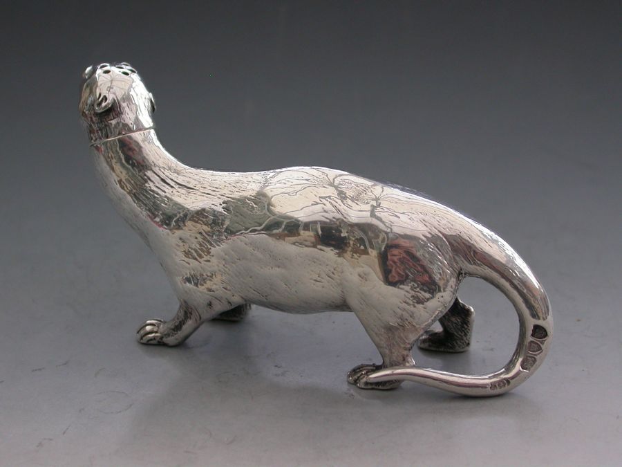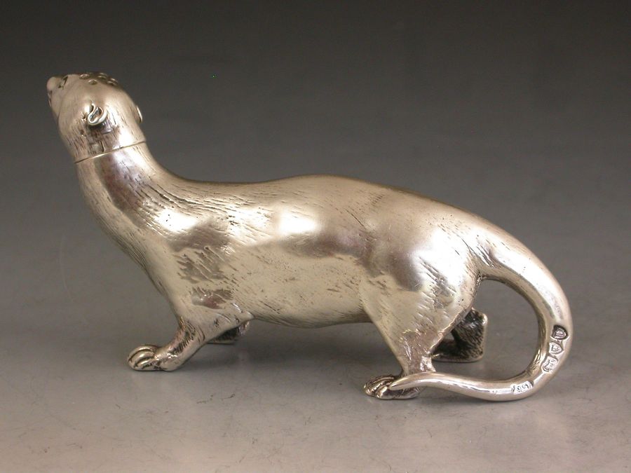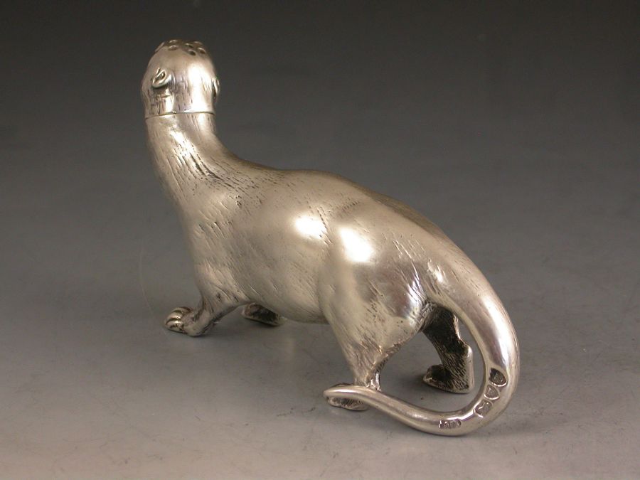 An extremely rare and fine quality novelty cast silver Pepper made in the form of an Otter. Pull-off pierced head.