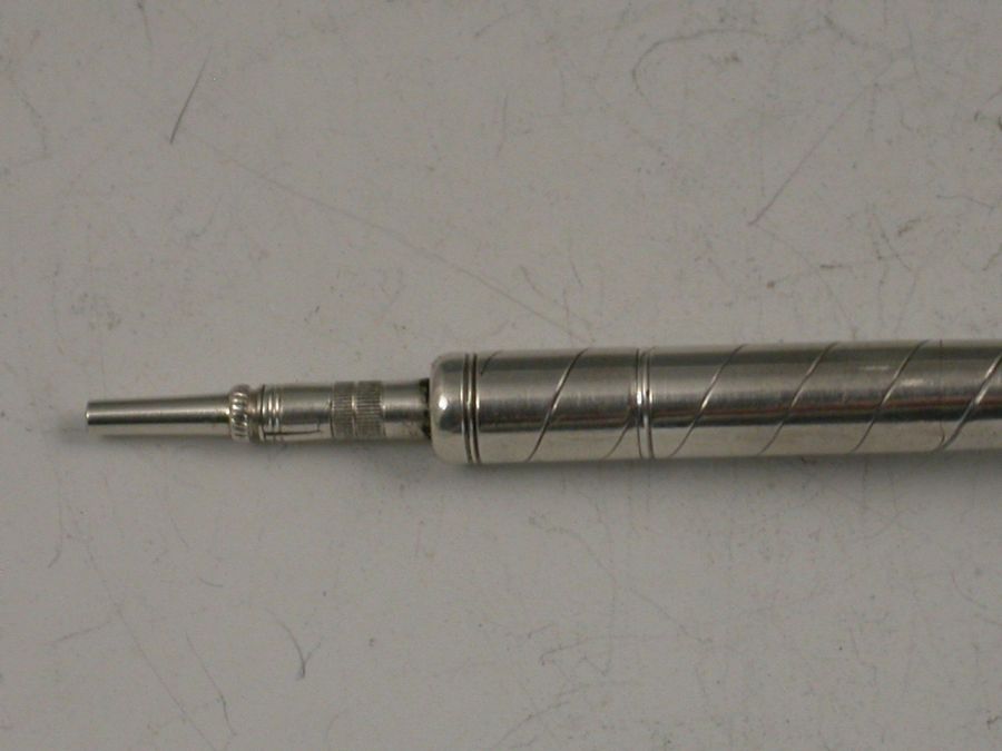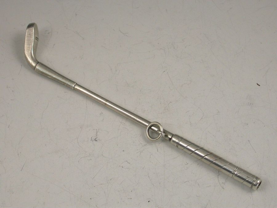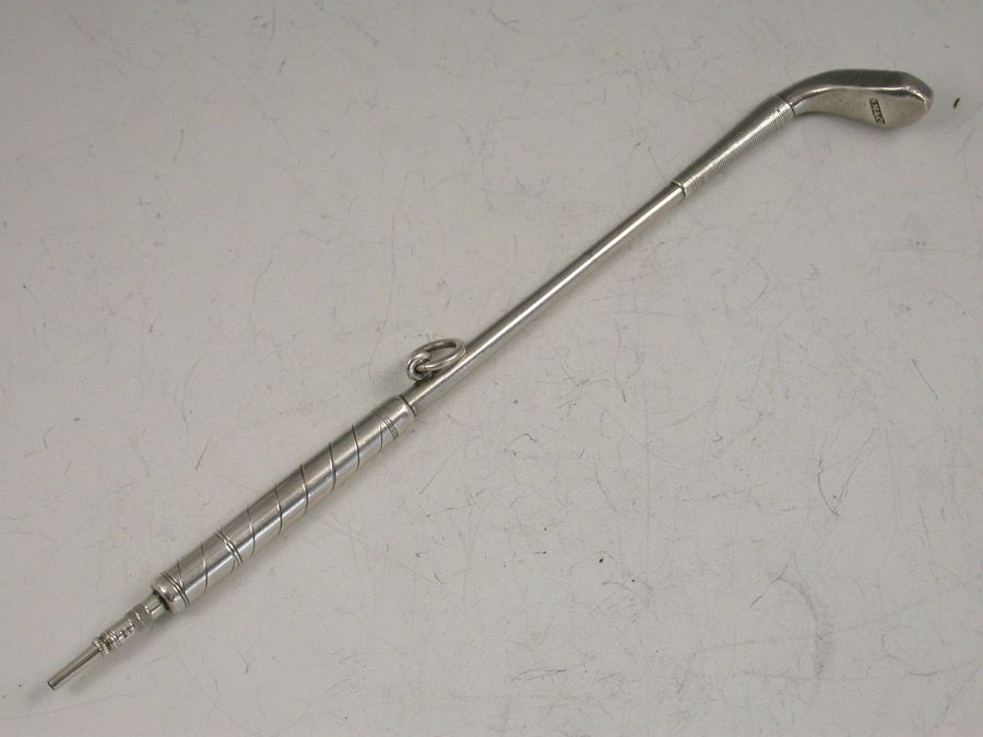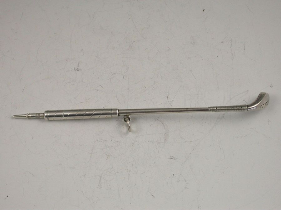 A rare Victorian novelty silver Propelling Pencil formed as a 19th century Golf Club, the pencil propelling from the handle with a twist mechanism.