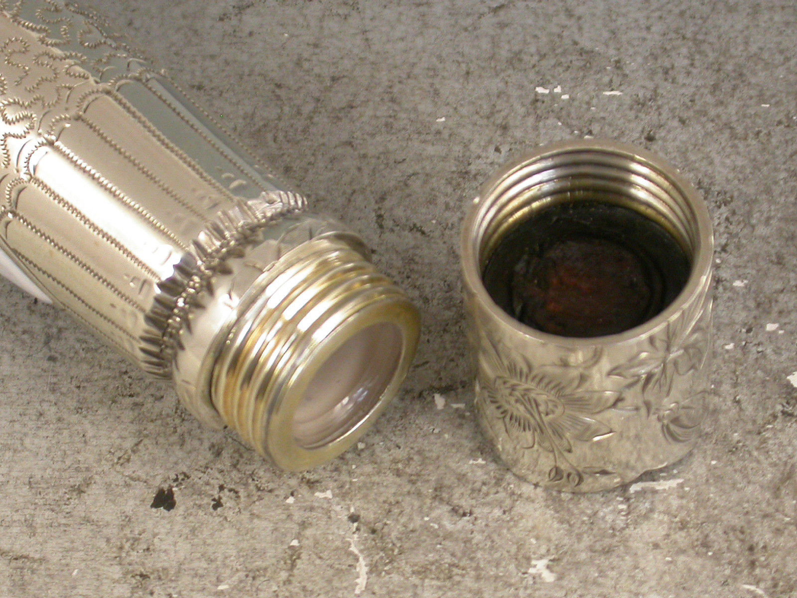 Victorian Novelty Silver & Enamel Christmas Cracker Double Scent Bottle