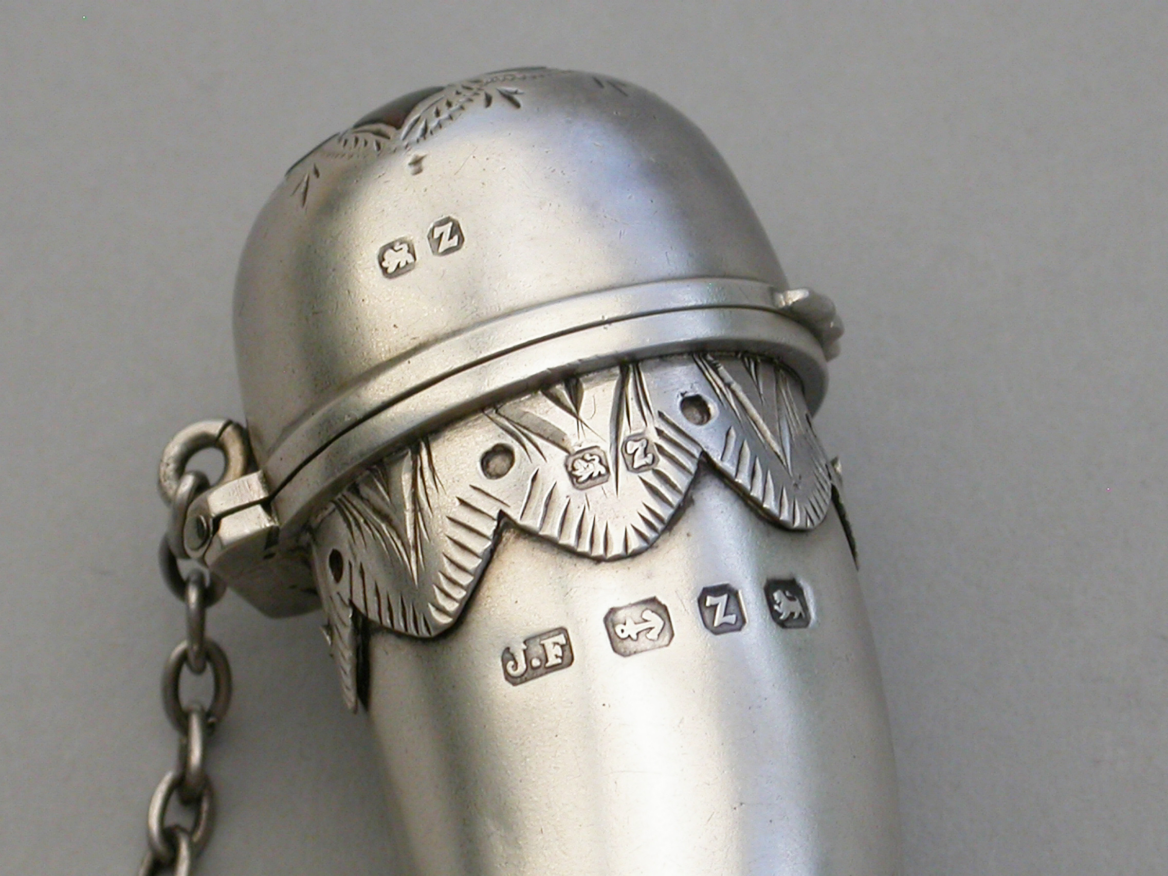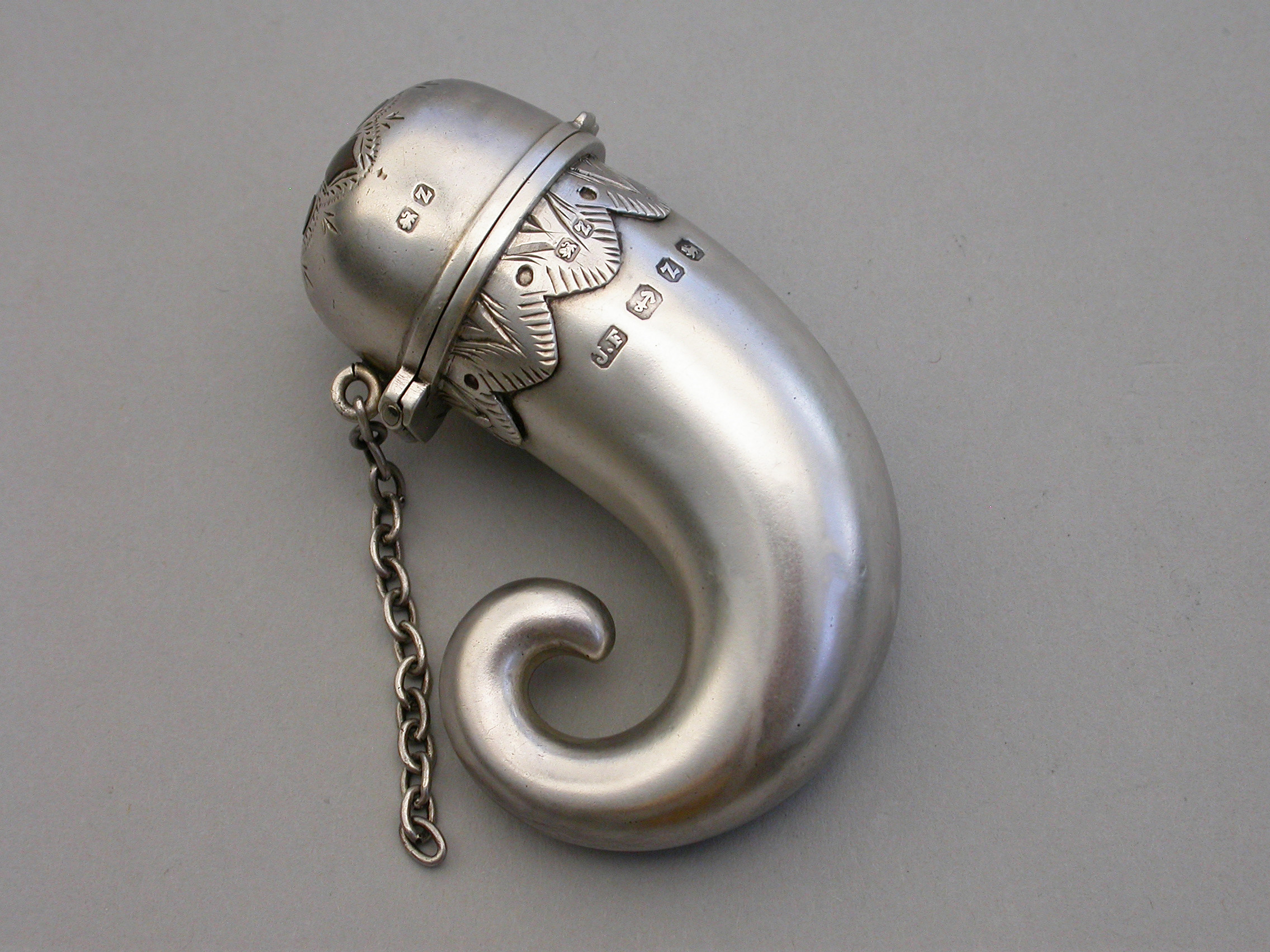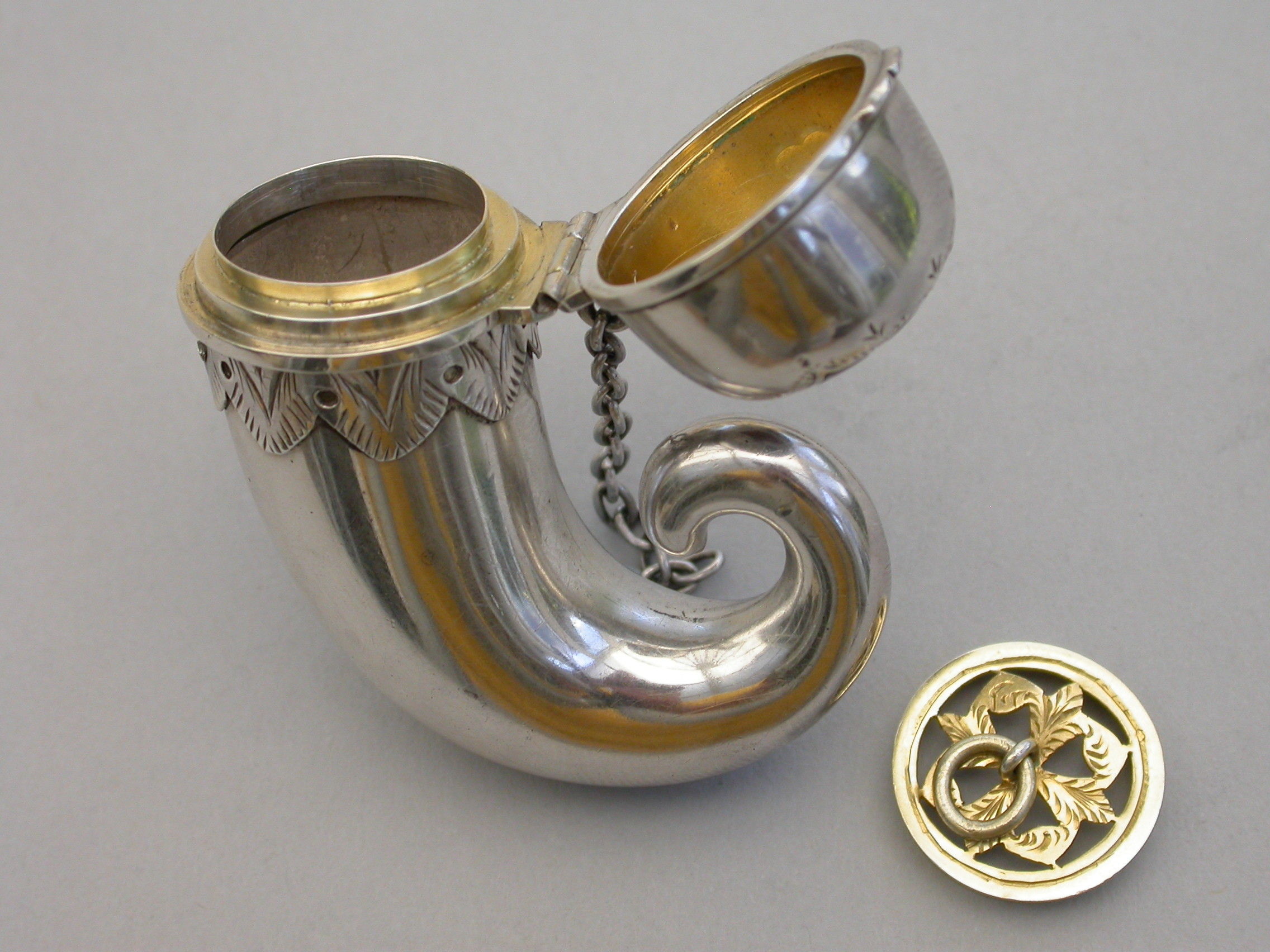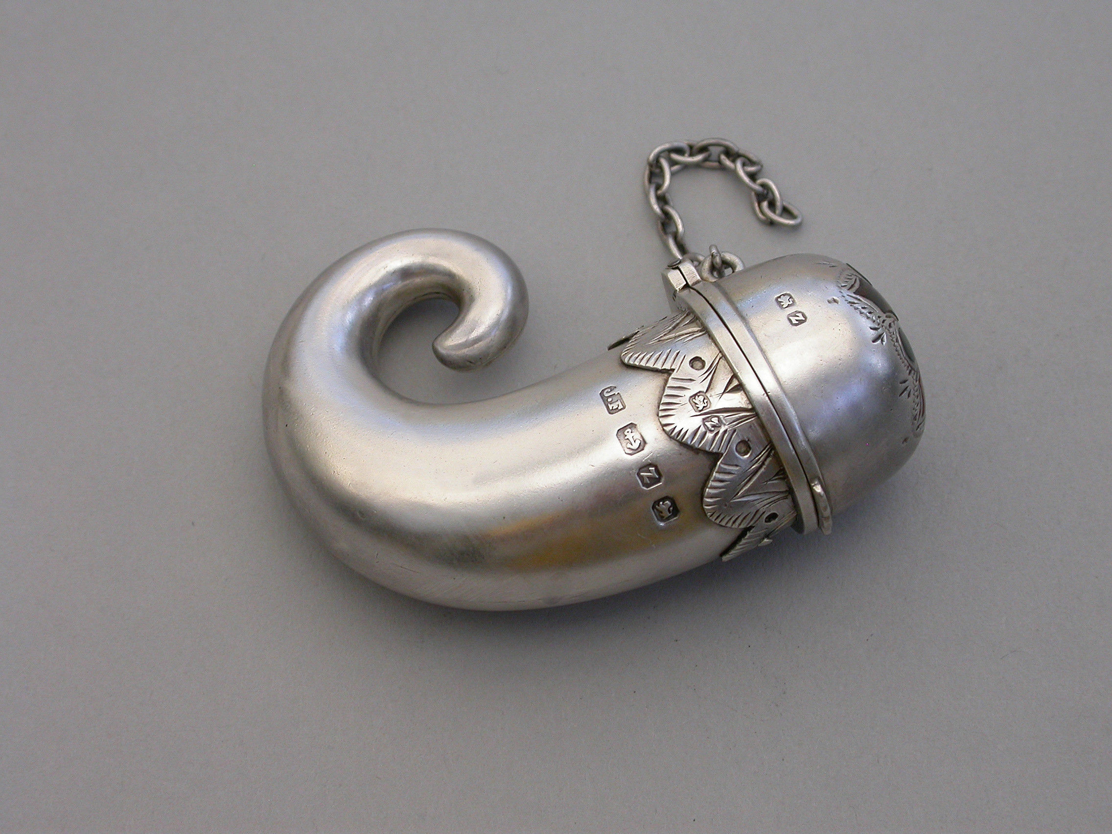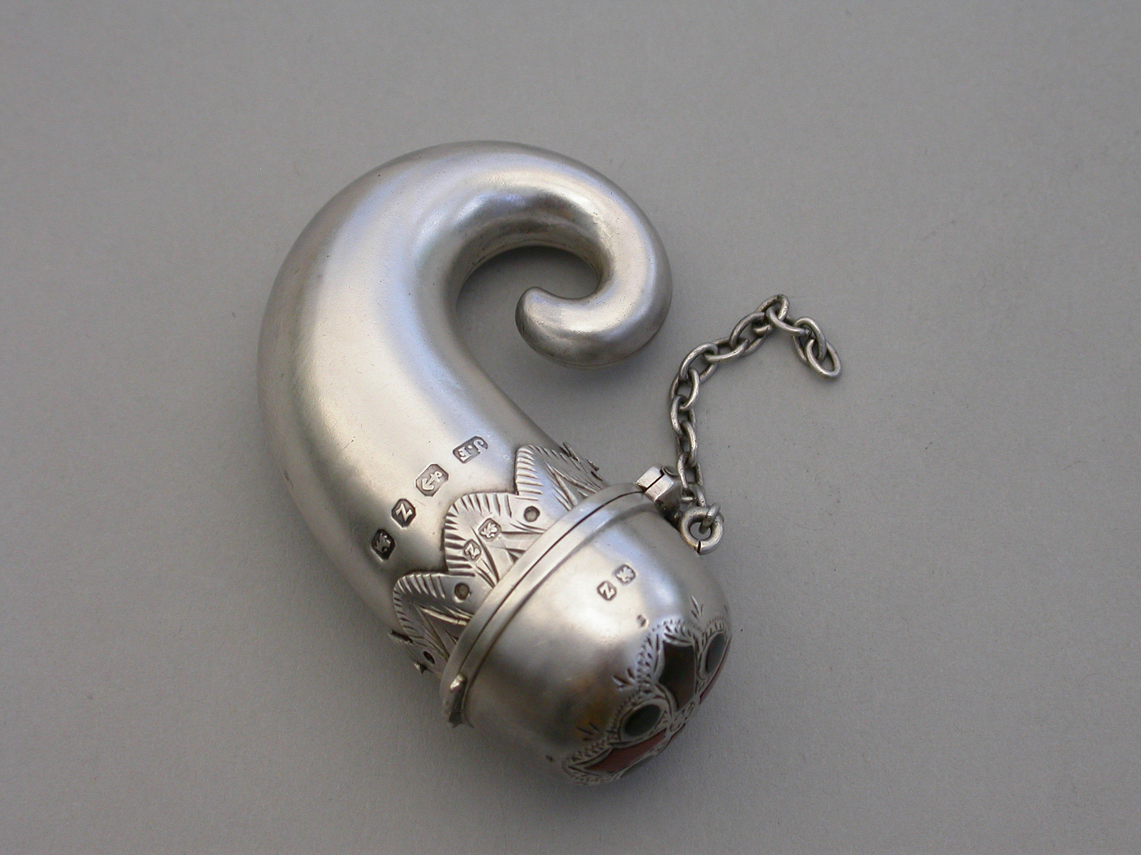 Victorian Novelty Silver & Hardstone ""Snuff Mull"" Vinaigrette