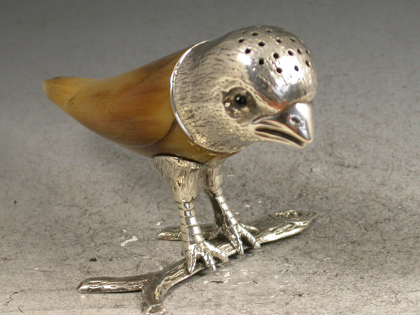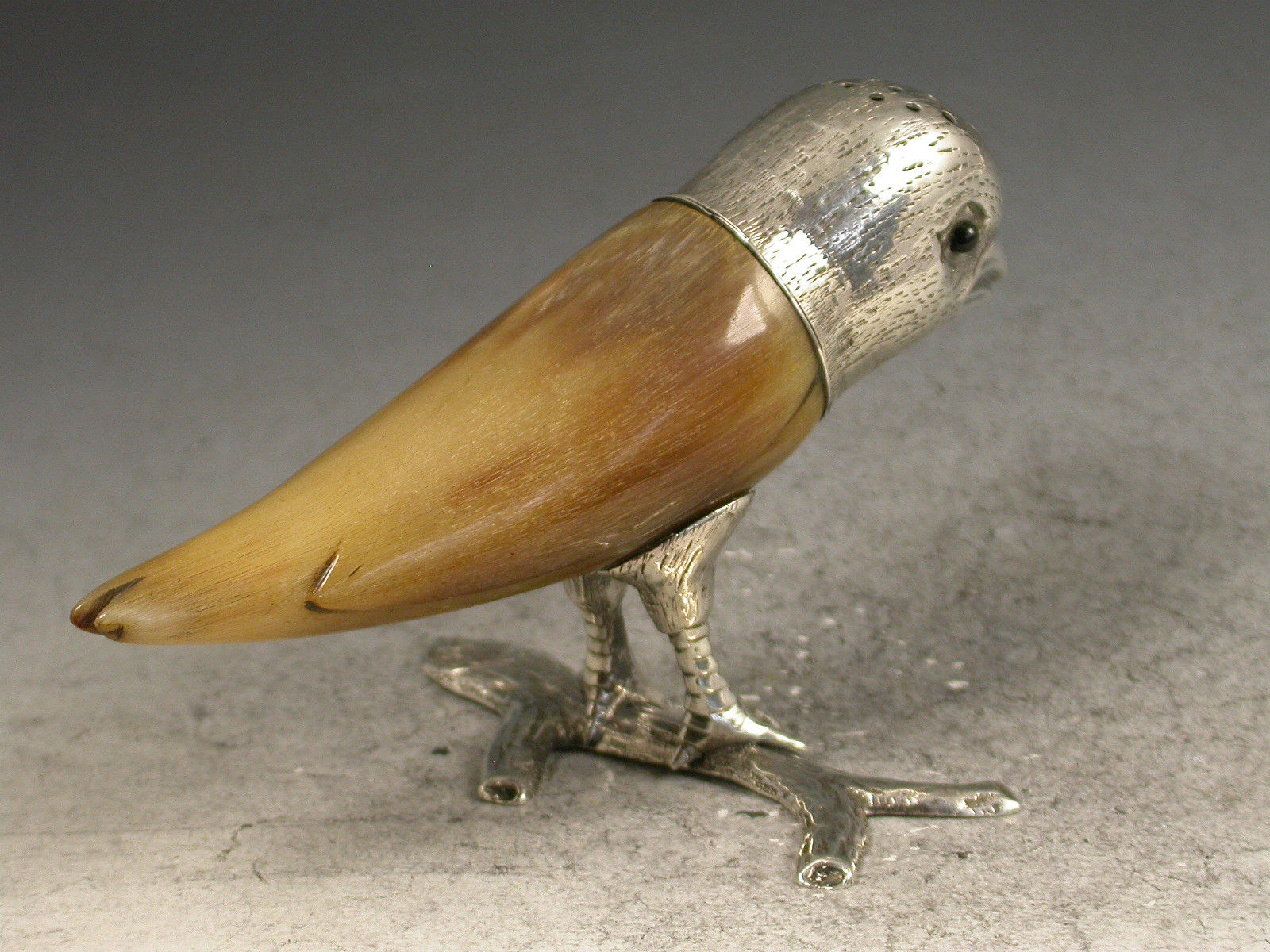 Victorian Novelty Silver & Horn Parakeet Pepper