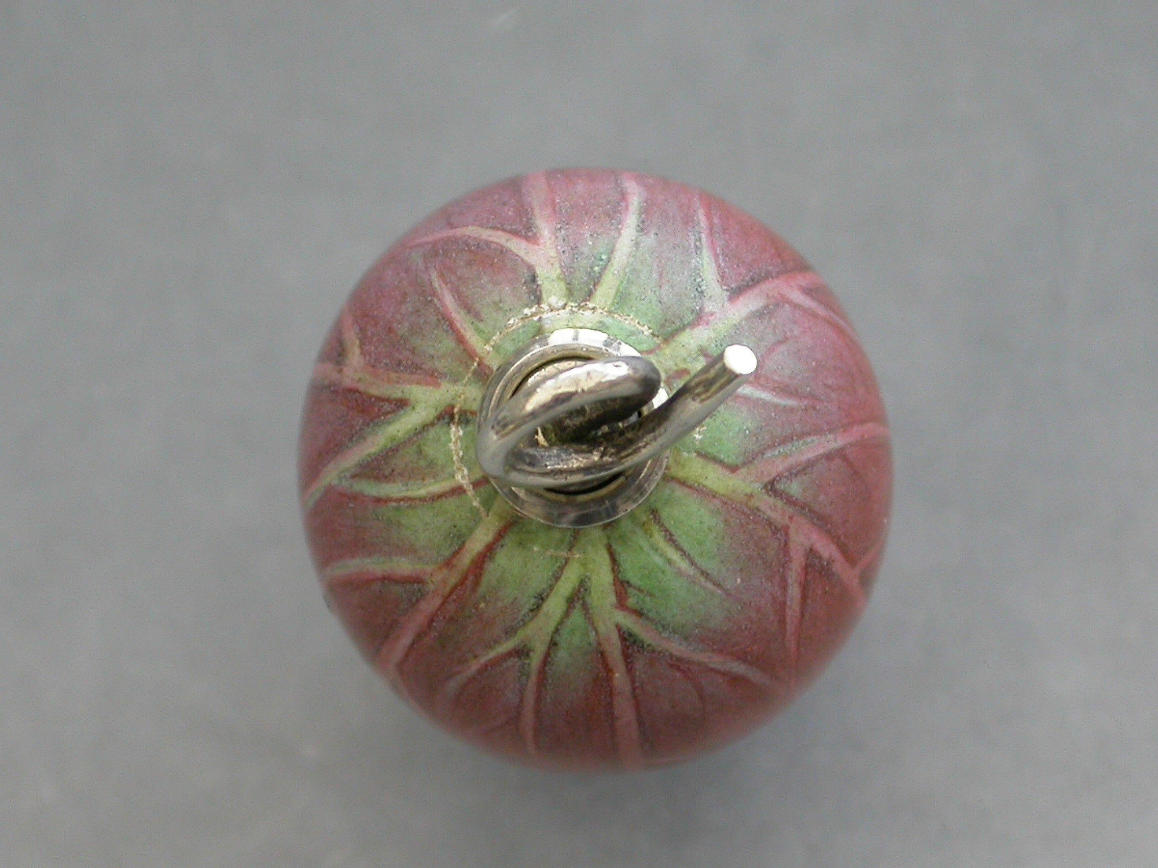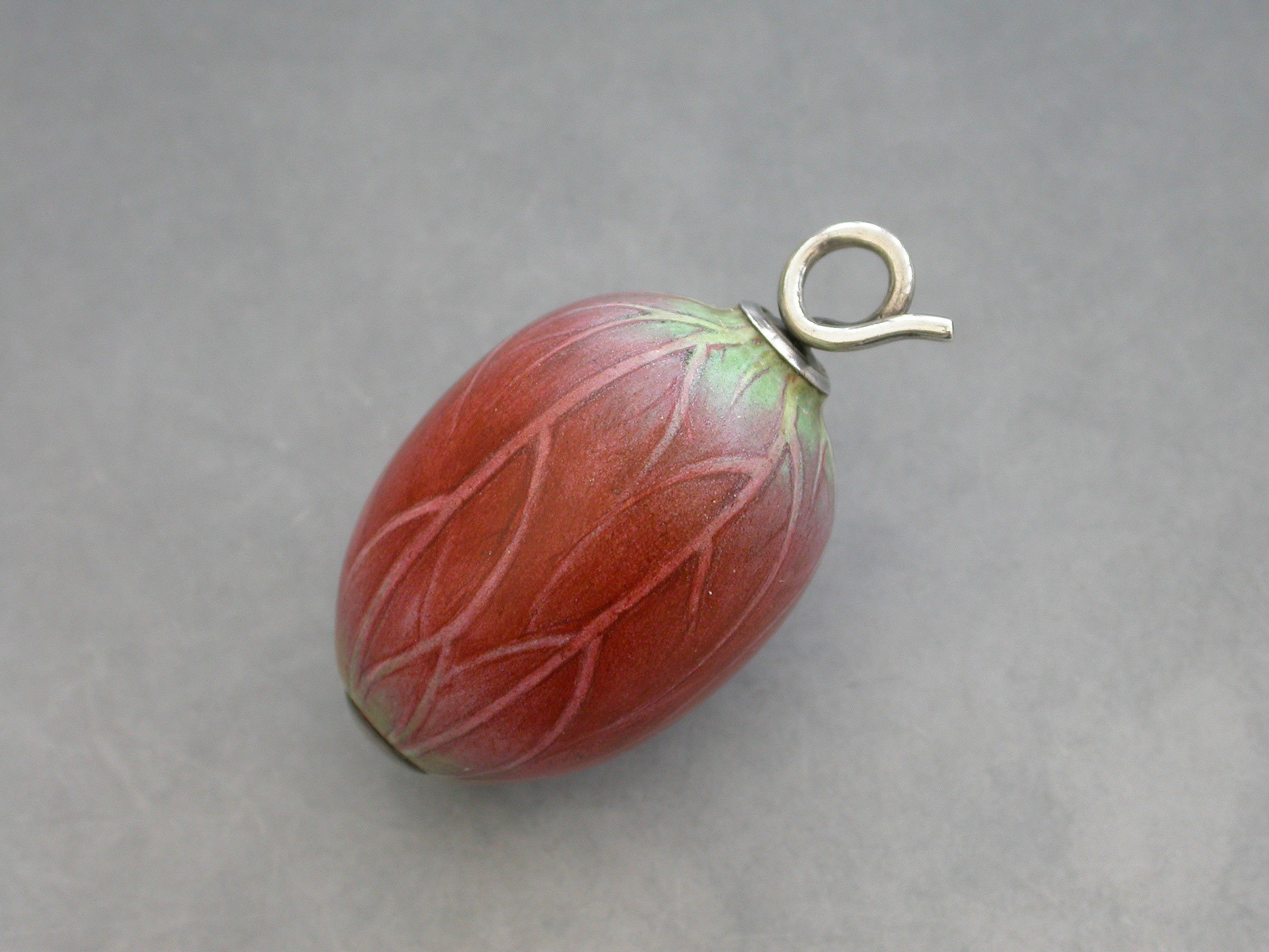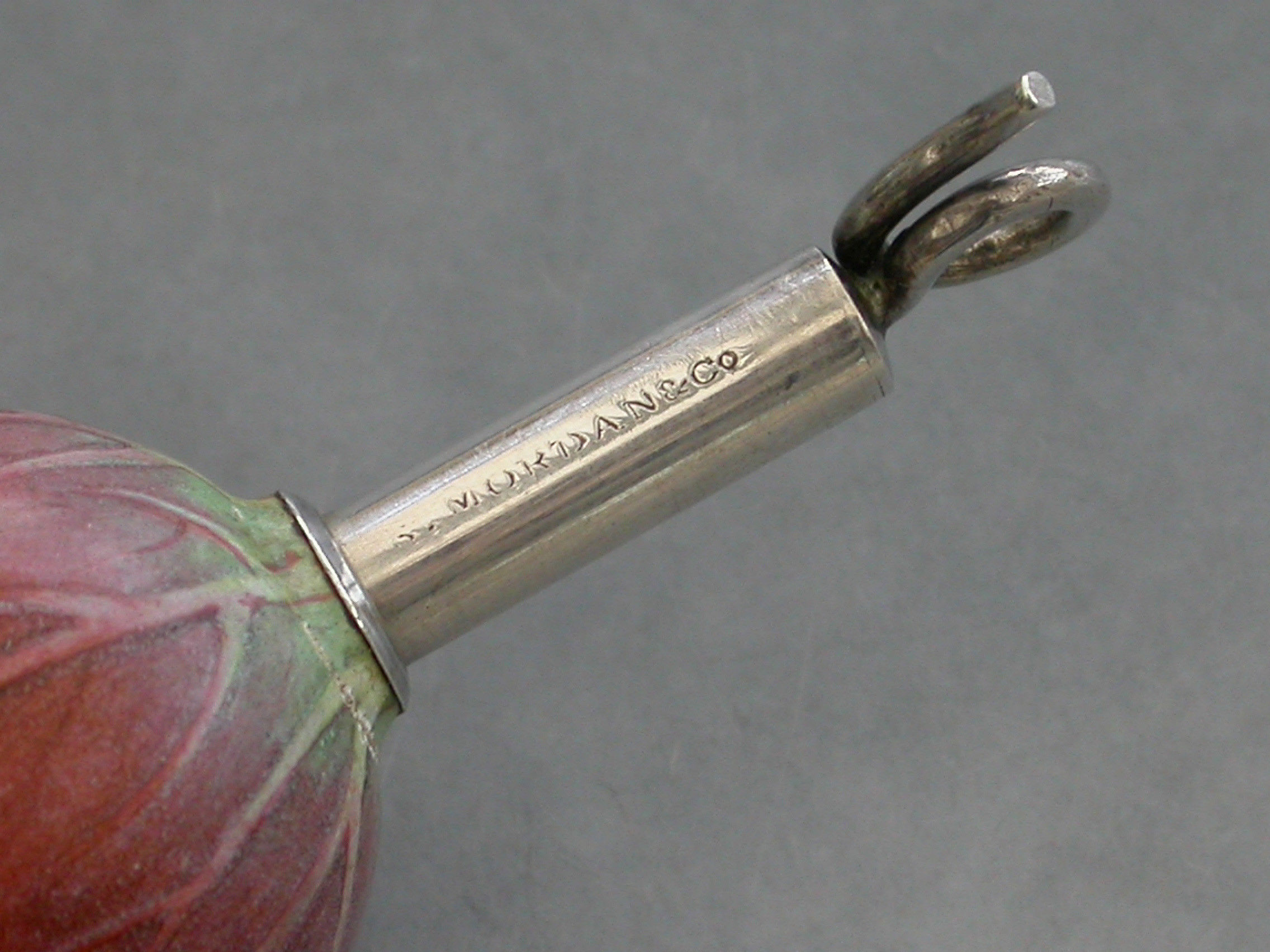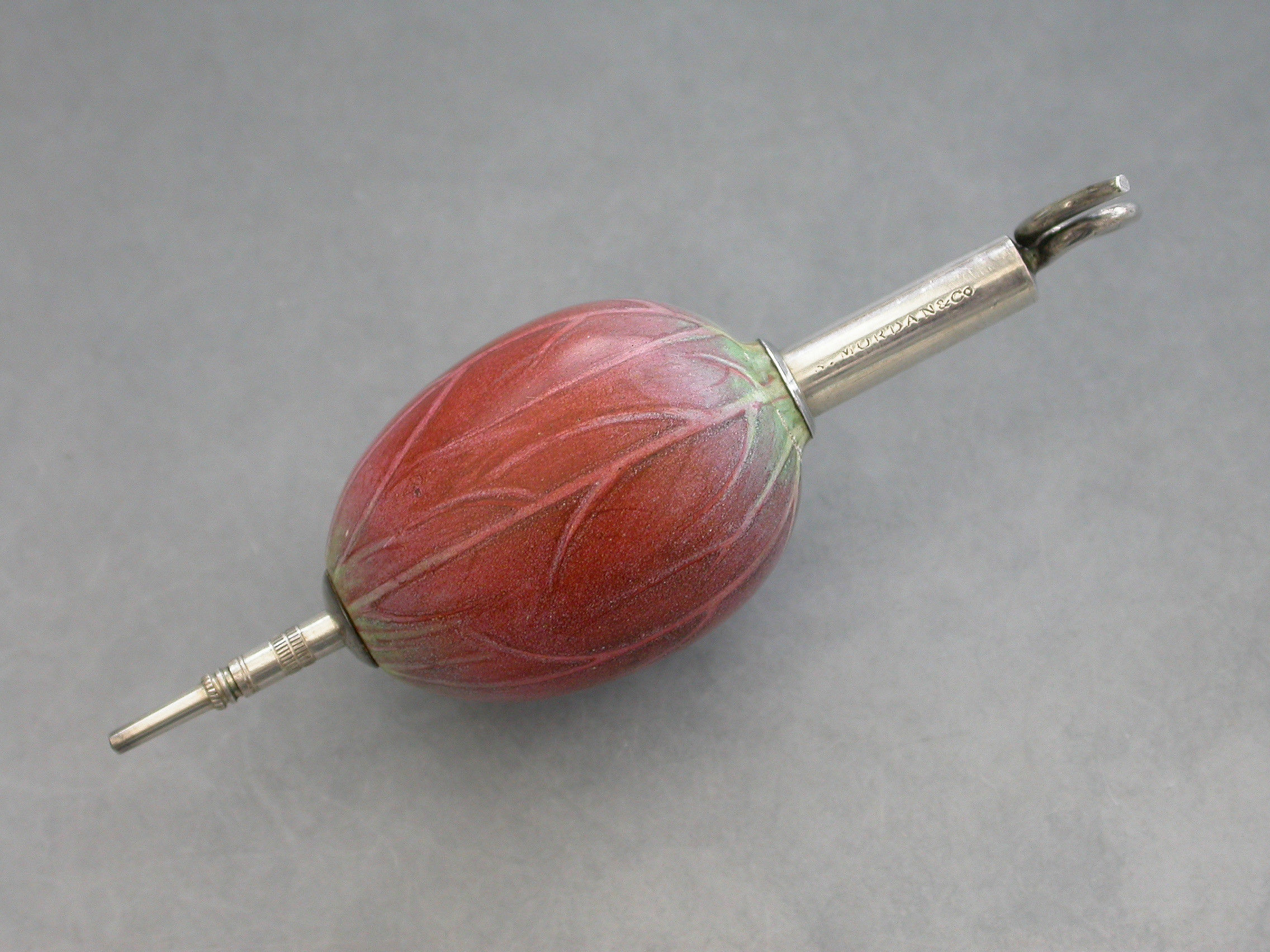 An extremely rare Victorian novelty silver and porcelain telescopic Propelling Pencil, the body realistically painted as a Lotus Flower Bud, with twisted wire handle.