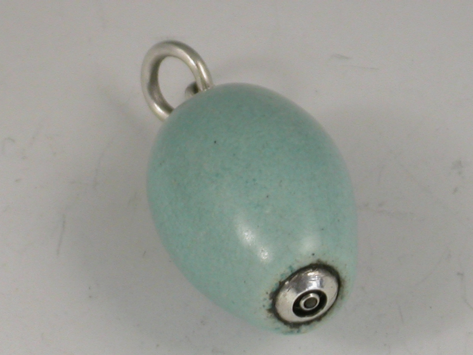 A rare novelty silver Propelling Pencil with telescopic action, the body formed from as a birds egg, possibly a Robins.