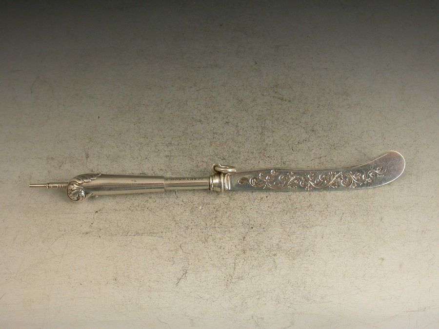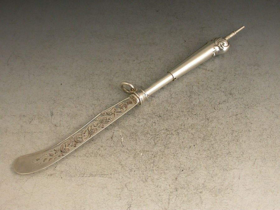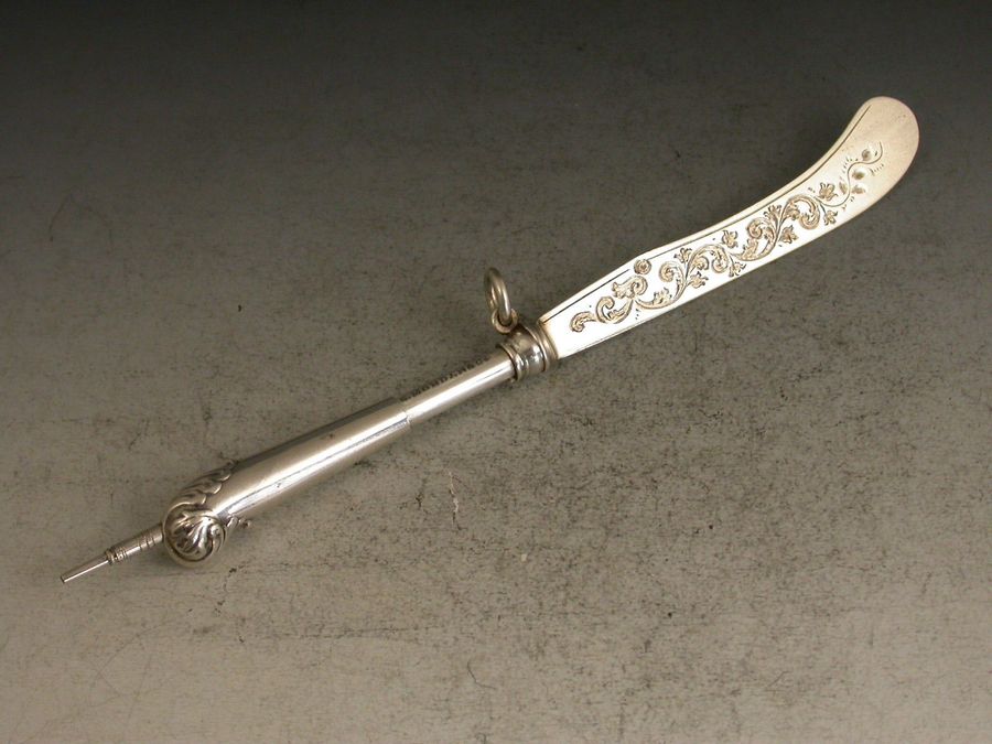 Victorian Novelty Silver Butter Knife Telescopic Propelling Pencil