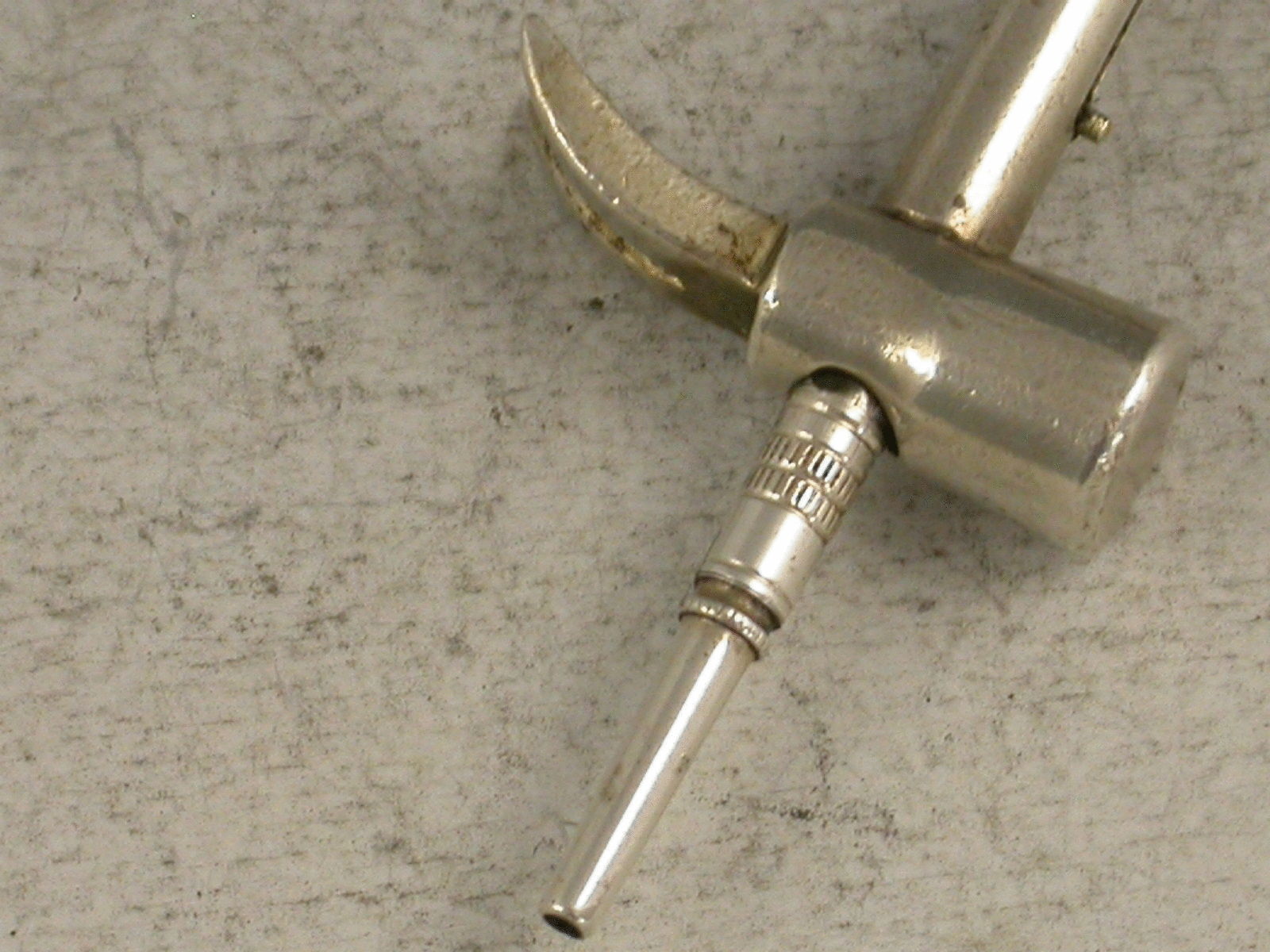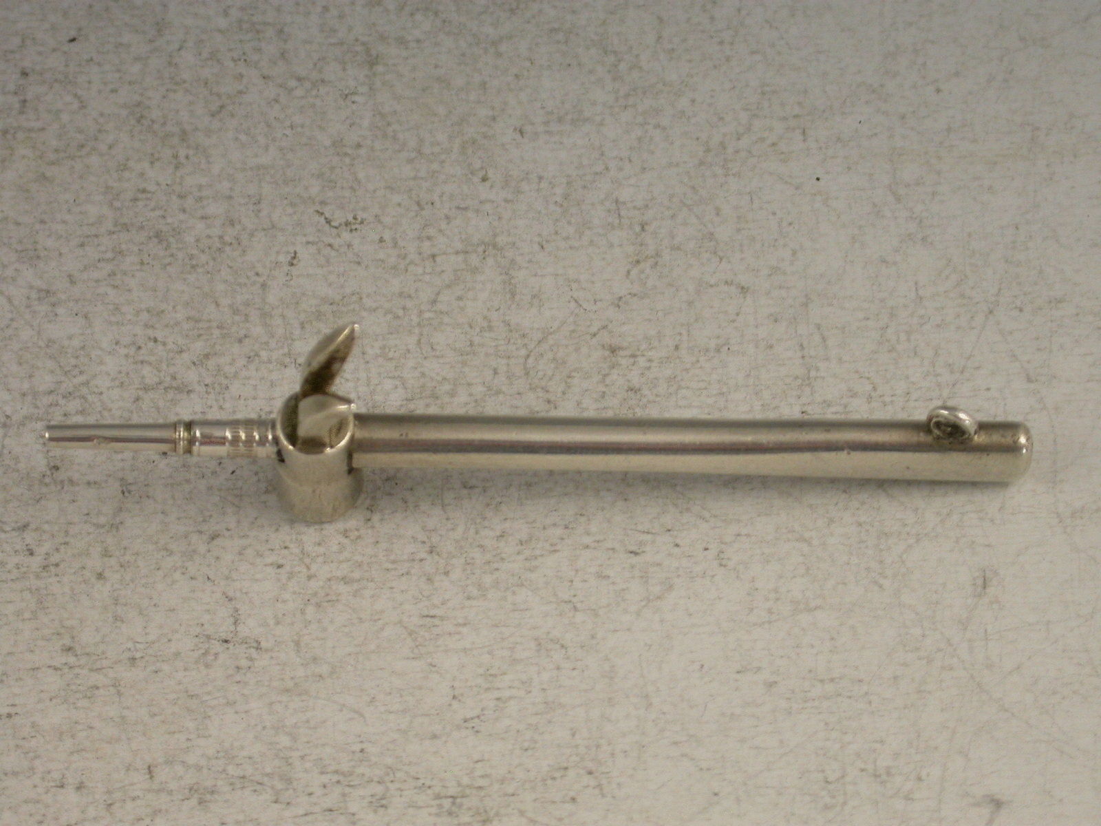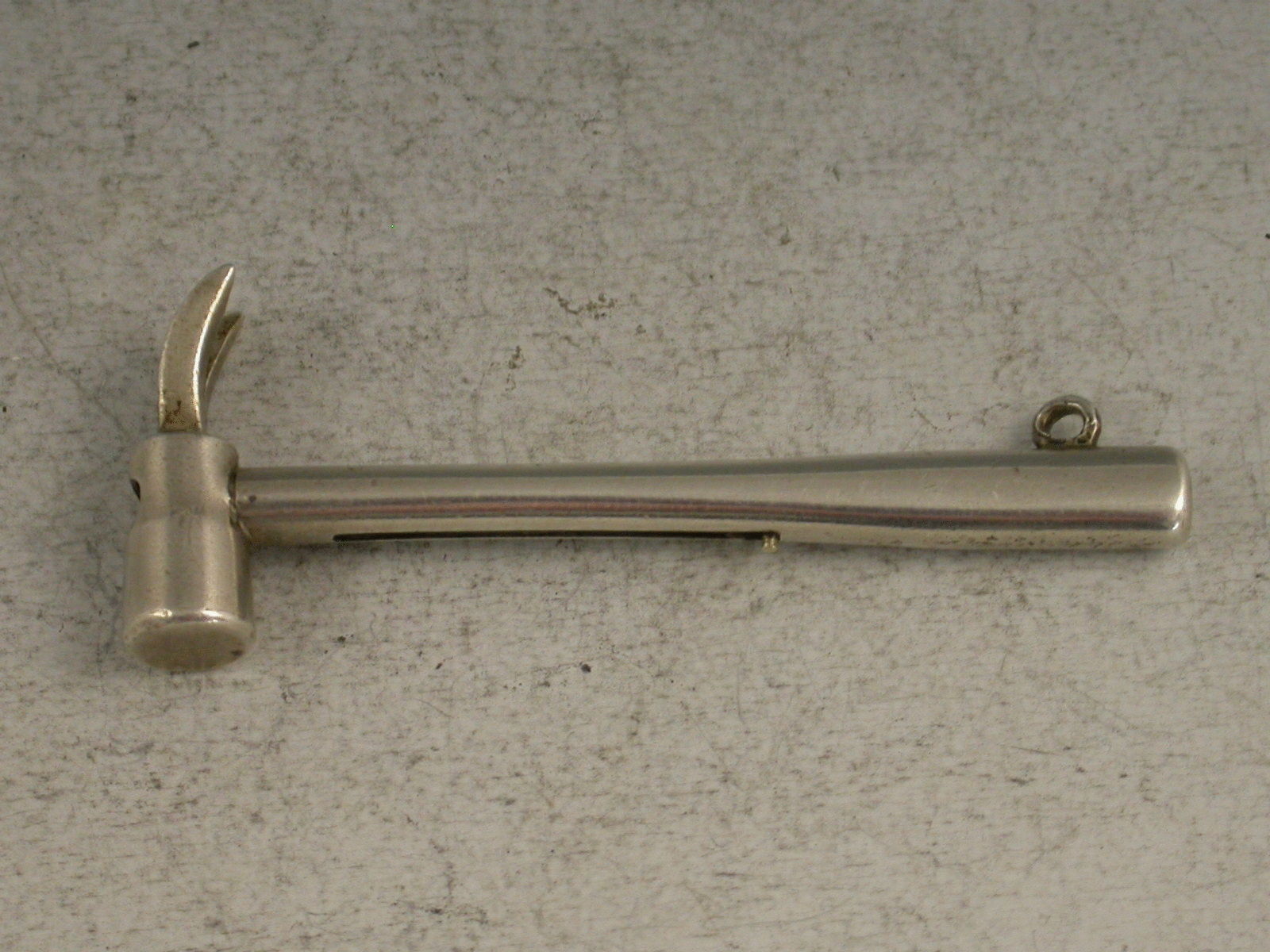 A rare Victorian silver Propelling Pencil in the form of a Claw Hammer with slide out pencil and suspension ring.