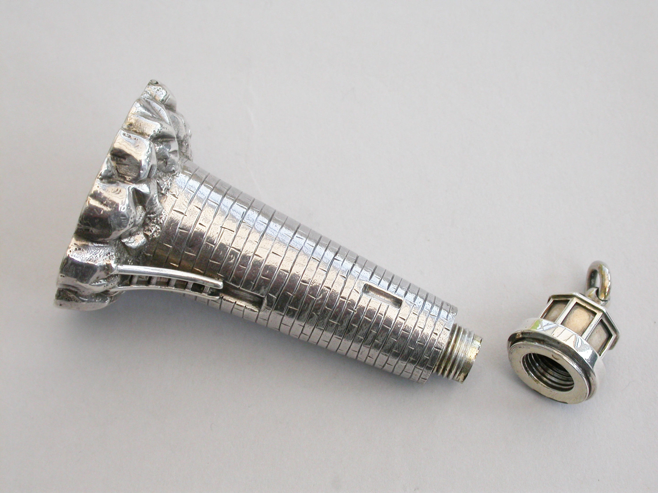 Victorian Novelty Silver Combined Scent Bottle / Vinaigrette in the form of the Eddystone Lighthouse
