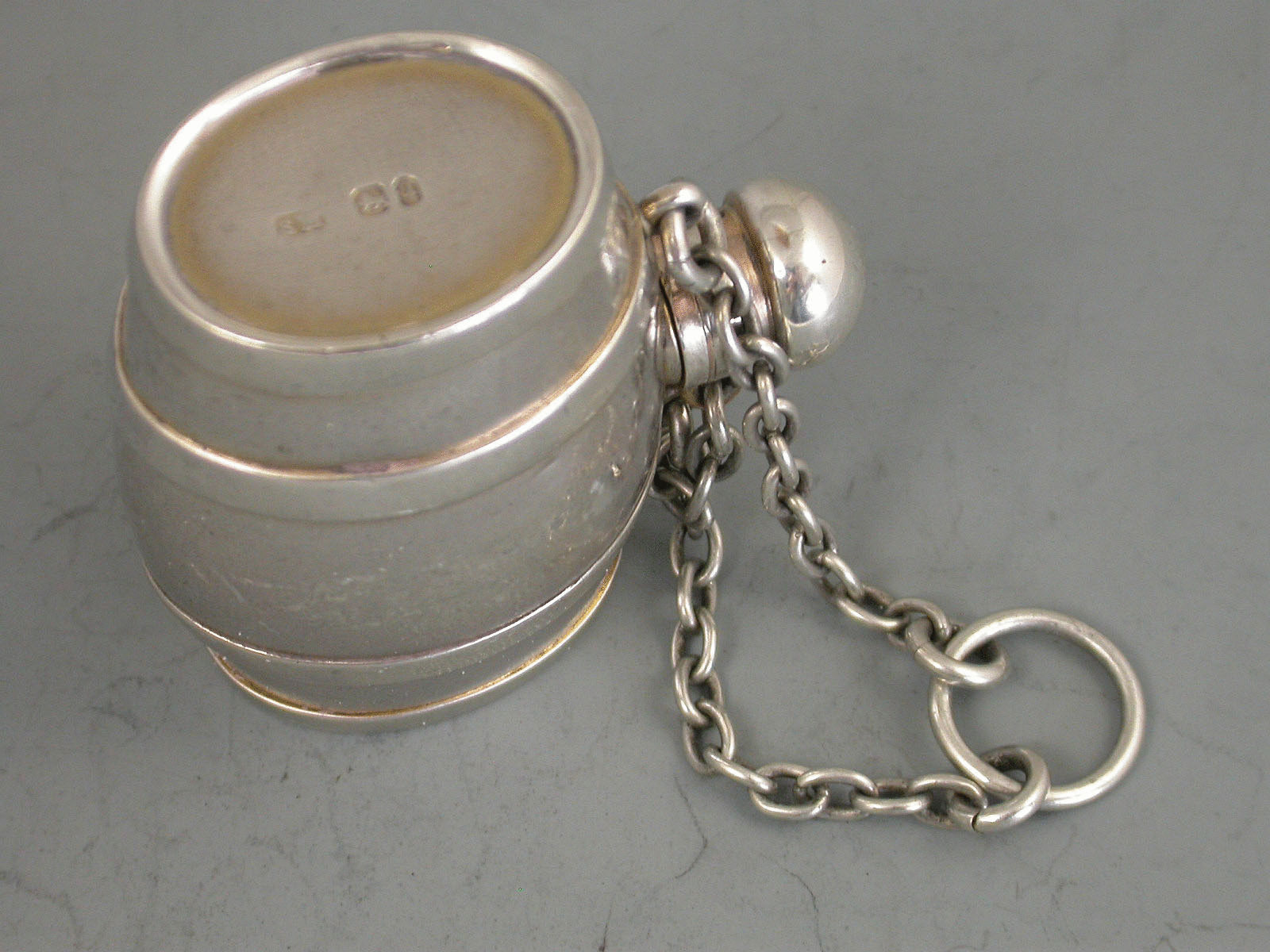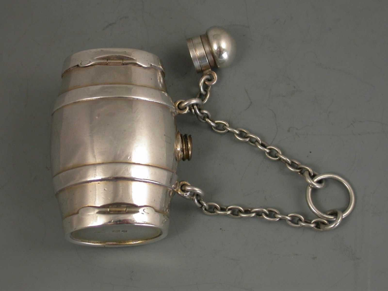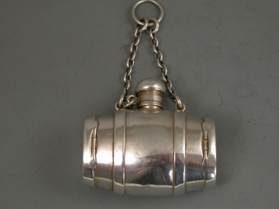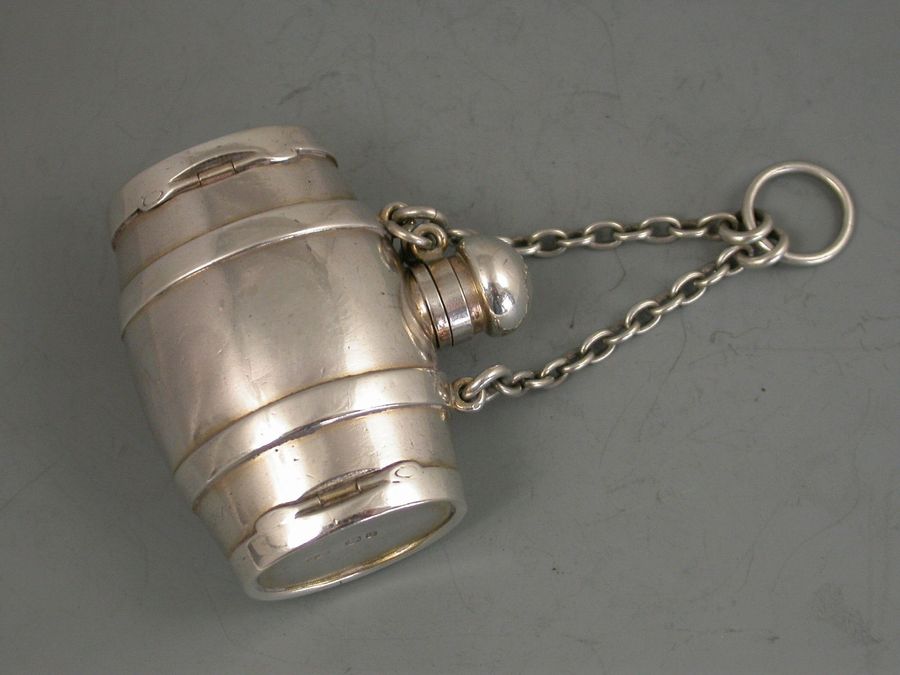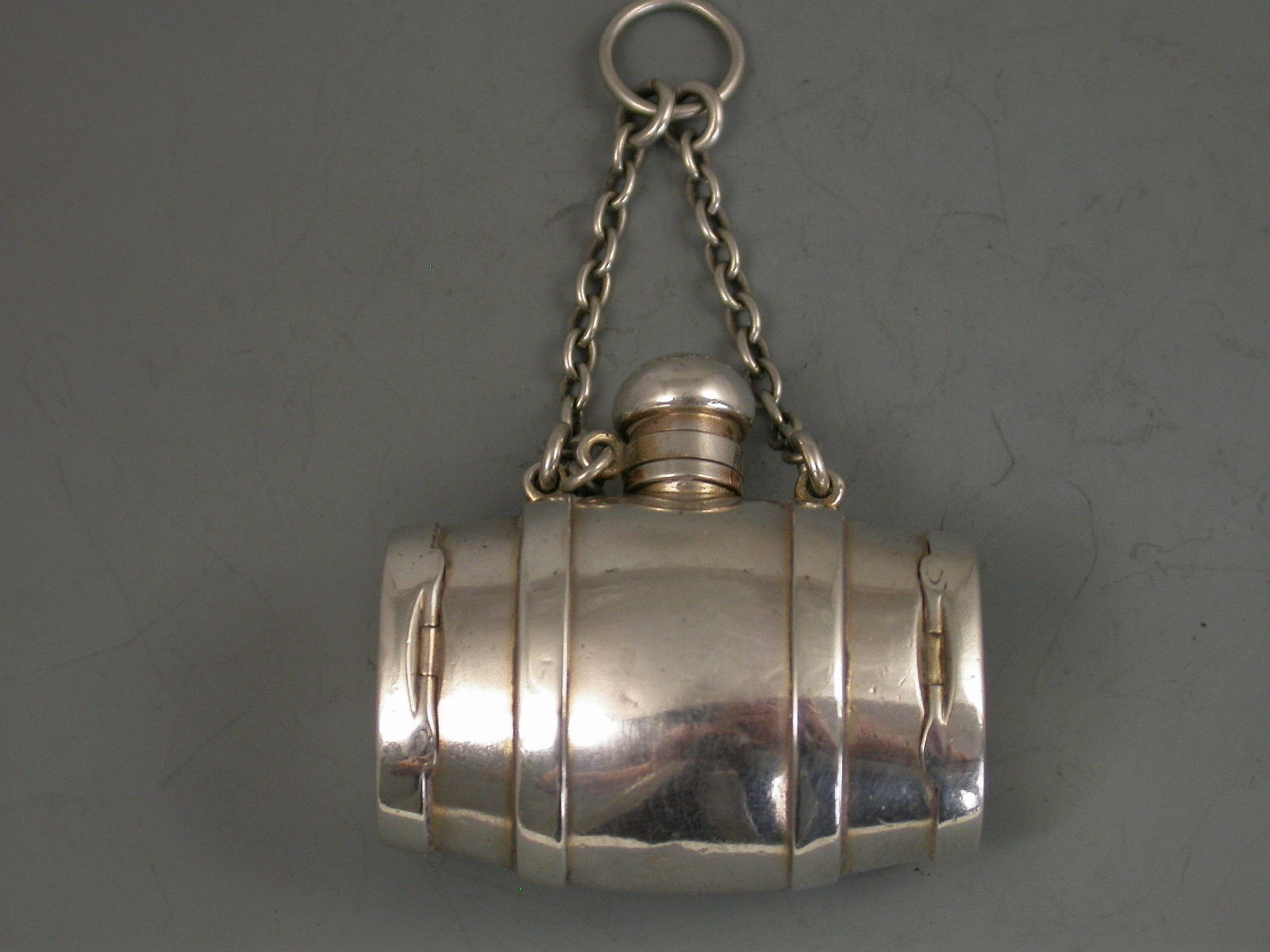 Victorian Novelty Silver Costrel Scent Bottle / Vinaigrette / Pill Box