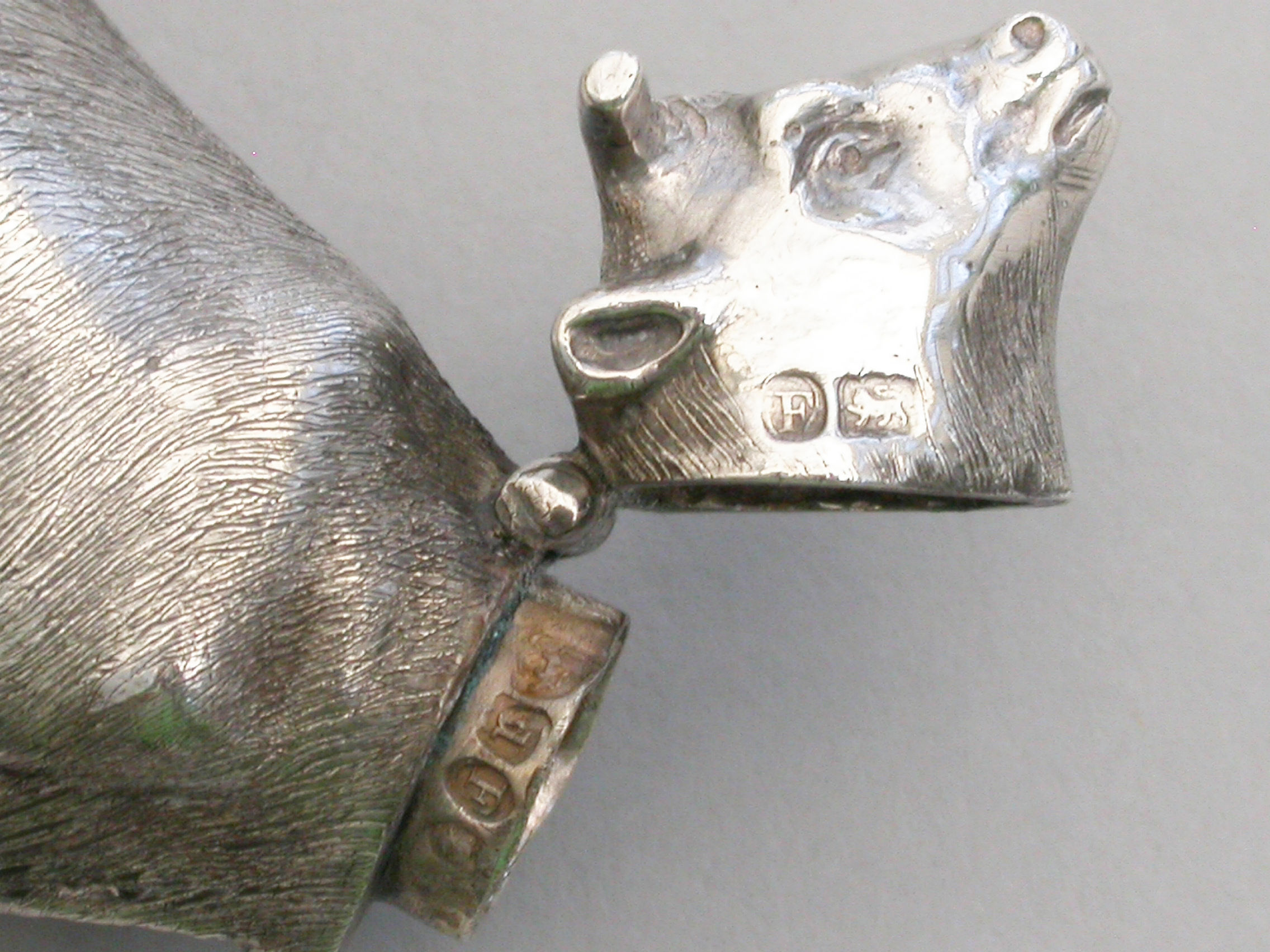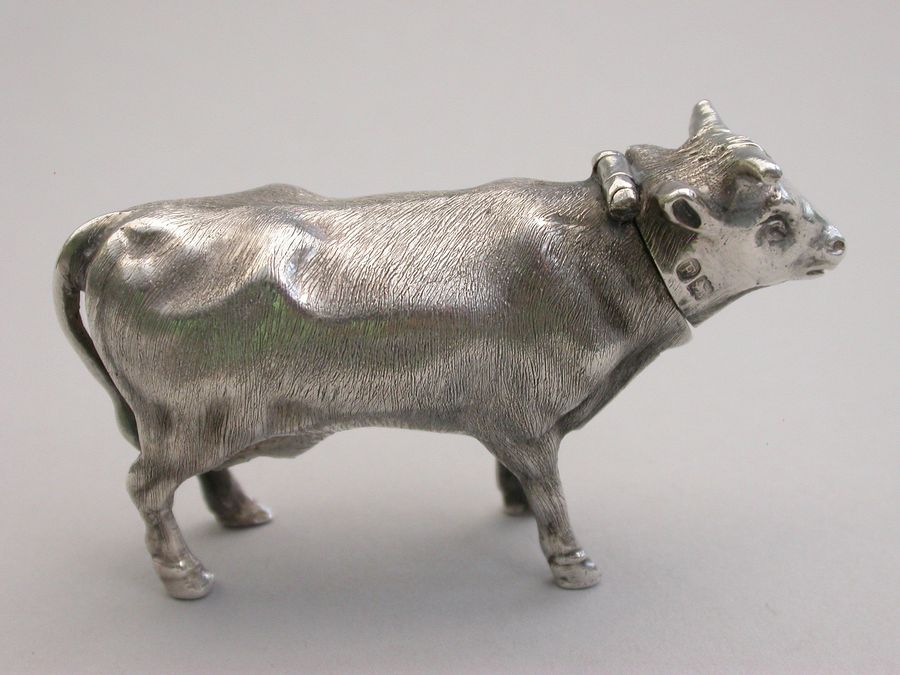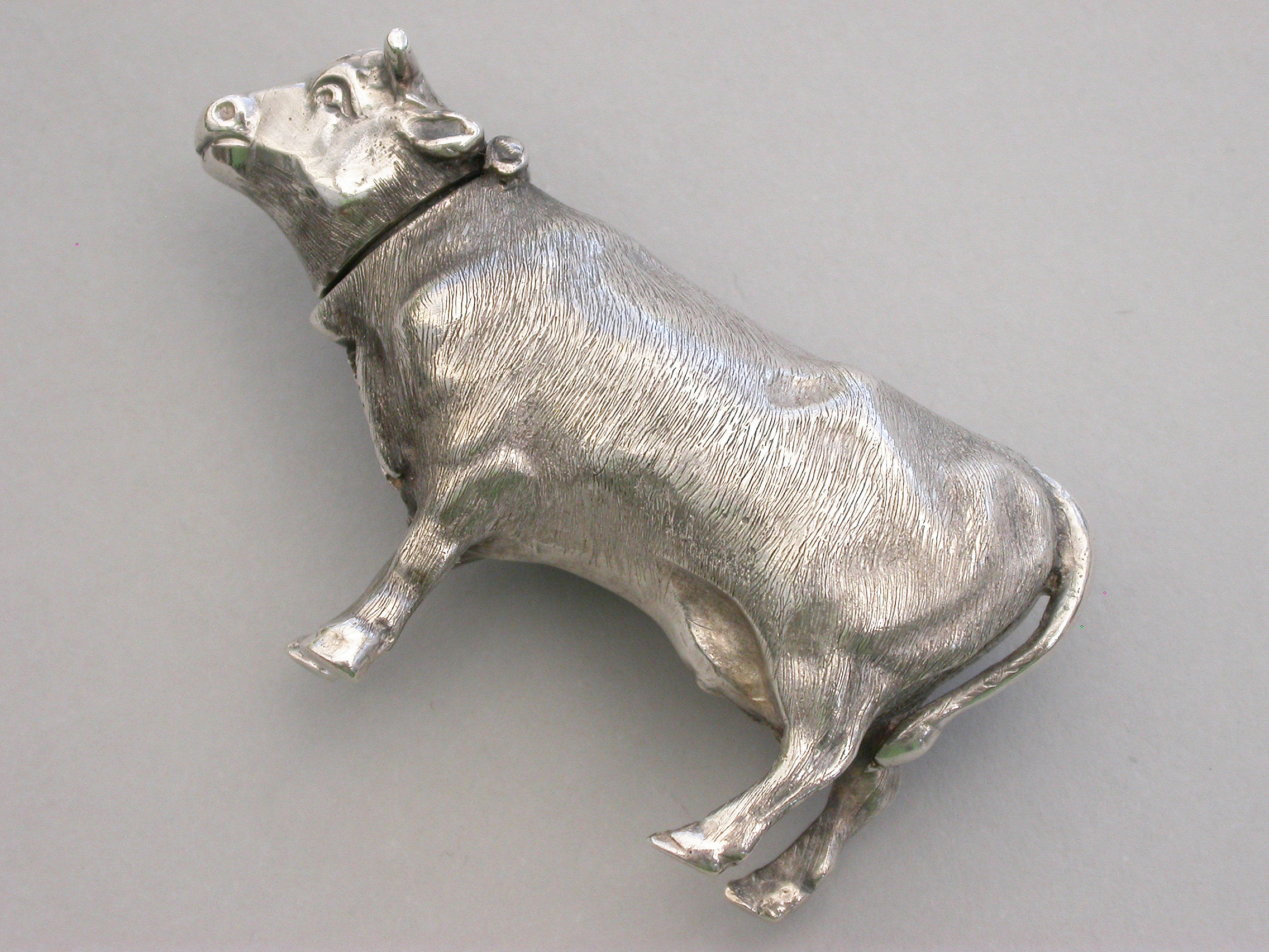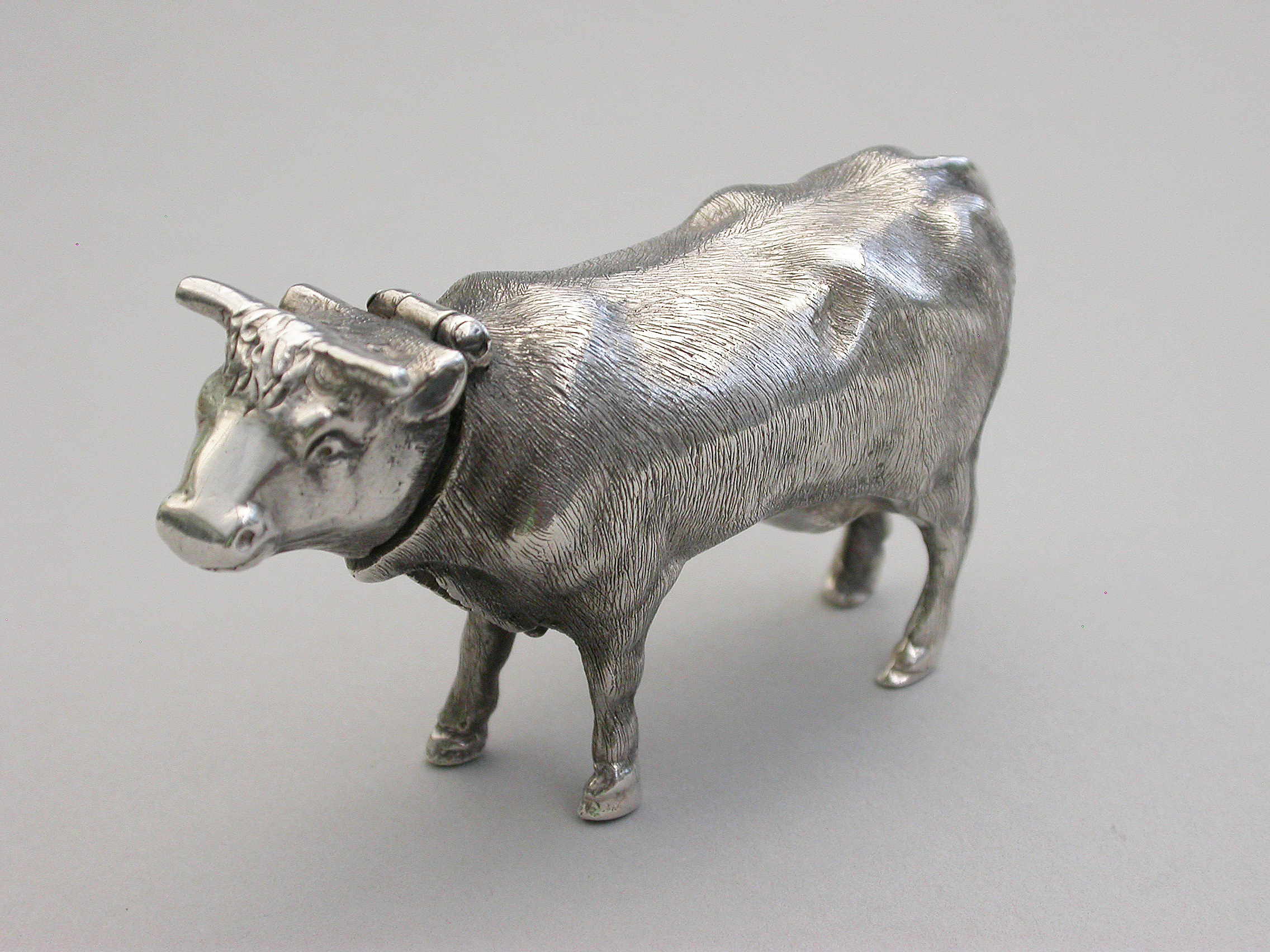 A rare Victorian novelty silver Vesta Case made in the form of a standing Cow, with hinged lid and striker to chest.