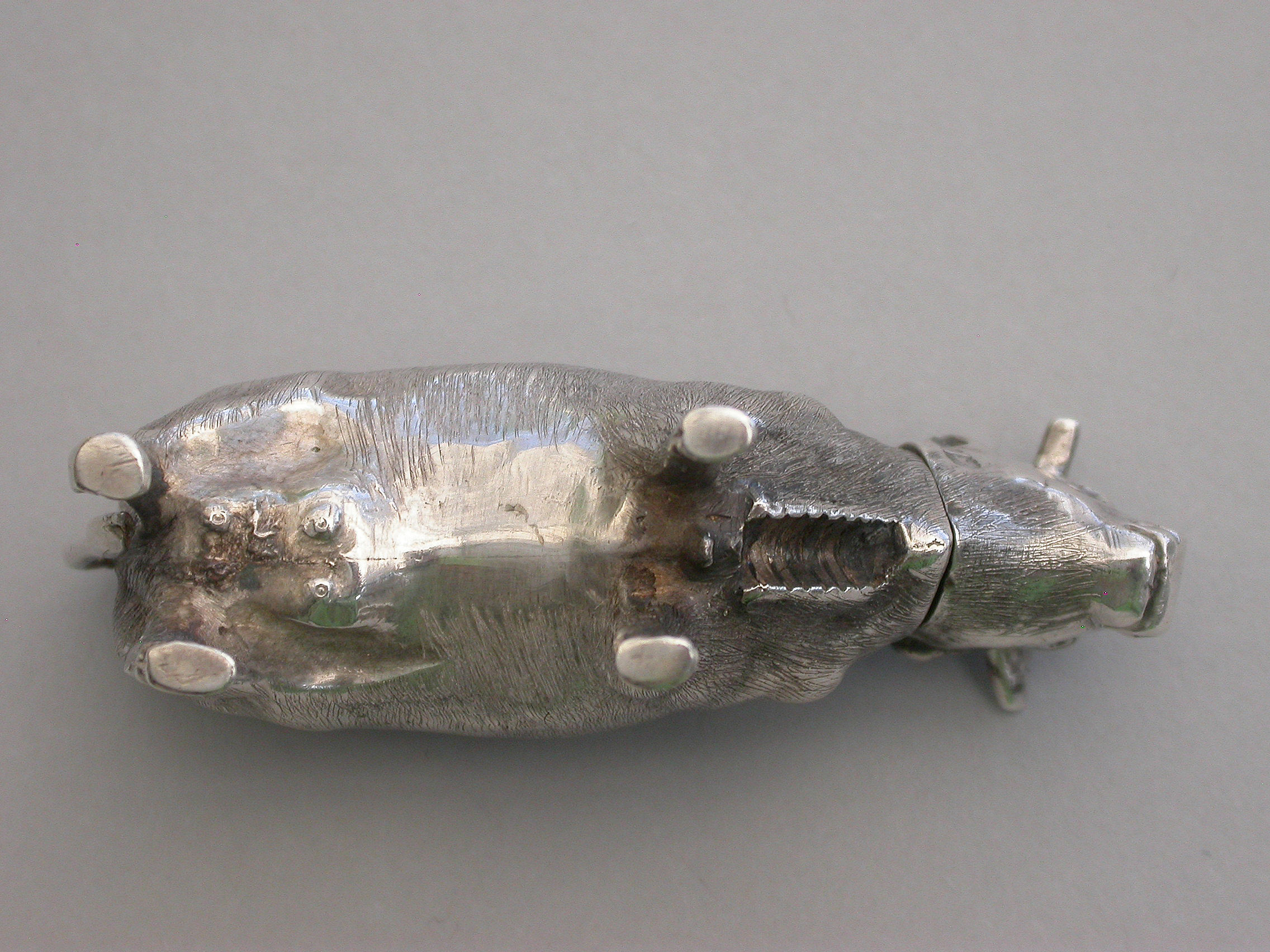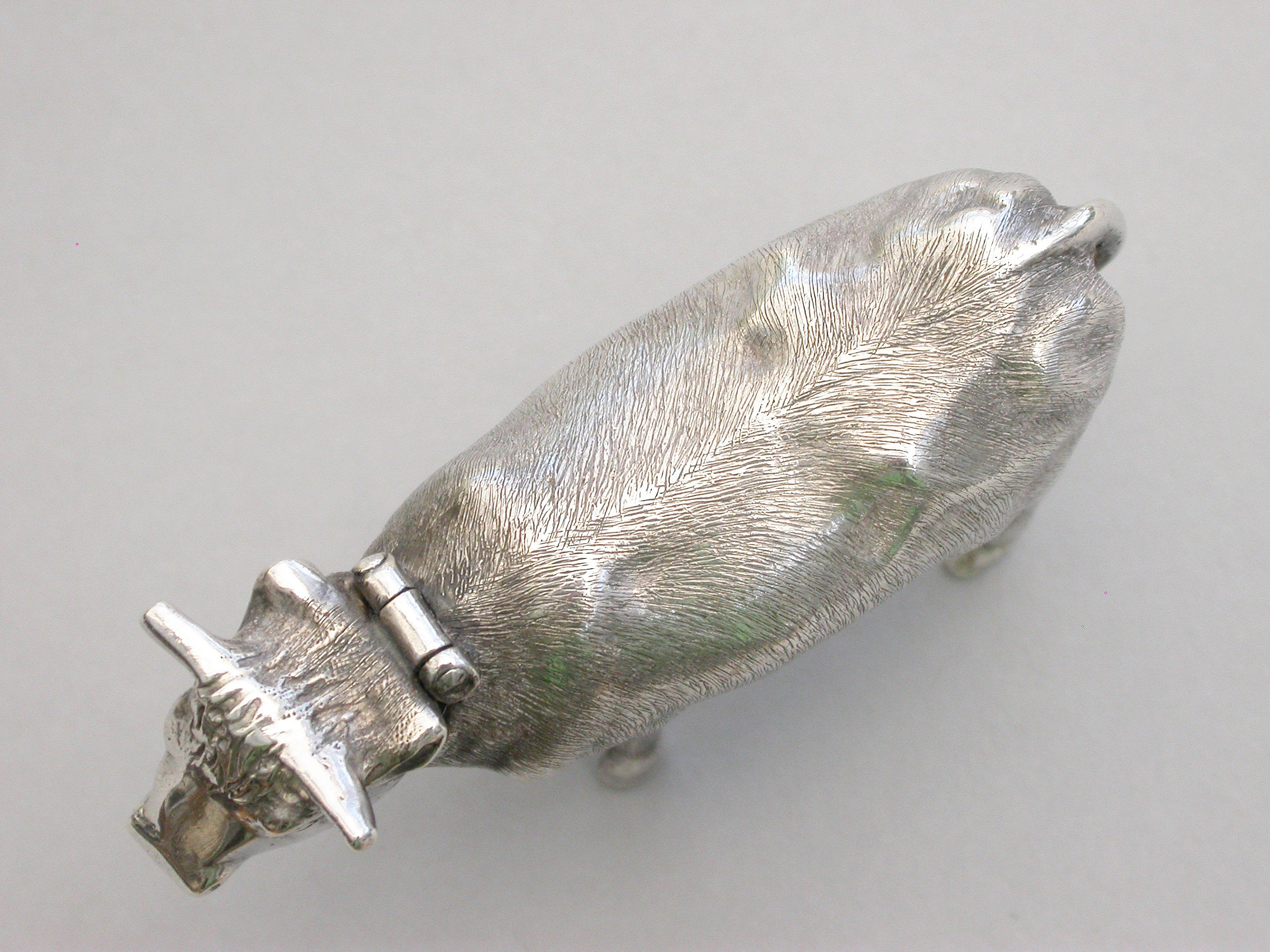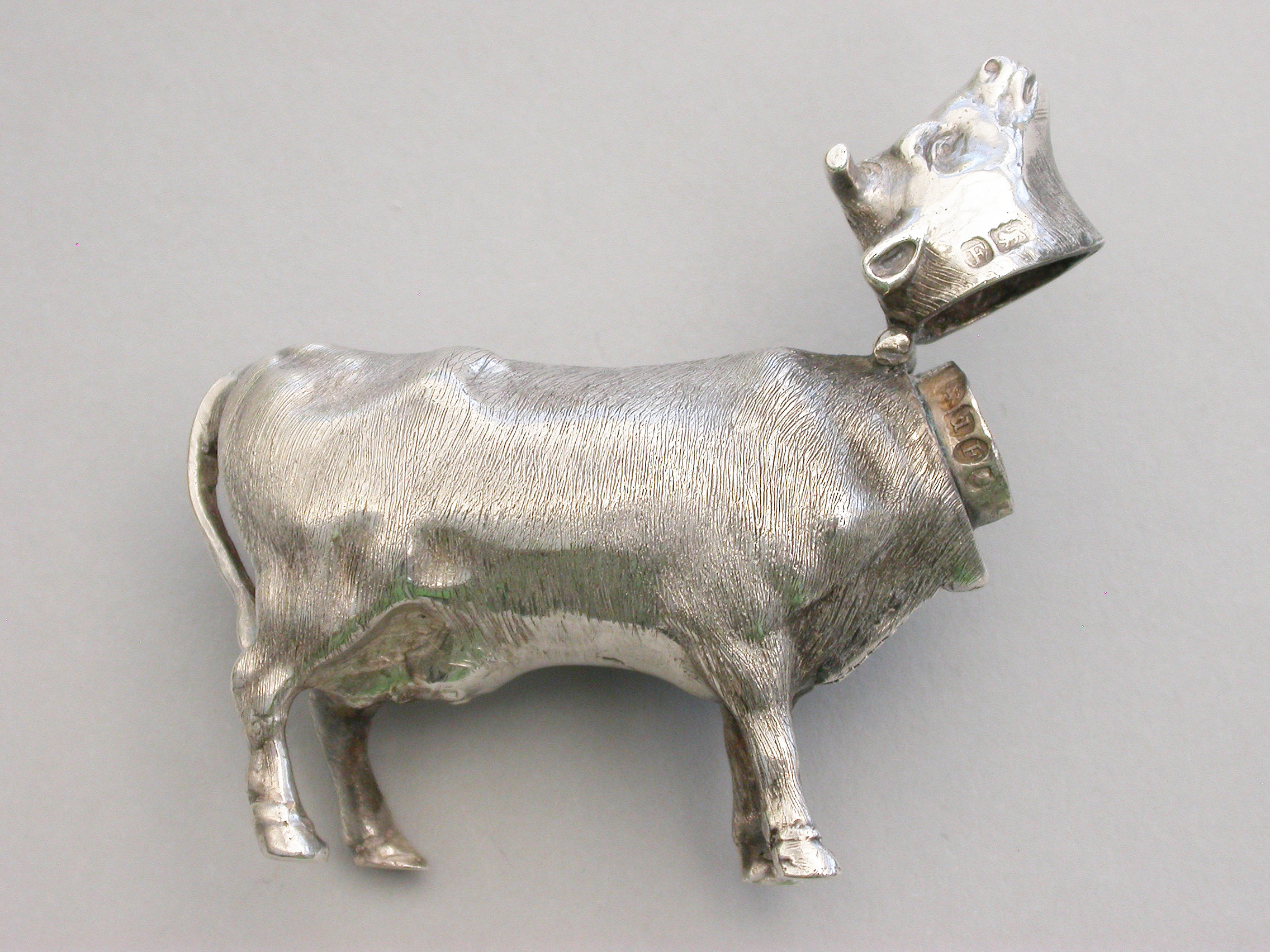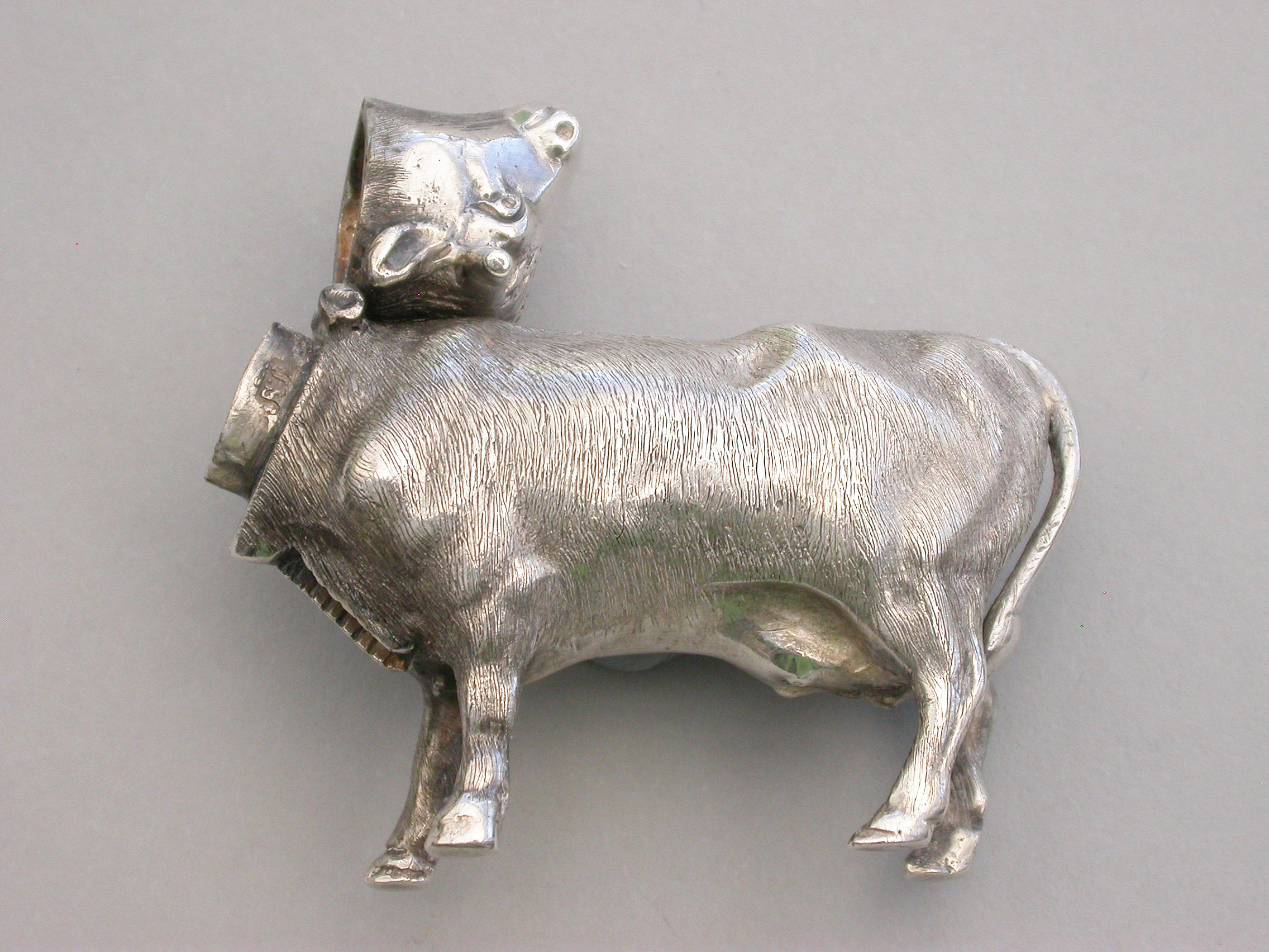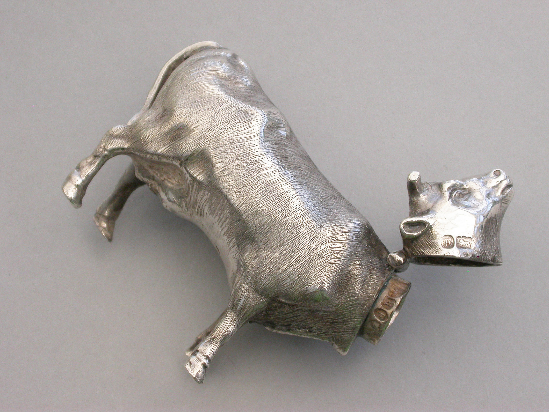A rare Victorian novelty silver Vesta Case made in the form of a standing Cow, with hinged lid and striker to chest.