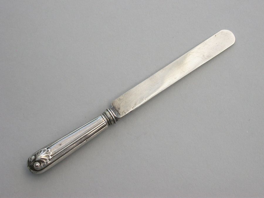 A rare Victorian novelty silver telescopic Propelling Pencil, made in the form of a Dessert Knife with Old English thread and shell pattern handle.