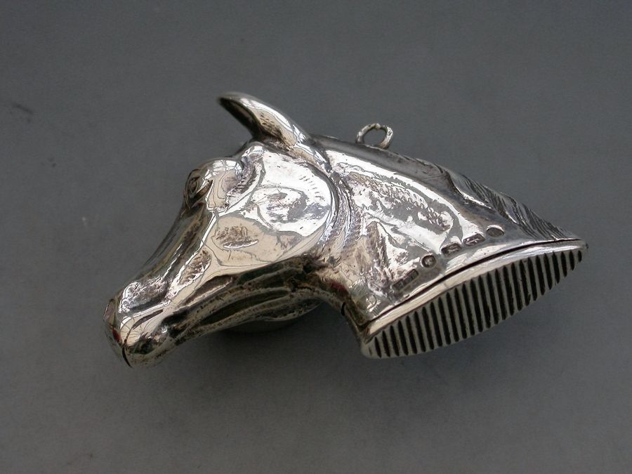 Victorian Novelty Silver Figural Horses Head Vesta Case