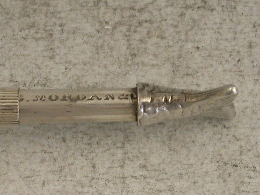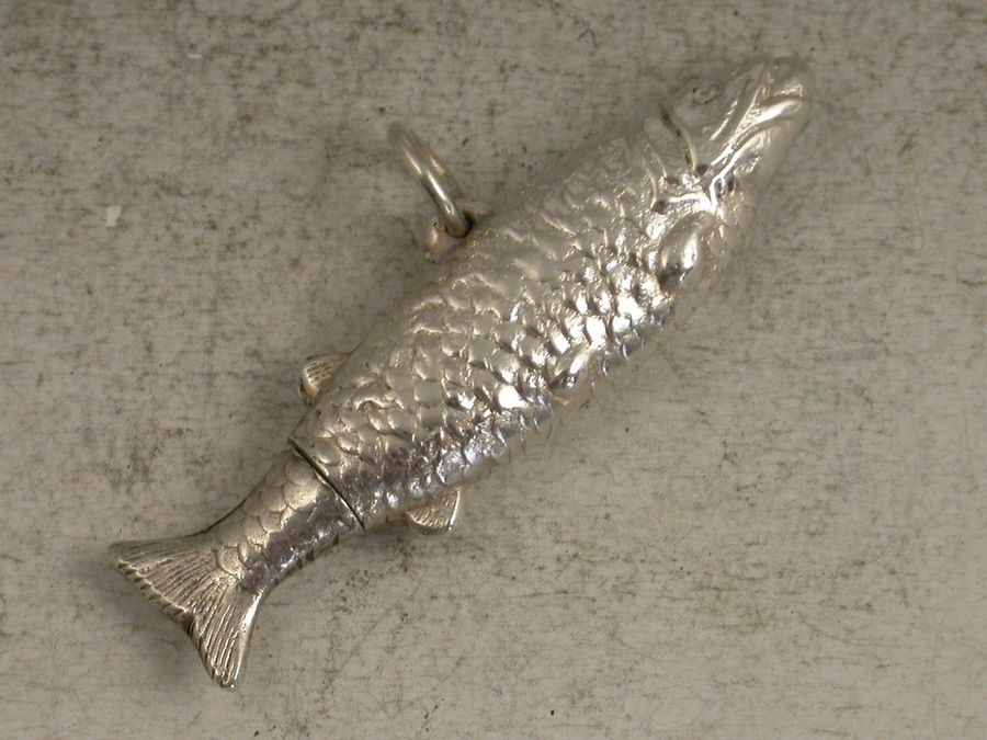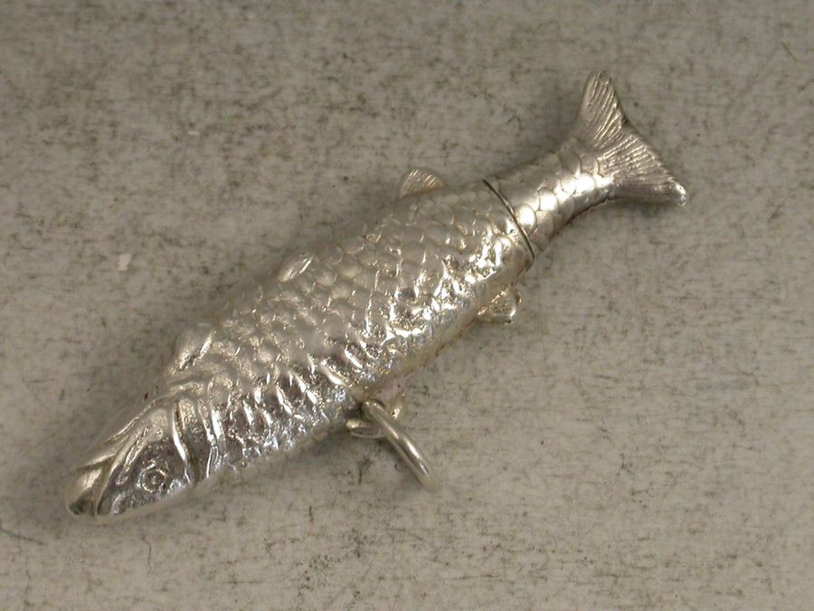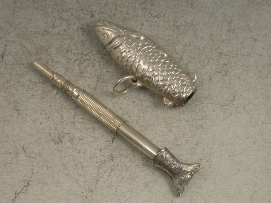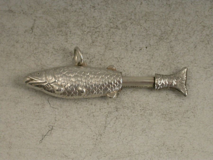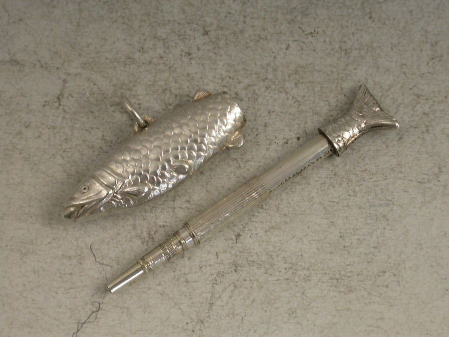 A rare Victorian novelty silver Propelling Pencil made in the form of Salmon, the pencil pulling out from the tail and automatically extending.