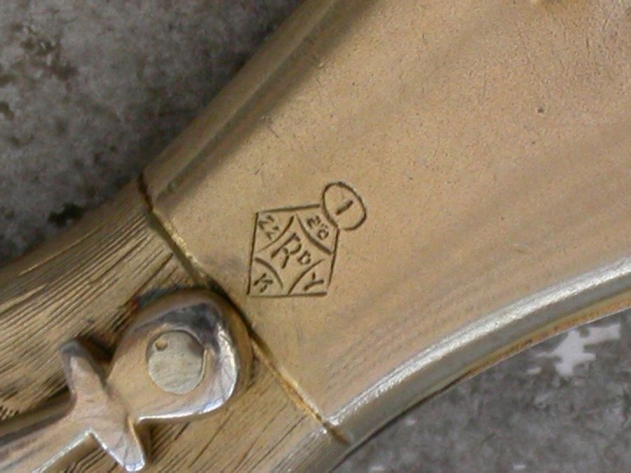By Hubert Thornhill, London, 1890 and inscribed W Thornhill & Co along with a registered design lozenge for 26 November 1879.