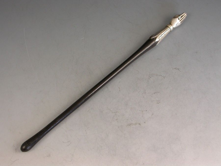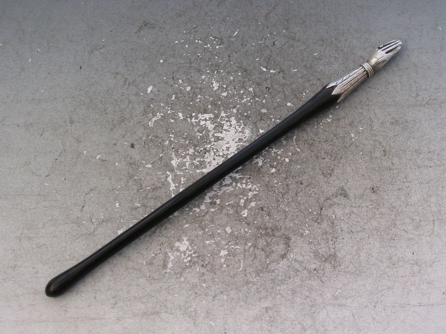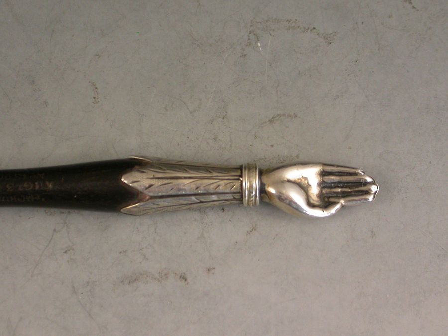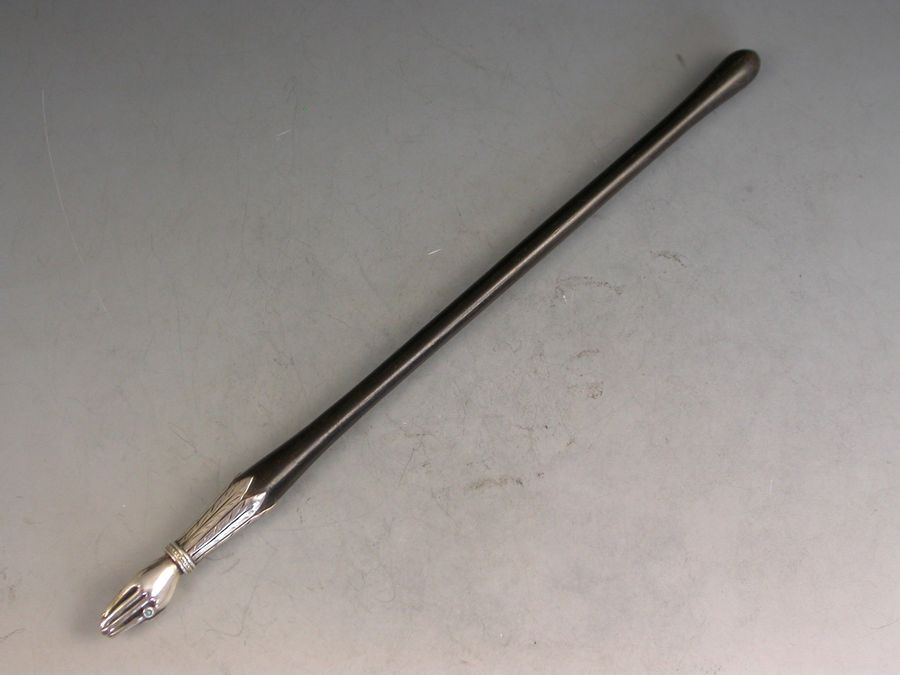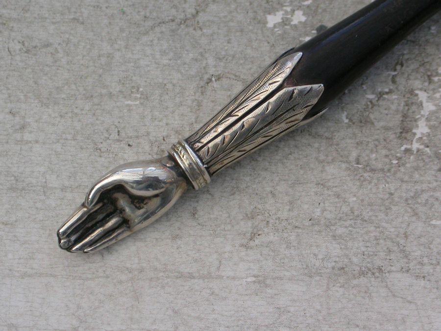 Victorian Novelty Silver Hand Quill Holder Ebony Shaft