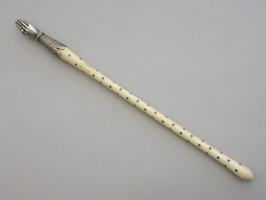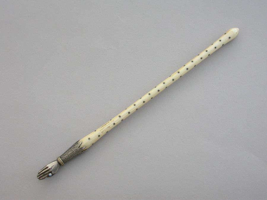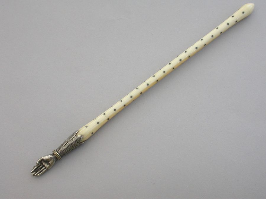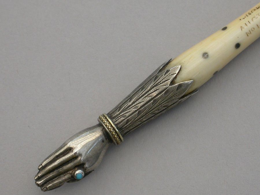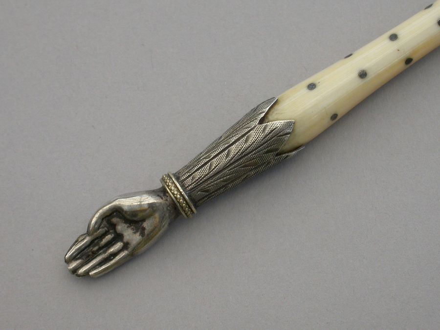 Victorian Novelty Silver Hand Quill Holder - Ivory & Silver Pique Handle