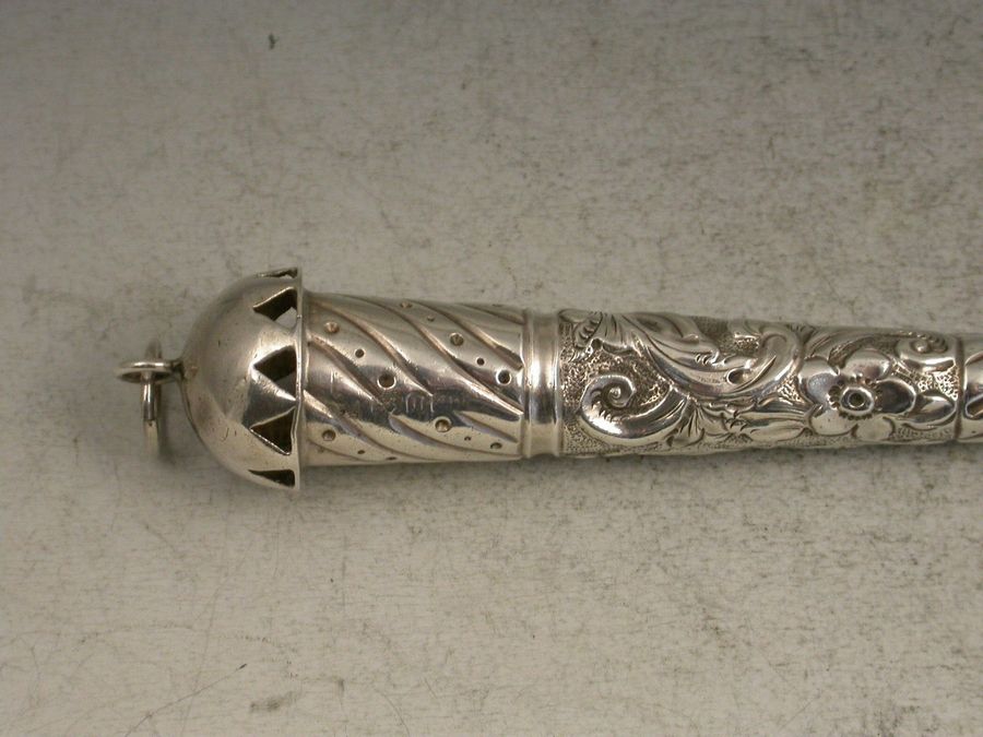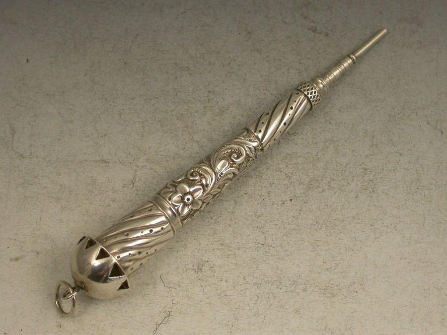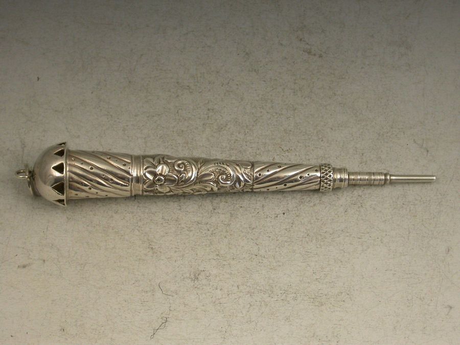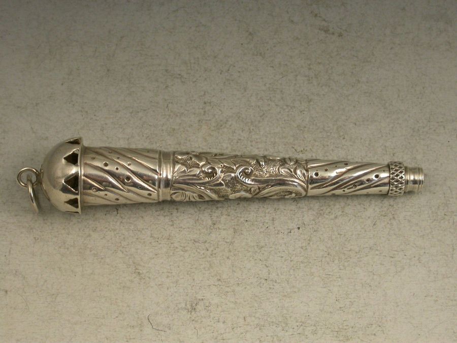A Victorian novelty silver Propelling Pencil in the form of a stylised Lantern with embossed decoration. Twist action to propel.