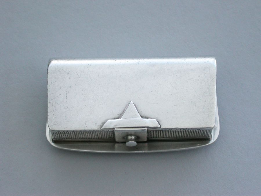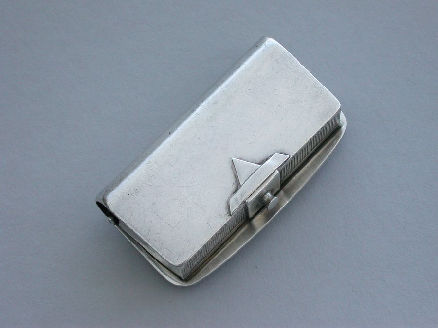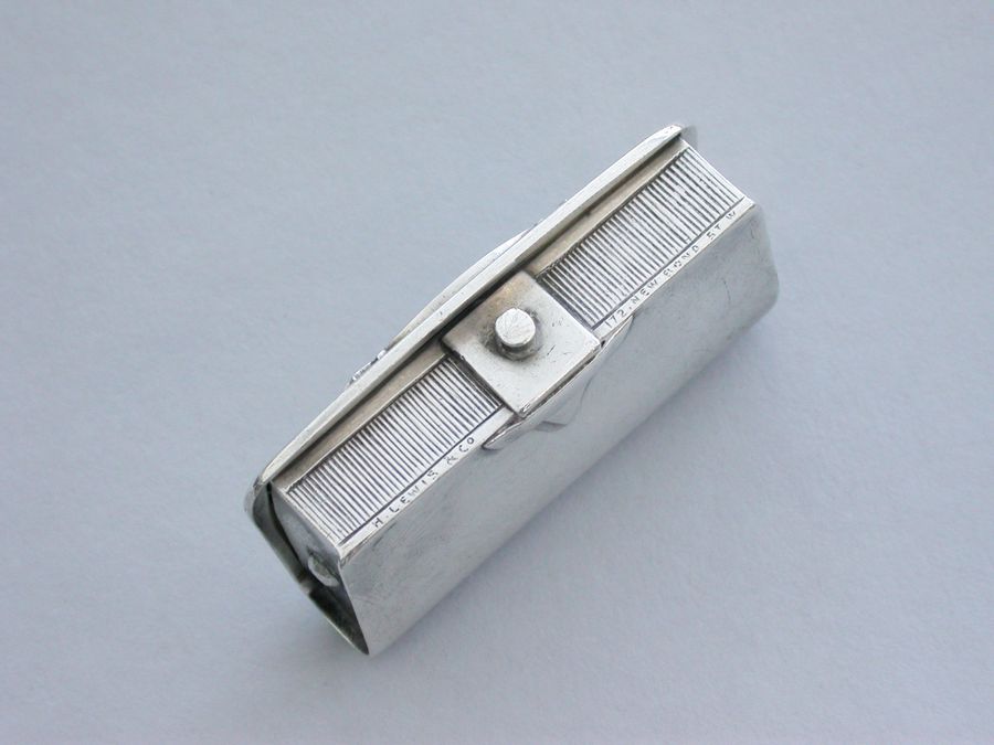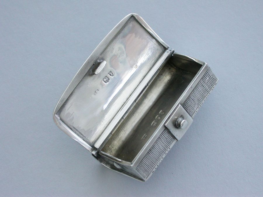 Victorian Novelty Silver 'military leather cross-belt pouch' Vesta Case