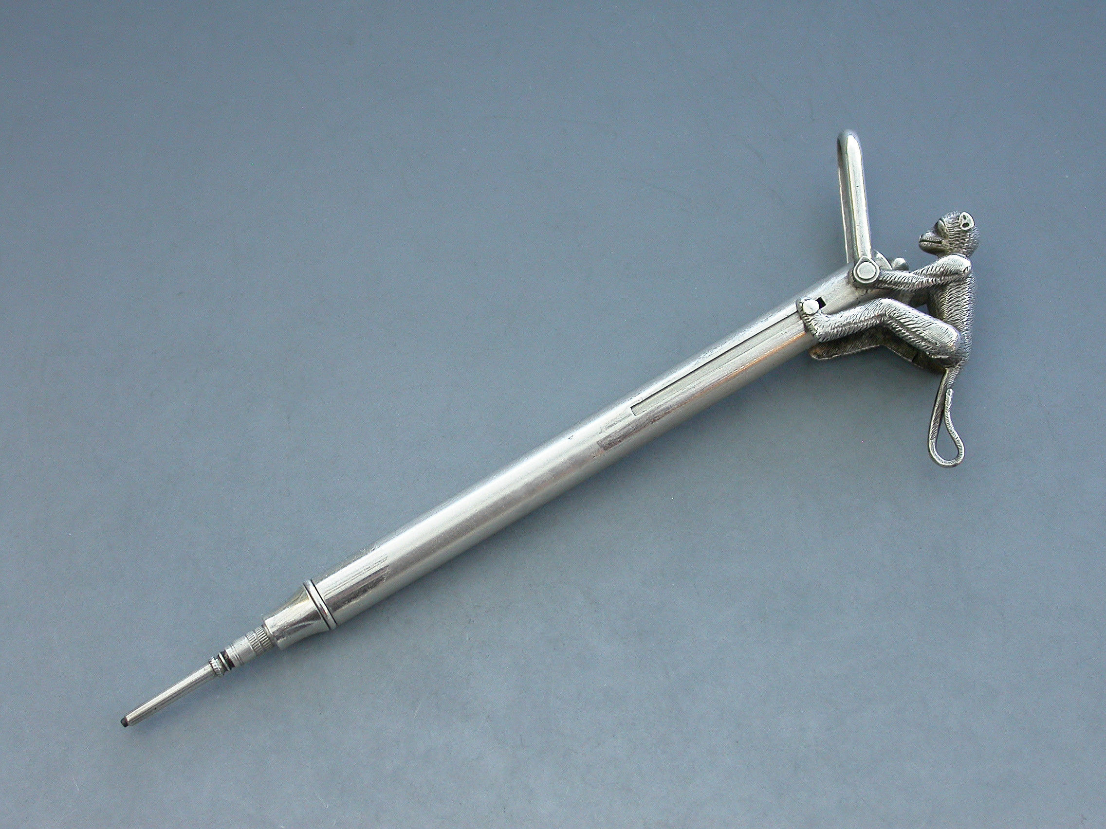 Victorian Novelty Silver Monkey on a stick Propelling Pencil