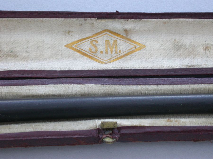 In good condition with no damage or repair and in full working order, one tiny hair crack to the ebony shaft.