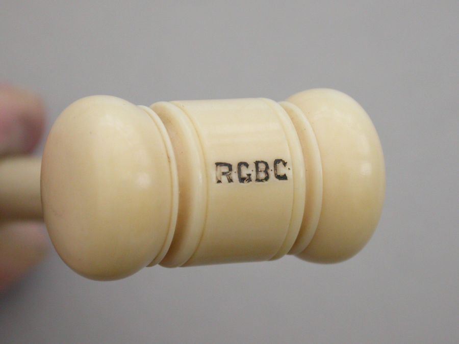 The head of the gavel also stamped with the initials - 'R.G.B.C', possibly the owners initials or those of a club ?