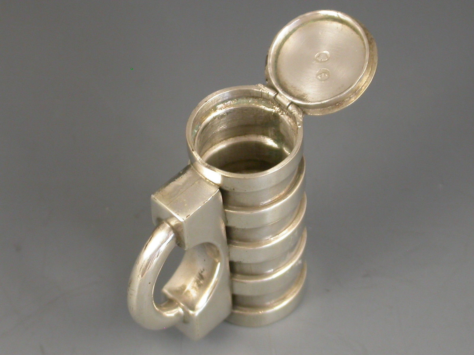 A rare Victorian novelty silver Vesta Case made in the form of a Padlock with cylindrical ribbed barrel, the striker to the top of the flat hinged lid.