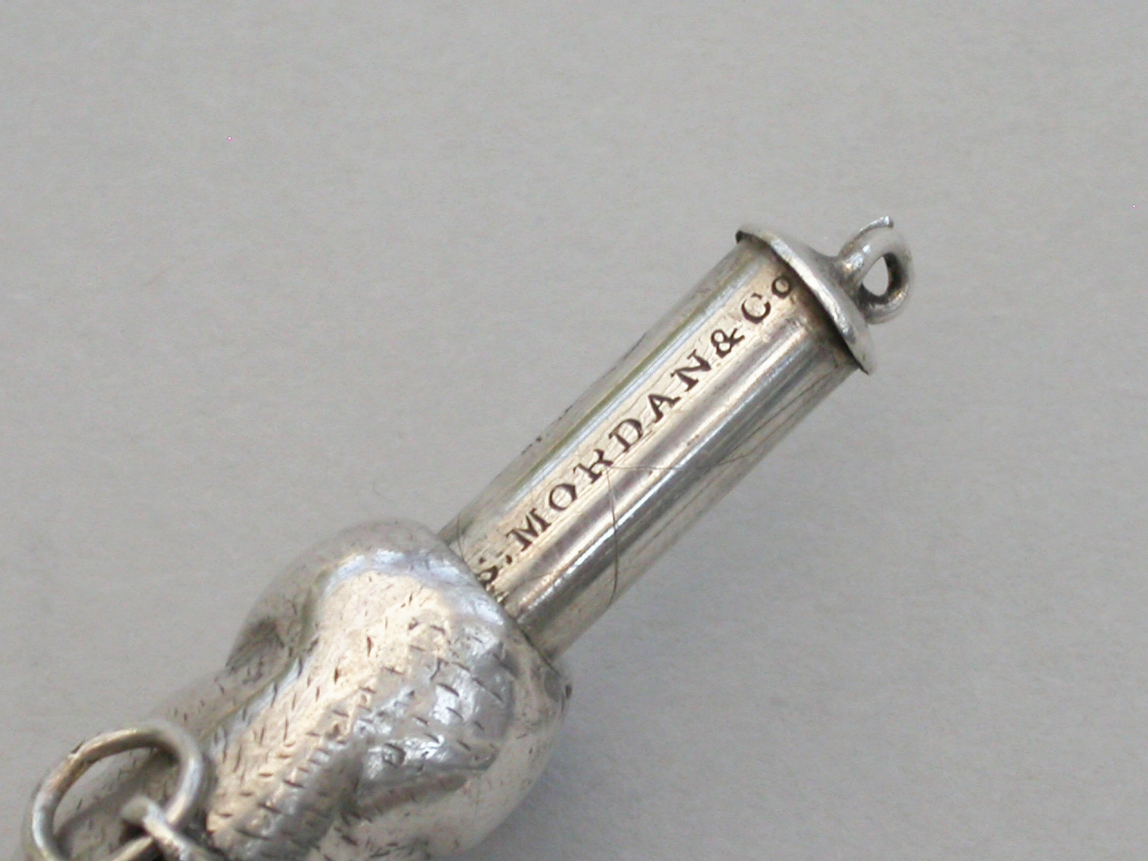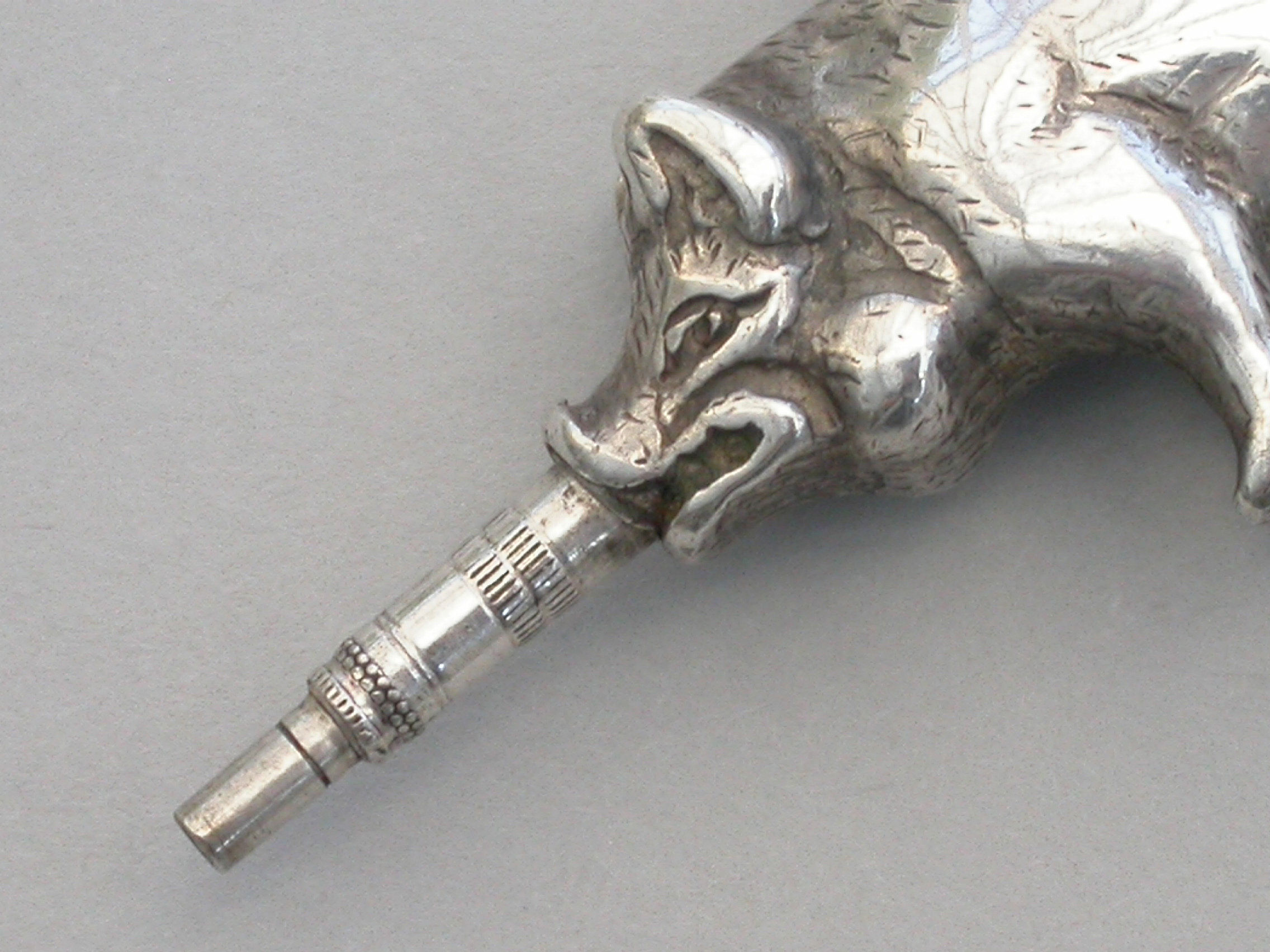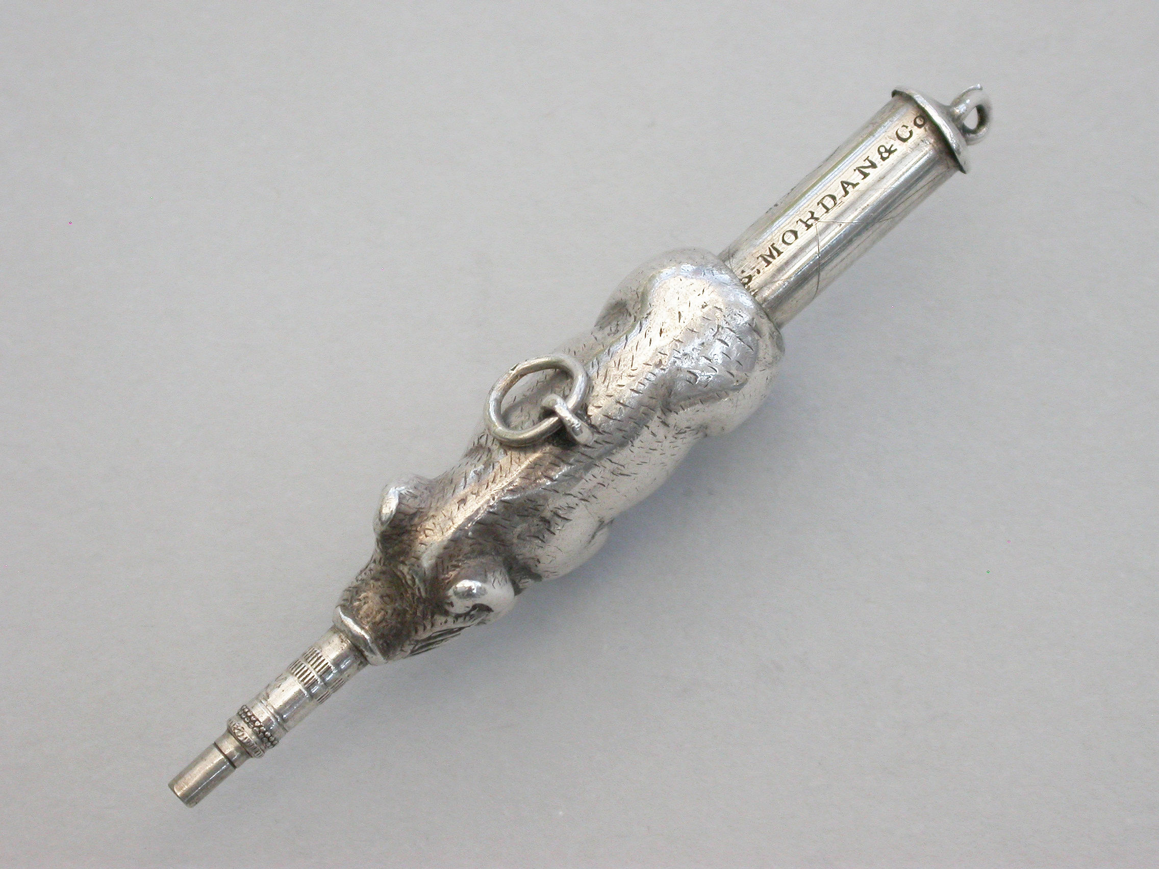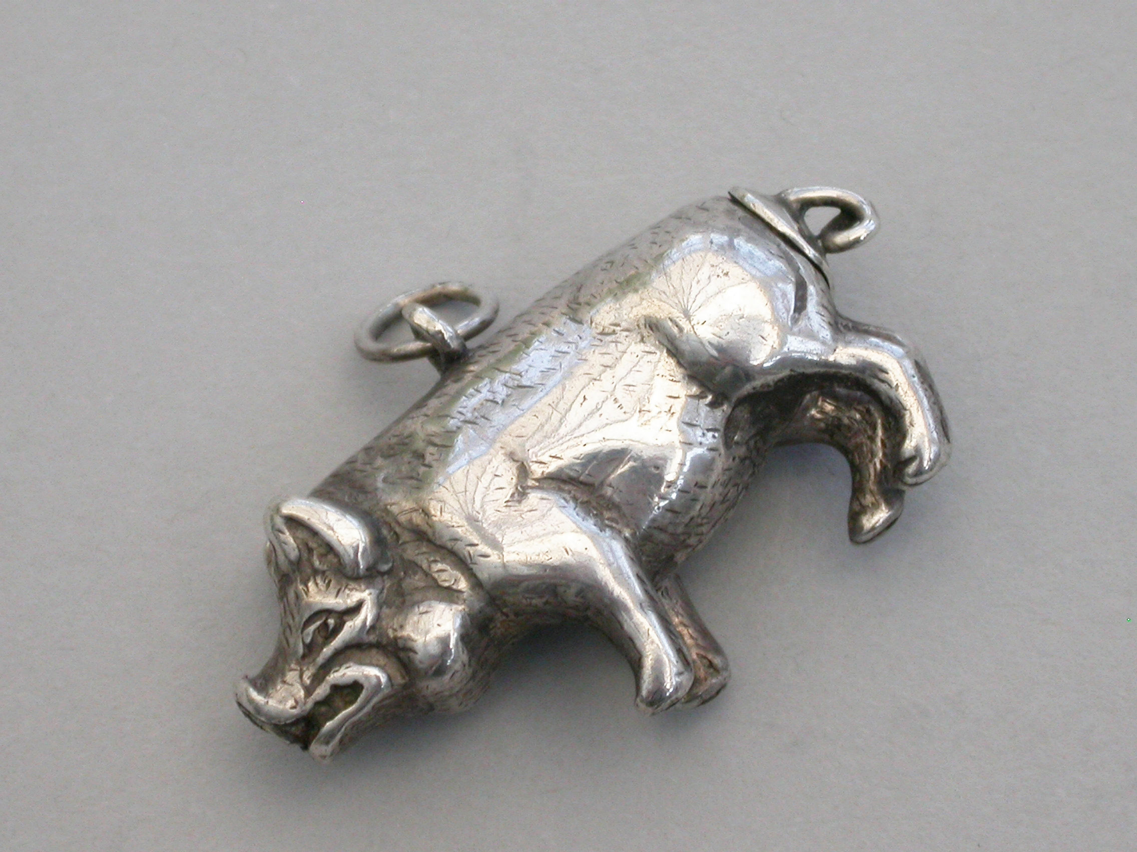 A rare Victorian novelty silver Propelling Pencil, made in the form of a Pig, with attached suspension ring.