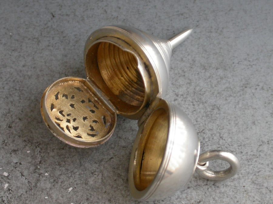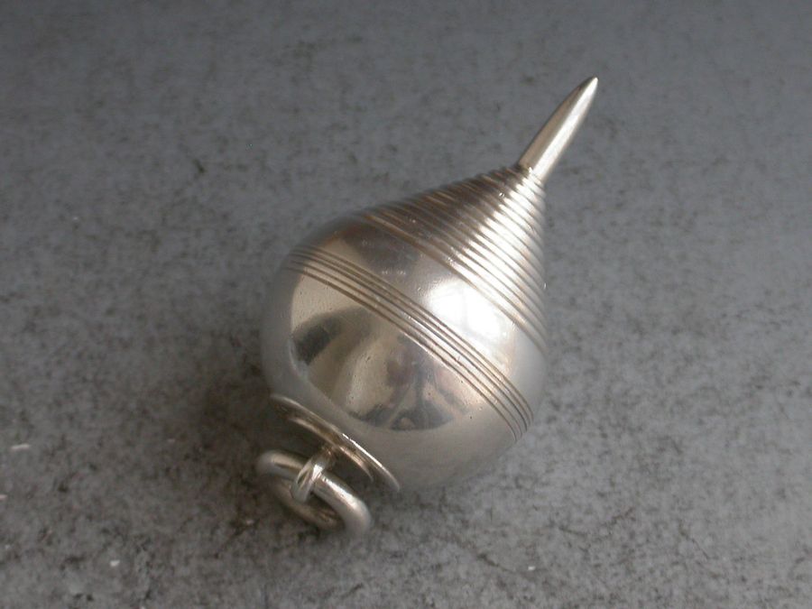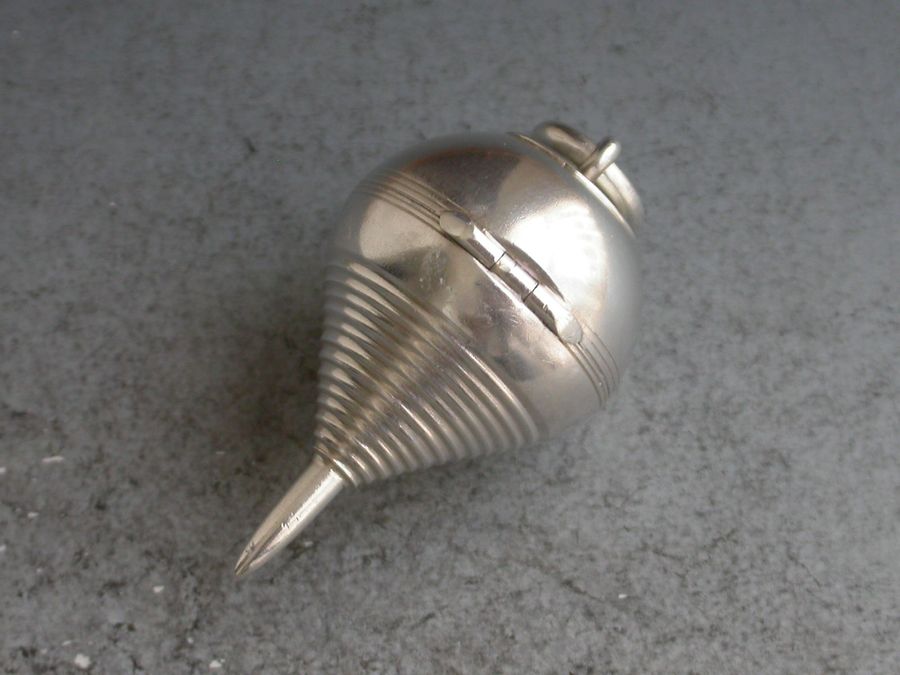 Victorian Novelty Silver Plumb Bob / Peg Spinning Top Vinaigrette