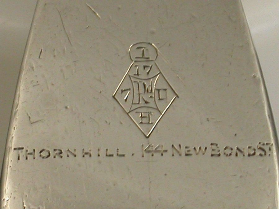 By E H Stockwell, London, 1876. Also stamped with a diamond registration mark for the 17th April 1874 and engraved with the retailers name - Thornhill, 144 New Bond Street.