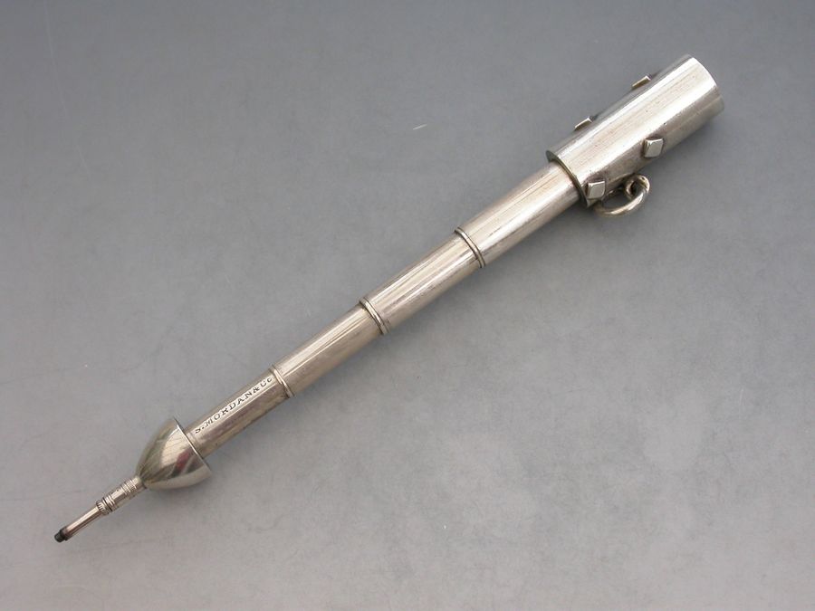 Victorian Novelty Silver Rifled Muzzle Loading Shell Propelling Pencil