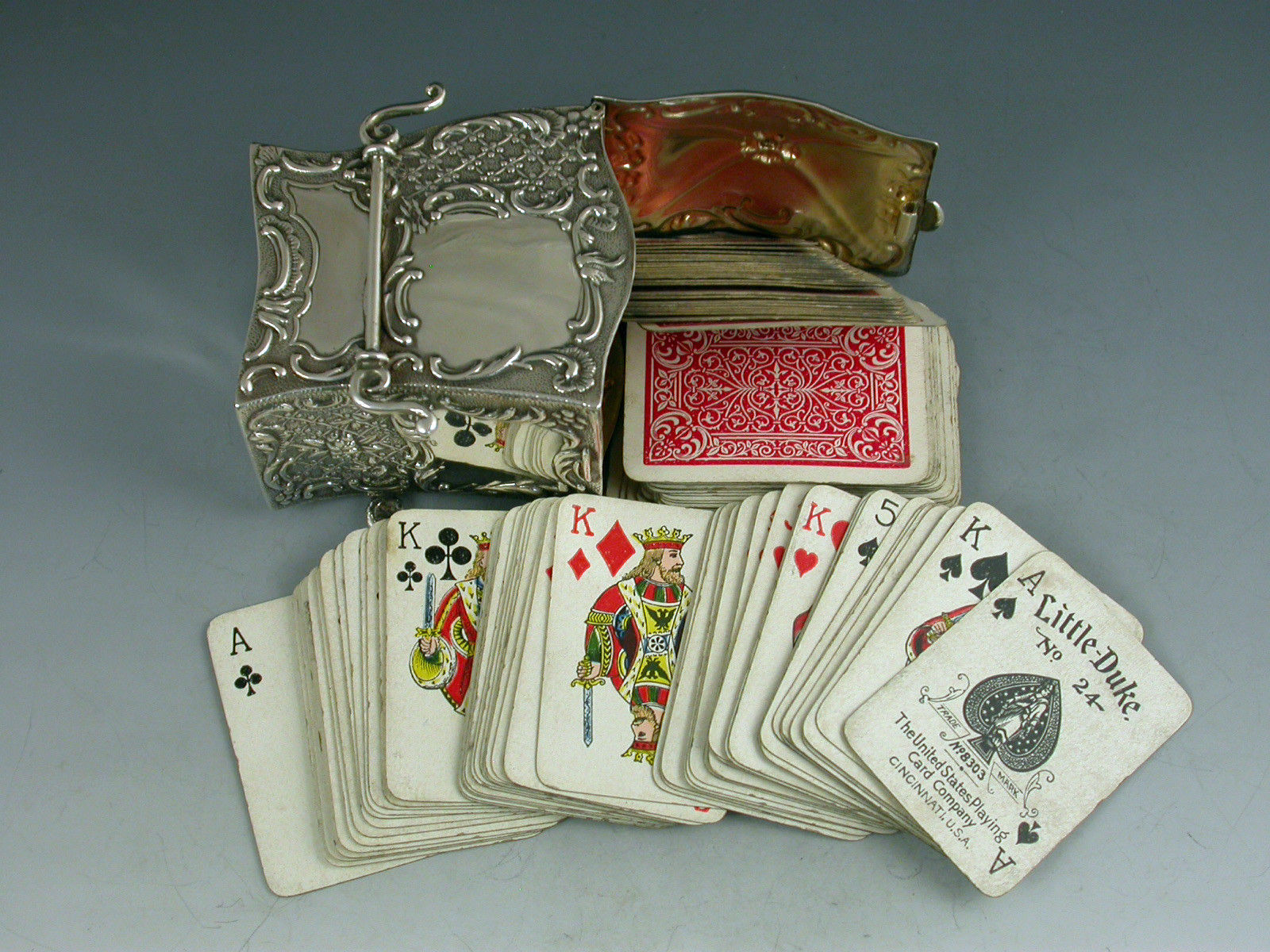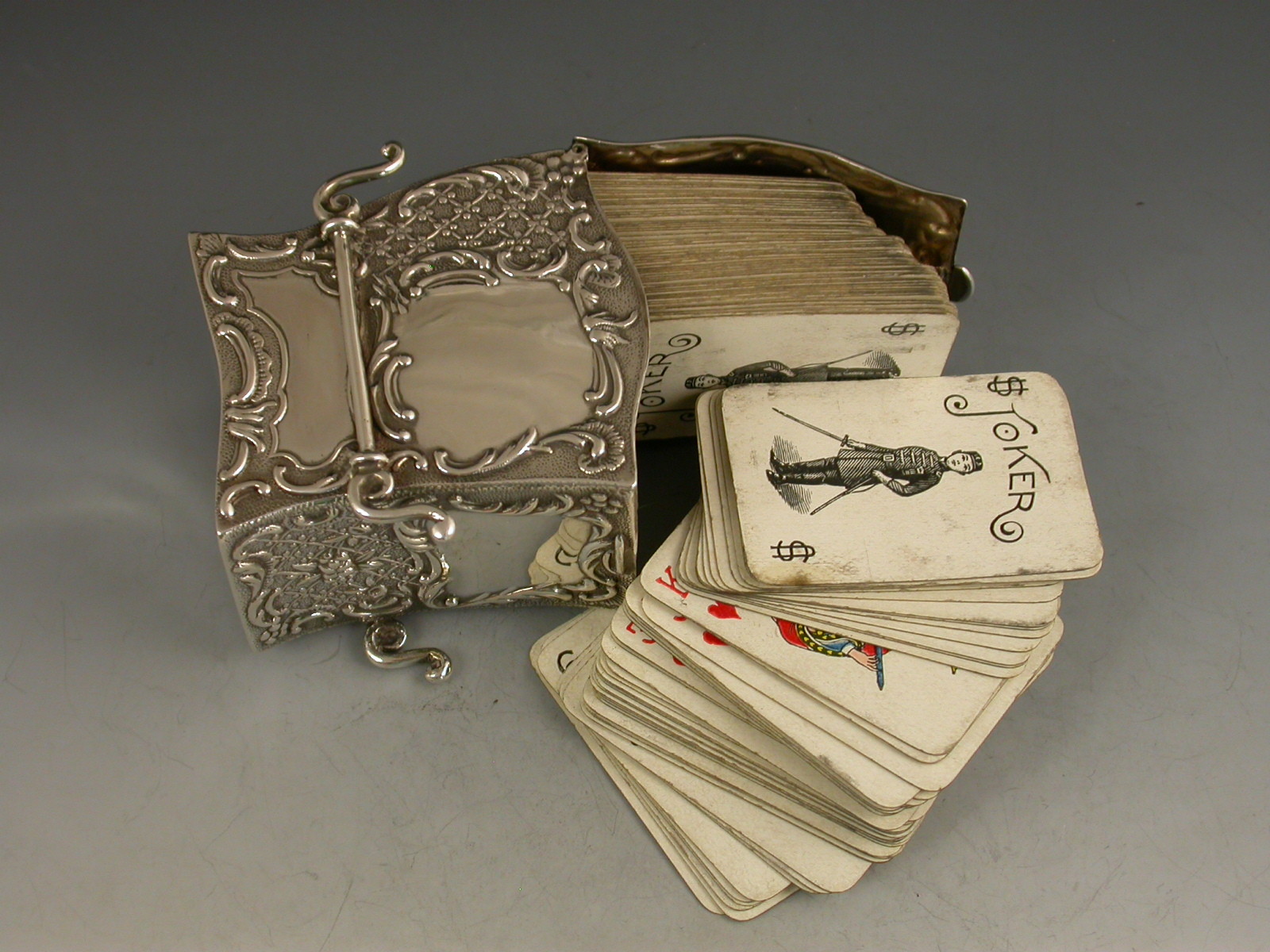 Victorian Novelty Silver Sedan Chair Twin Pack Playing Card Box