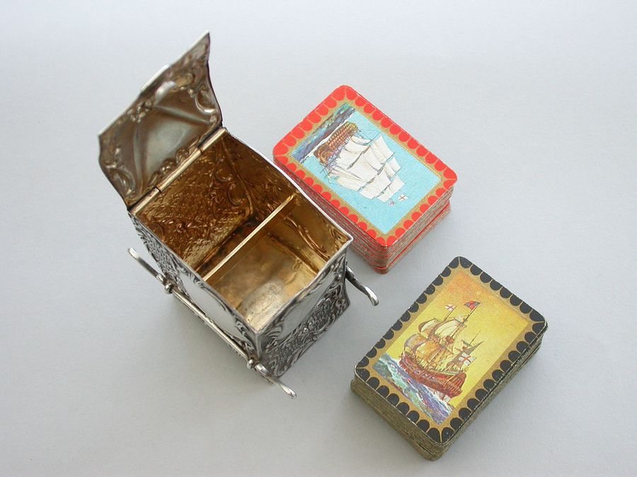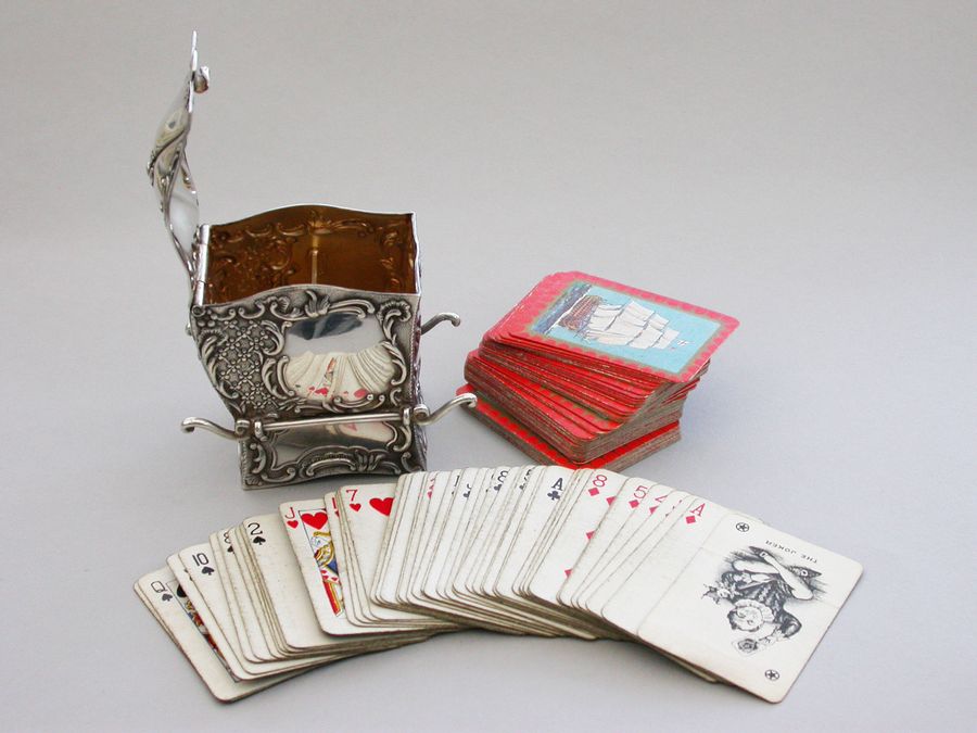 Victorian Novelty Silver Sedan Chair Twin Pack Playing Card Box