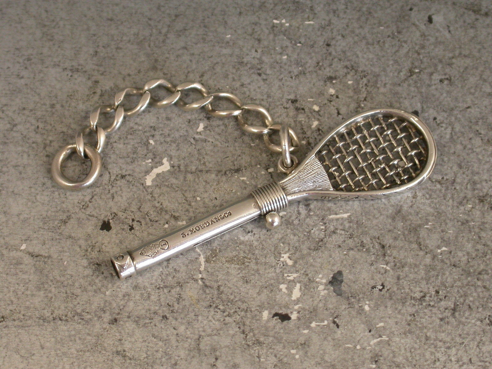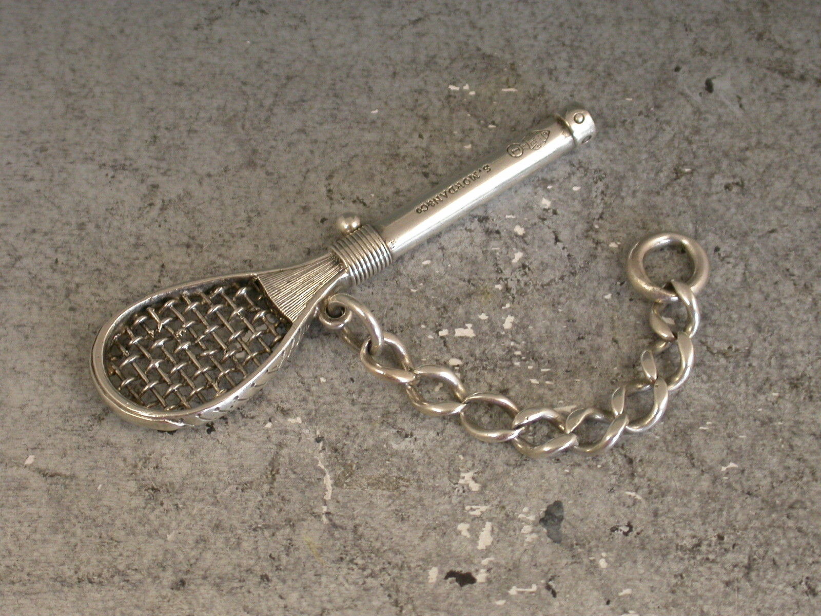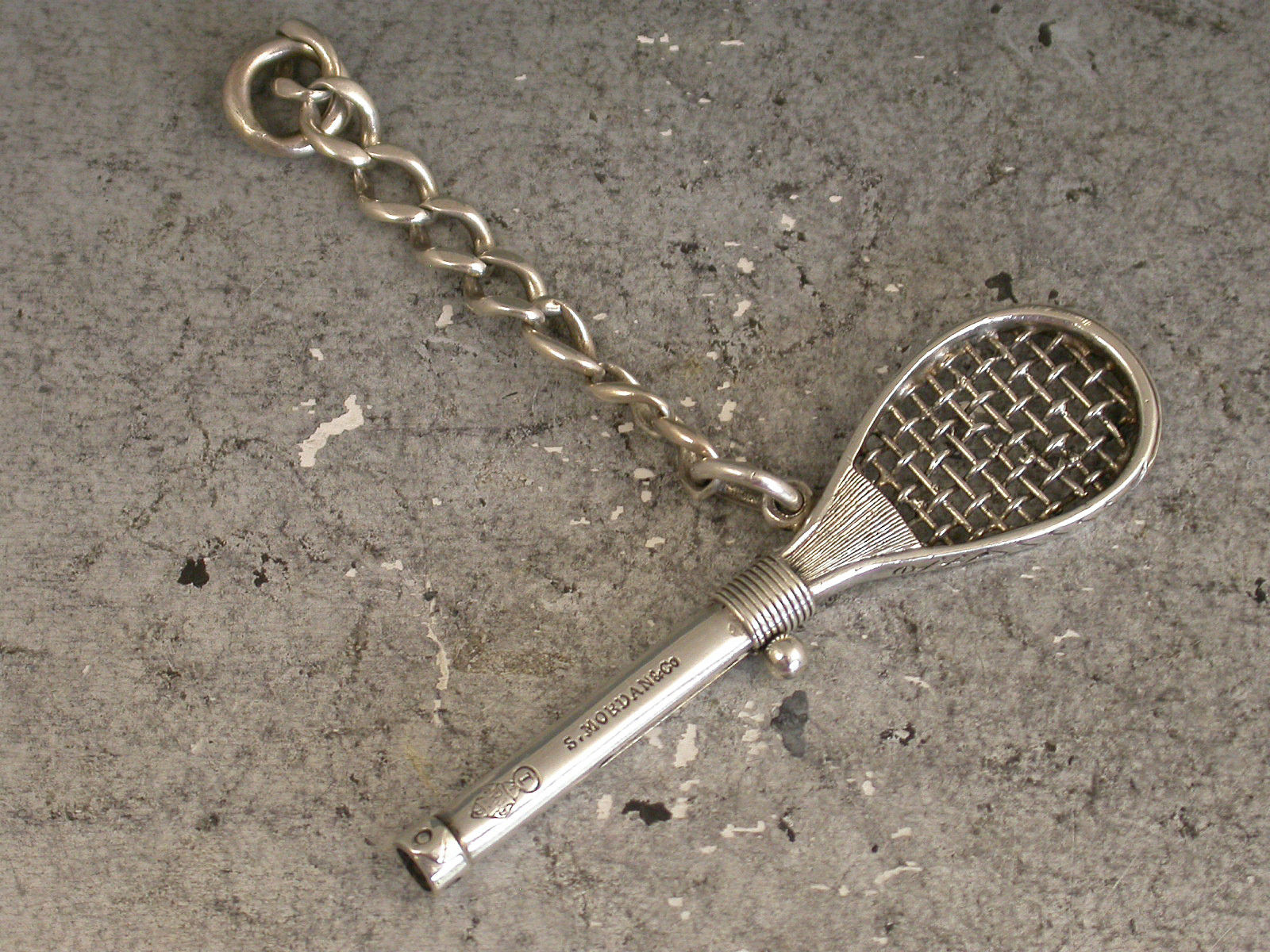 A rare Victorian novelty silver Propelling Pencil made in the form of an early wooden Tennis or Sphairistike Racket and of unusually small size.