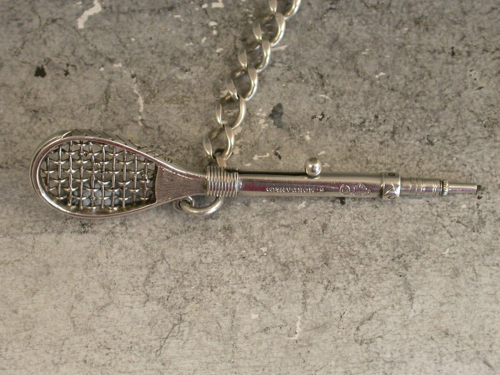 Victorian Novelty Silver Small Size Tennis / Sphairistike Racket Propelling Pencil