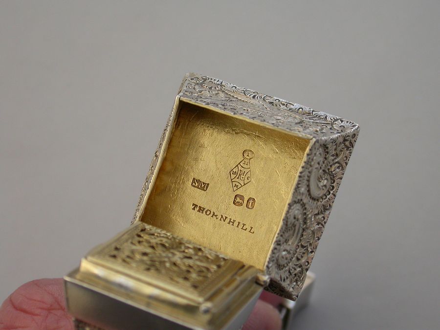 Victorian Novelty Silver Square Horn Shaped Combined Scent Bottle / Vinaigrette