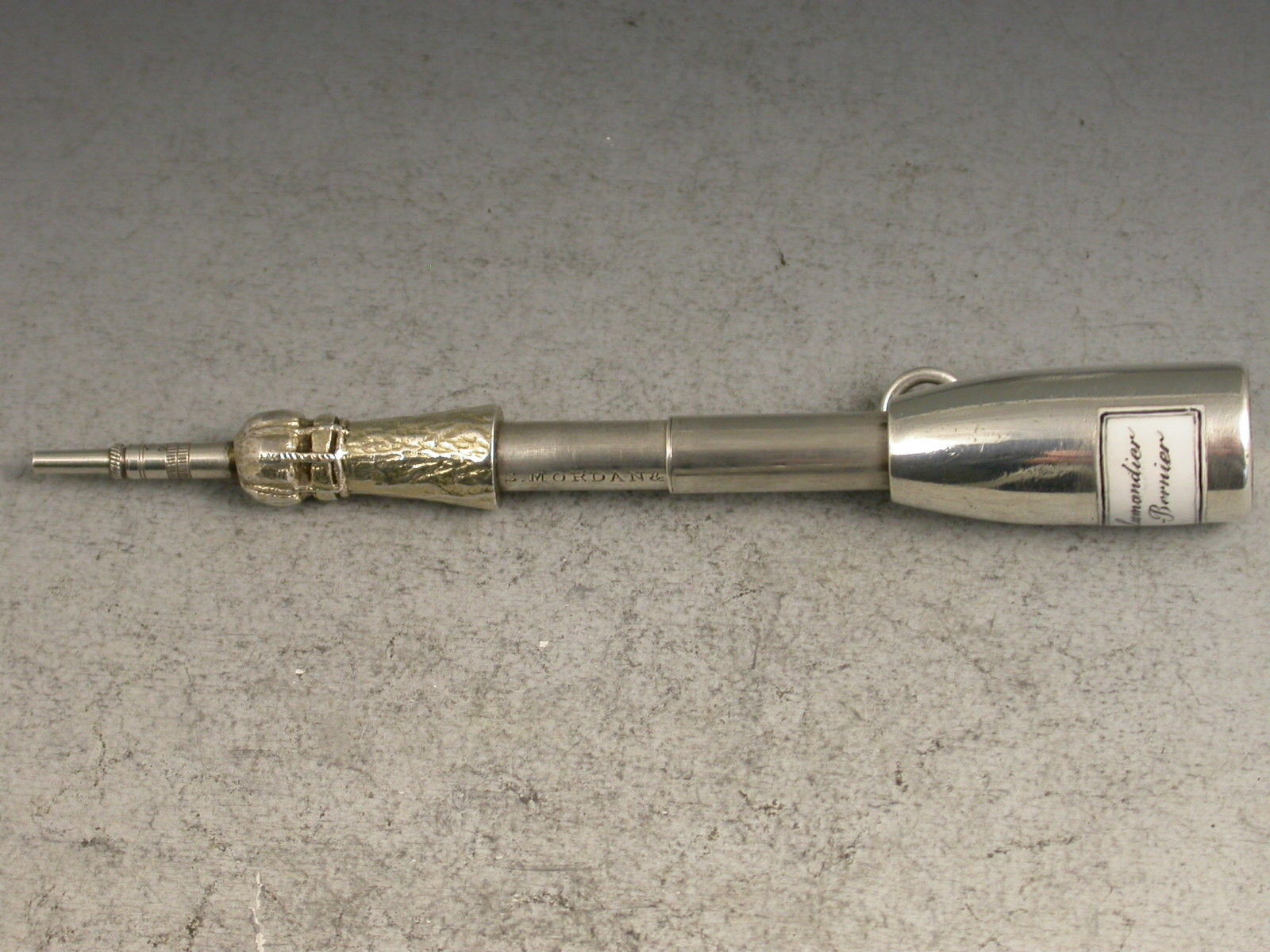 Victorian Novelty Silver Telescopic Champagne Bottle Propelling Pencil Larmandier Bernier