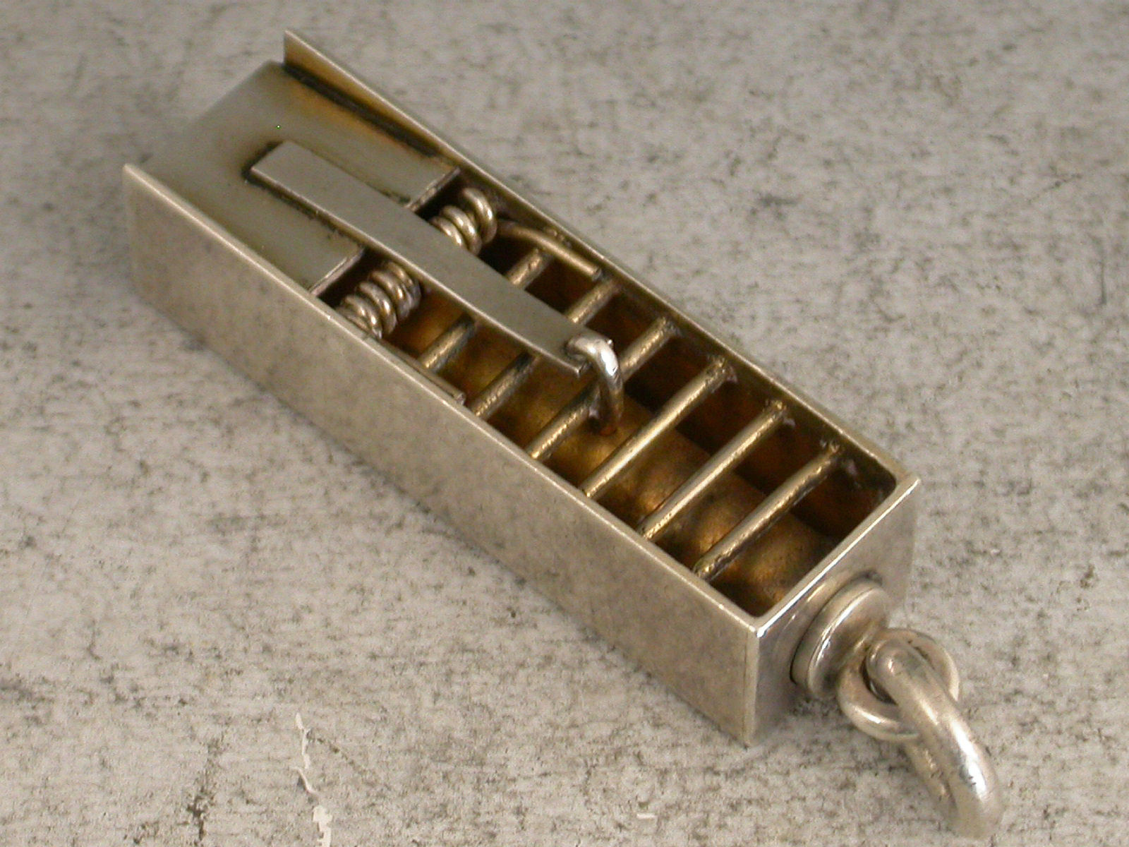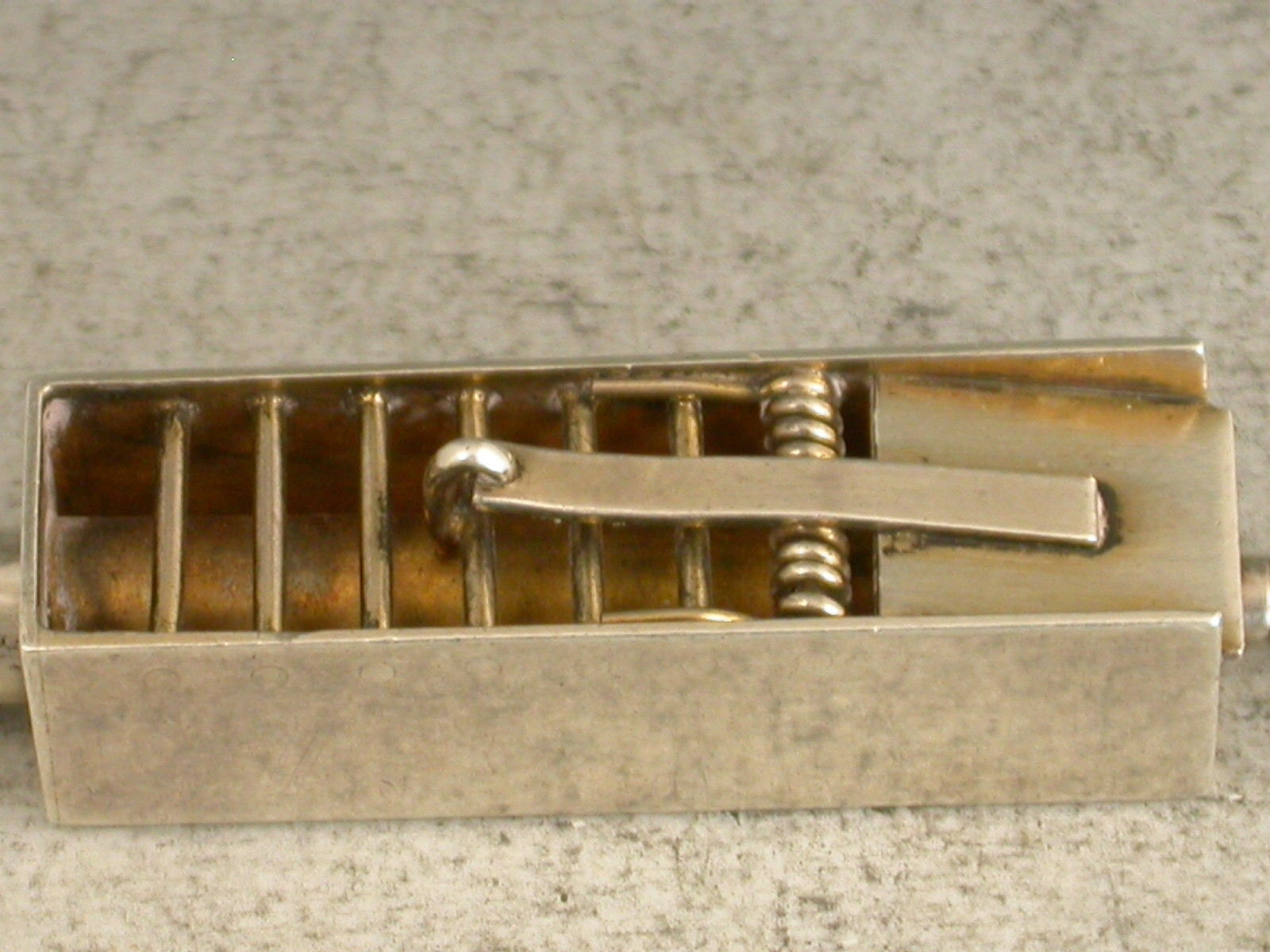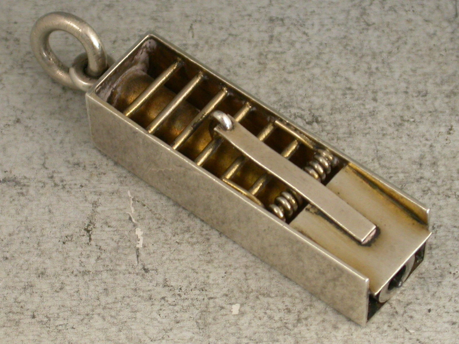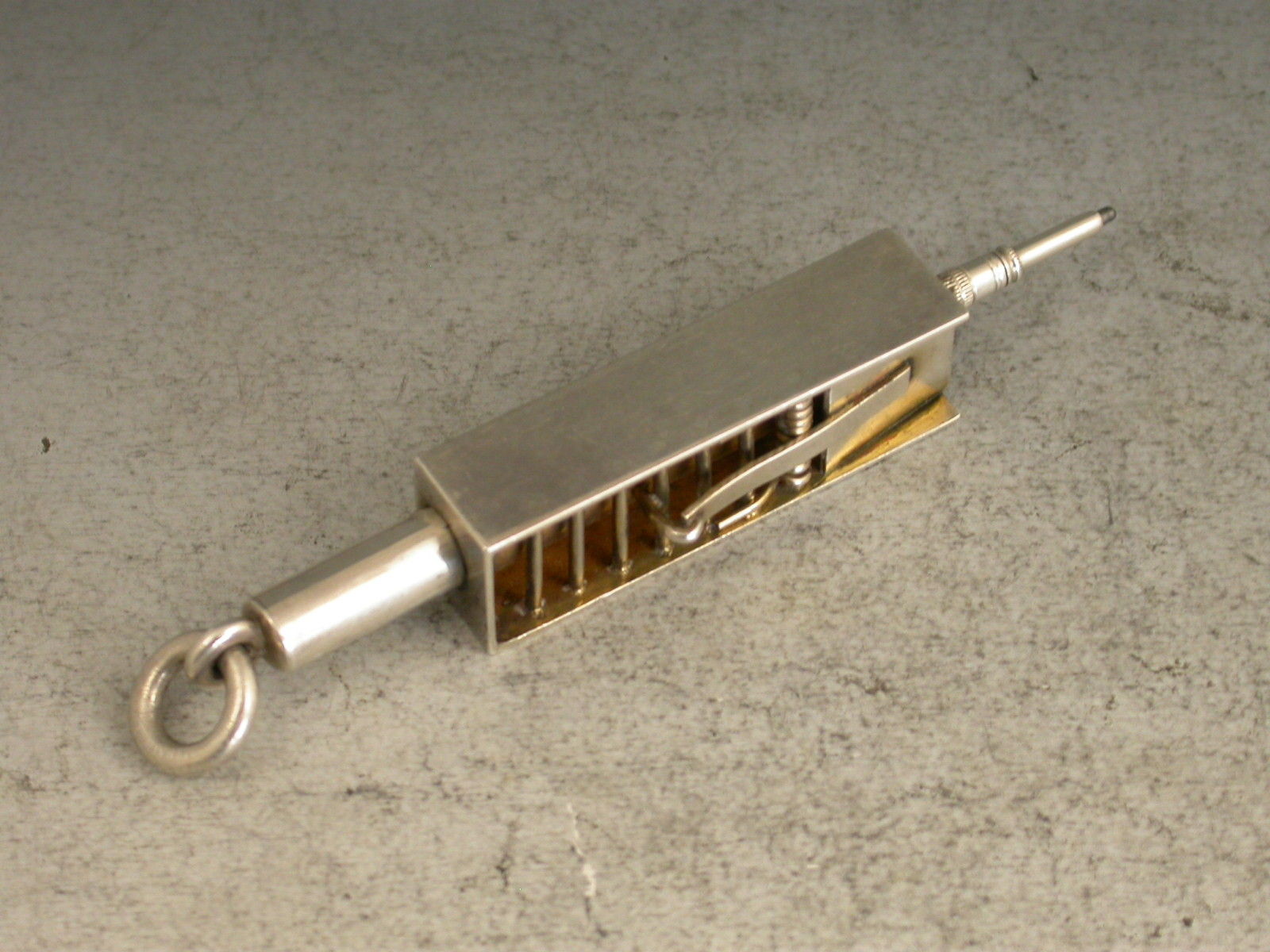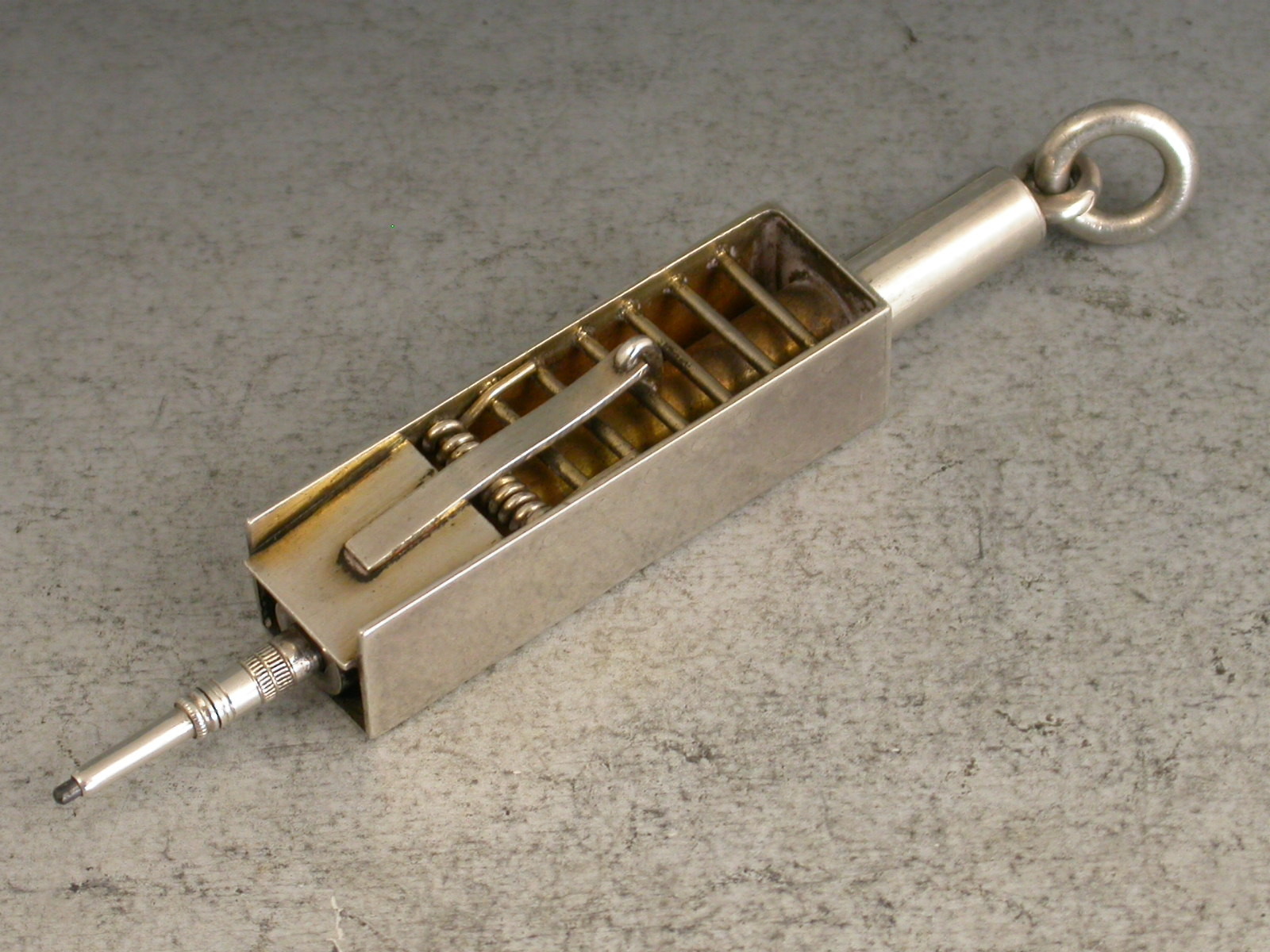 An extremely rare Victorian novelty silver Propelling Pencil formed as a ""Penny Mouse Trap"", partly gilded and with attached suspension ring.