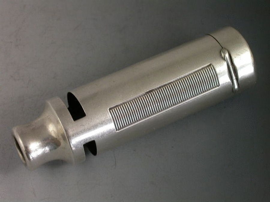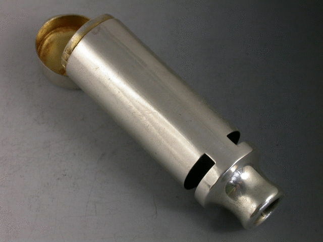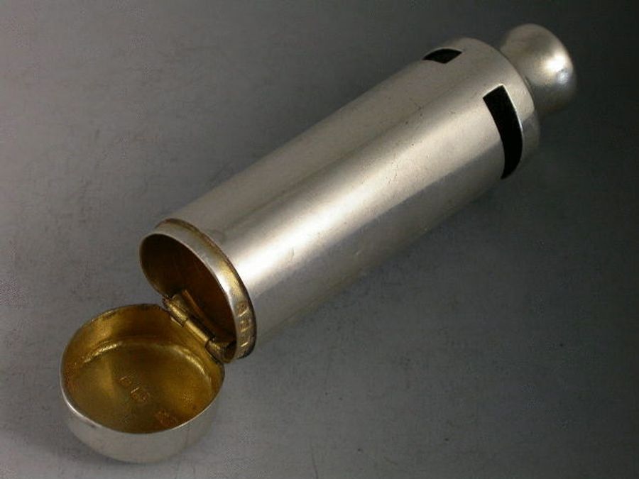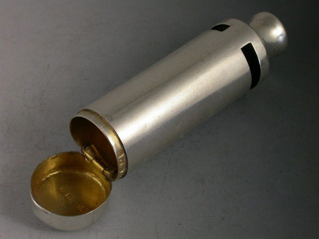 A rare Victorian silver novelty Vesta Case formed as a Whistle with hinged lid and silver gilt interior.