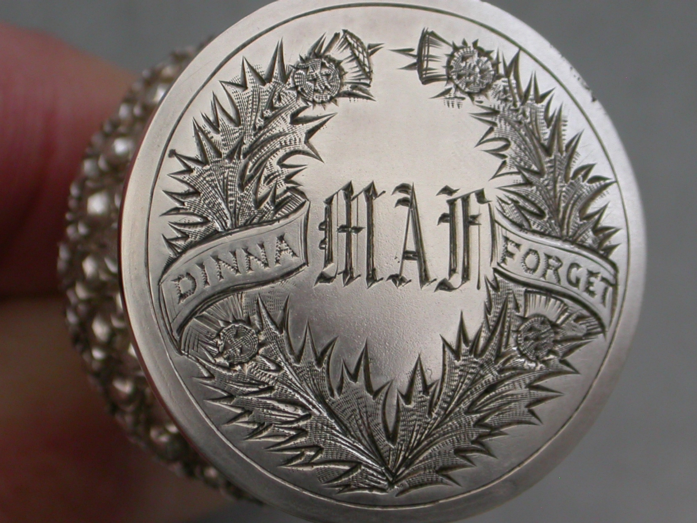 Victorian Scottish Novelty Silver Thistle Vinaigrette ""Dinna Forget""