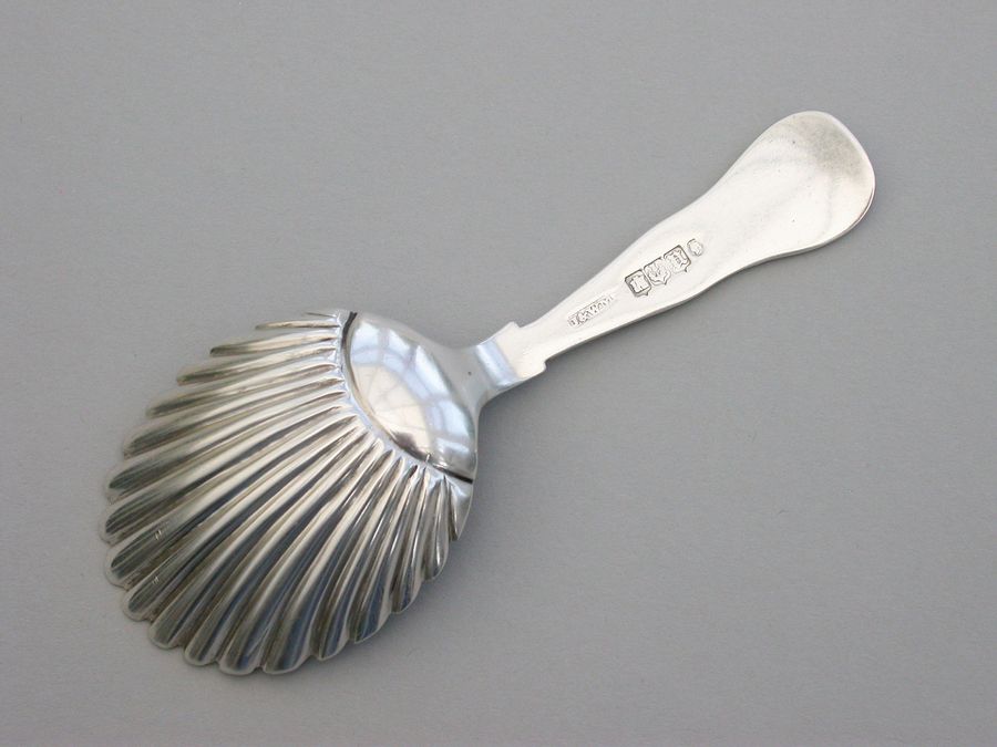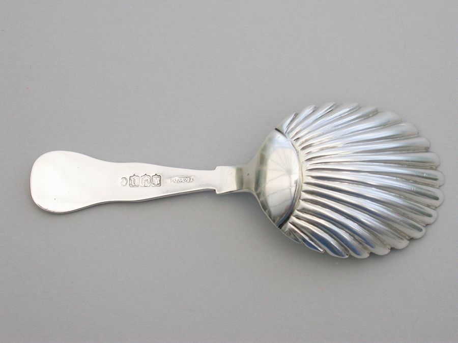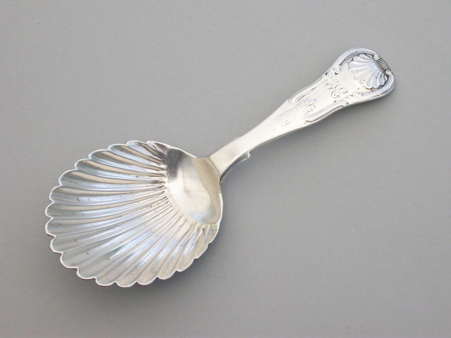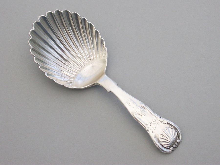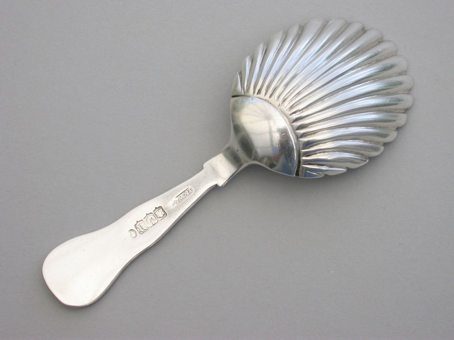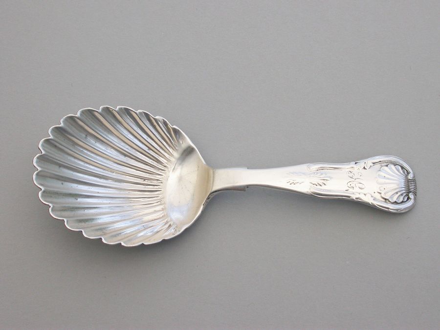 A good Victorian Scottish silver Caddy Spoon with part fluted oval bowl and single-struck Kings pattern handle.
