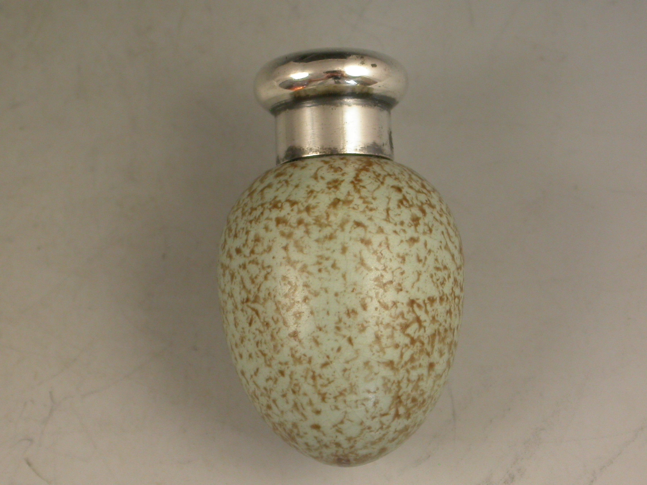 Victorian Silver & Ceramic Blackbirds Egg Scent Bottle
