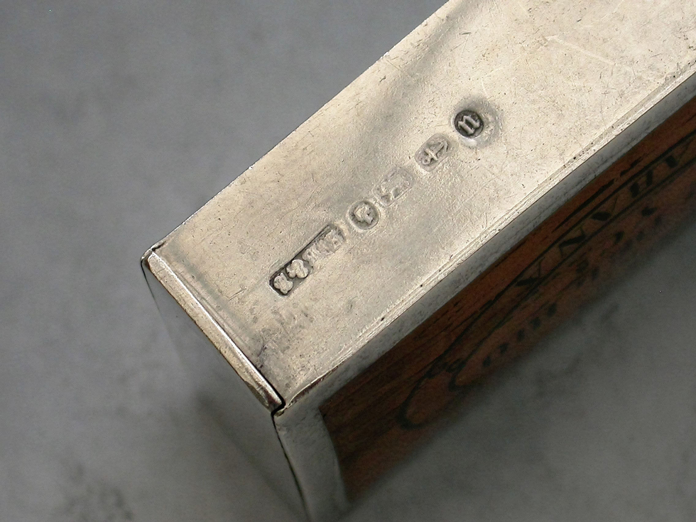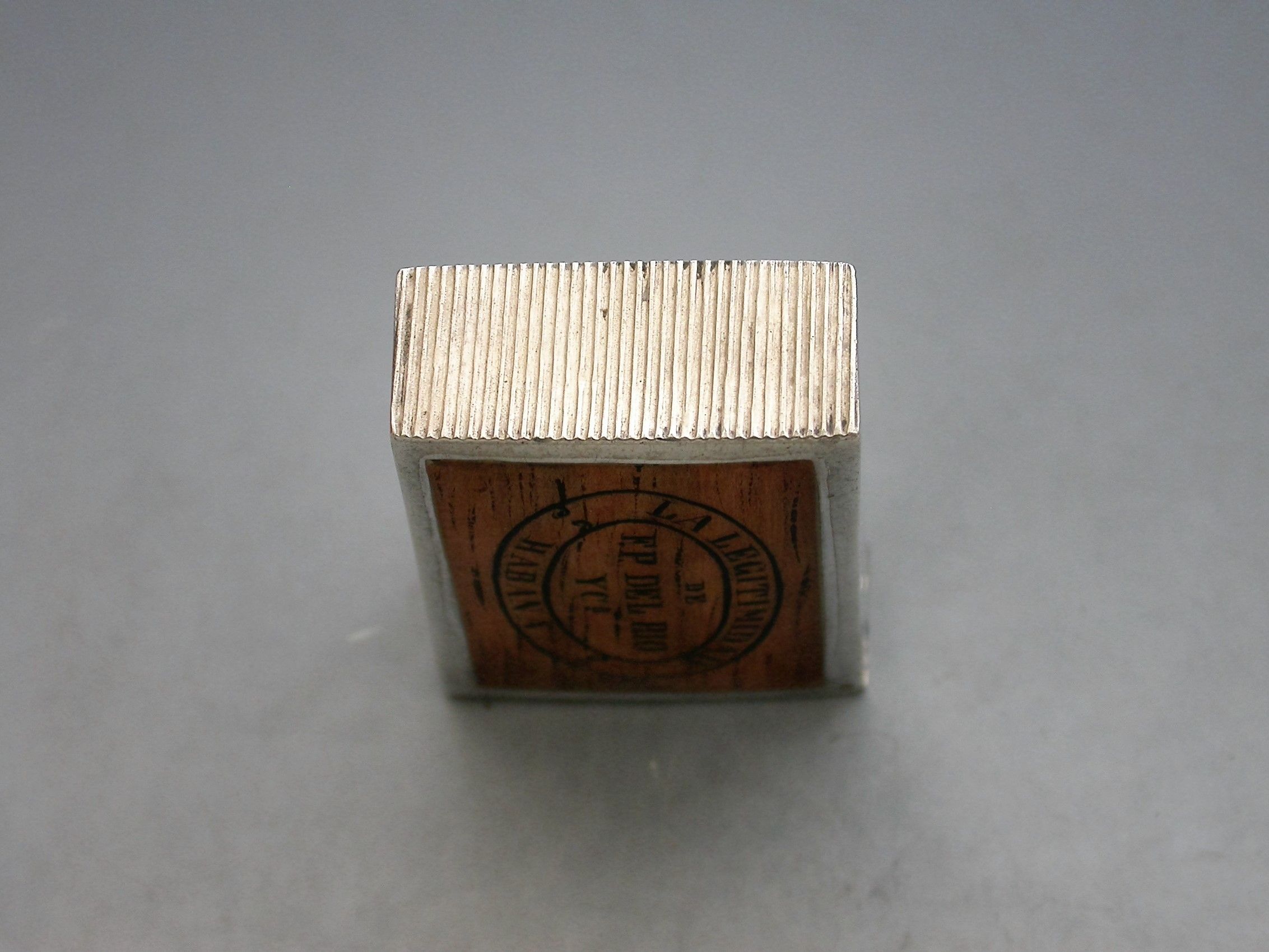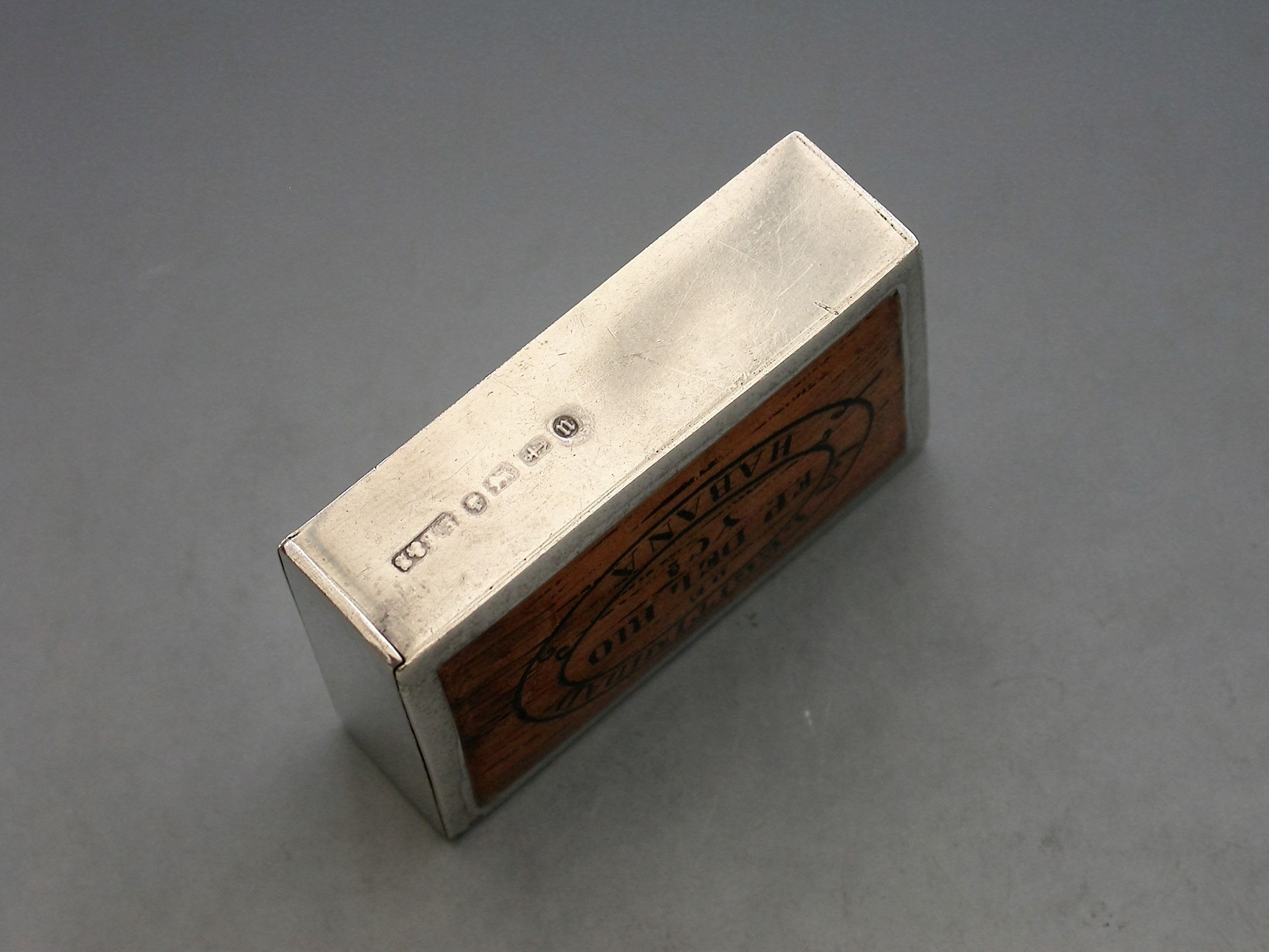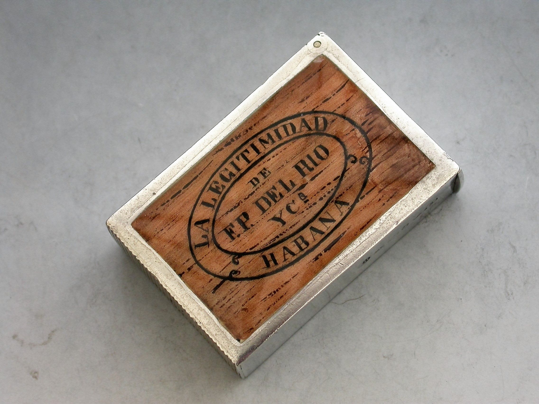 A Victorian silver and enamel Vesta Case made in the form of a 'La Legitimidad' Cuban Cigar Box (a pre revolution discontinued brand). The rectangular case with flat hinged lid opening to reveal a silver gilt interior, a striker to the base.