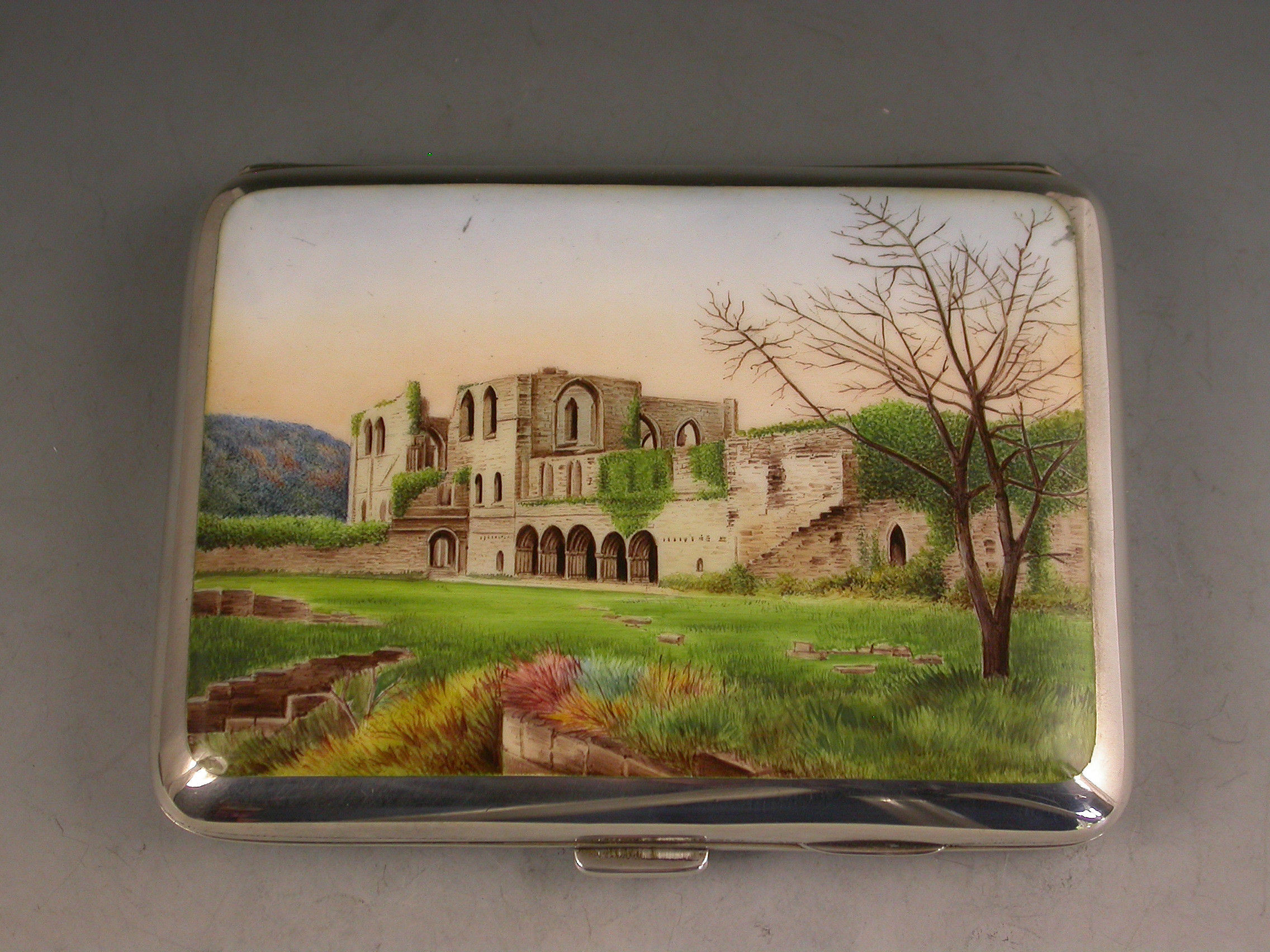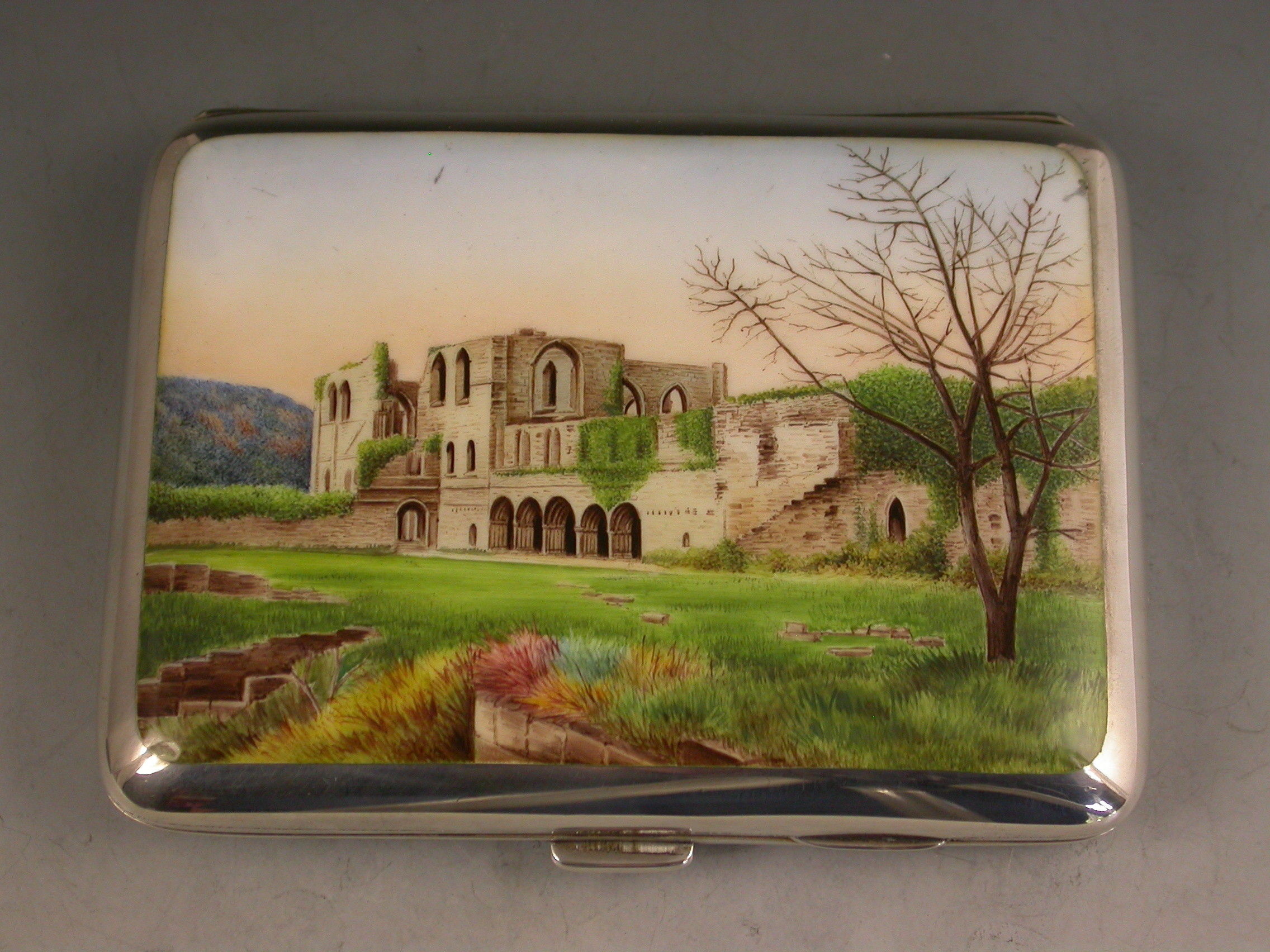 Victorian Silver & Enamel Furness Abbey Cigarette Case