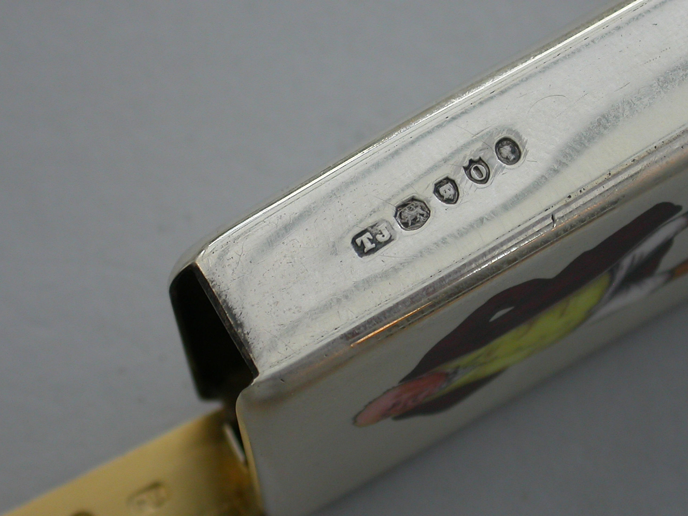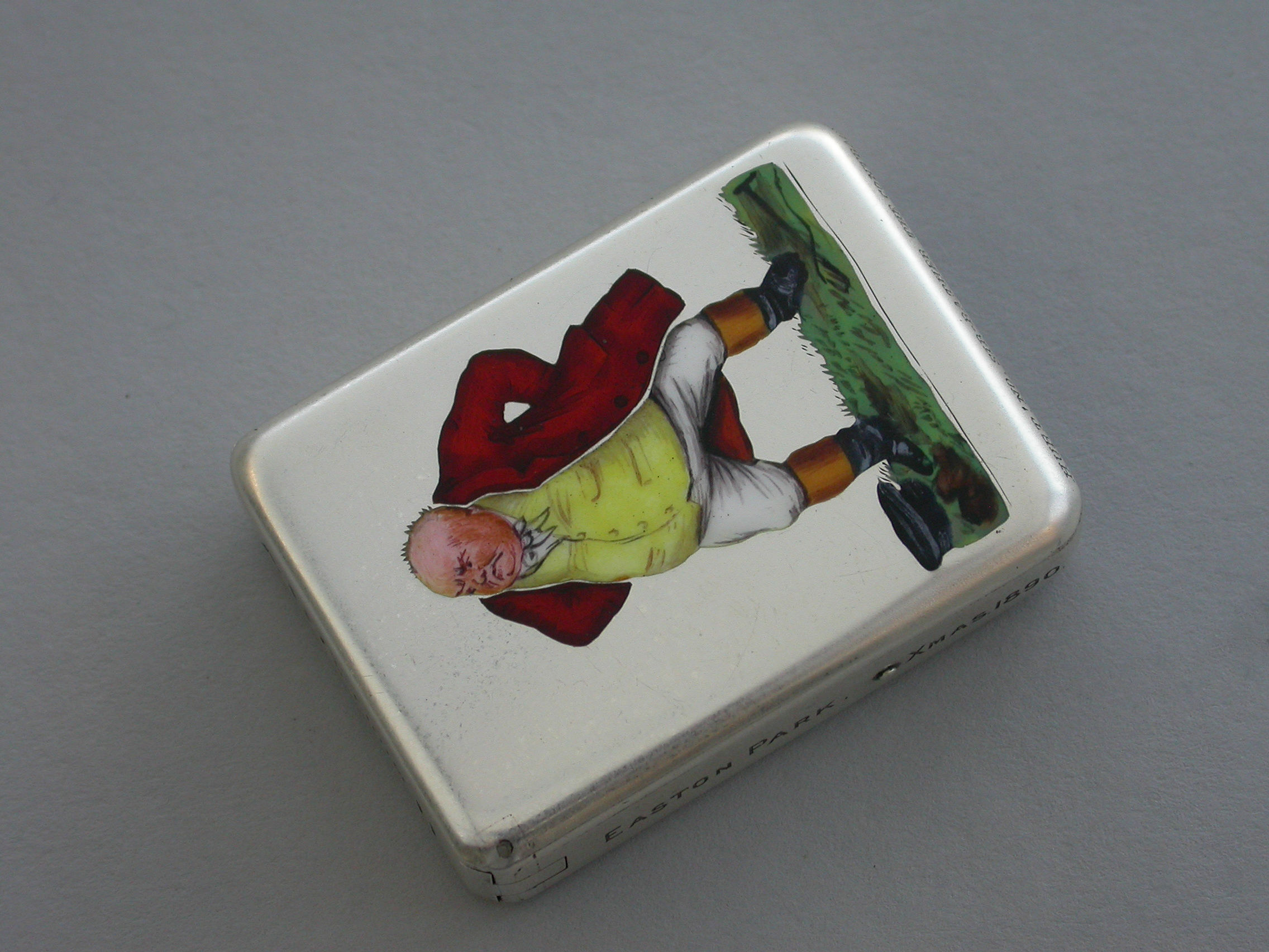 One of a series of silver and enamel Cigarette & Vesta Cases produced by Thomas Johnson & Frederick Edmonds & Edward Johnson in 1889/90 of which only two Cigarette and seven Vesta Cases are currently known.